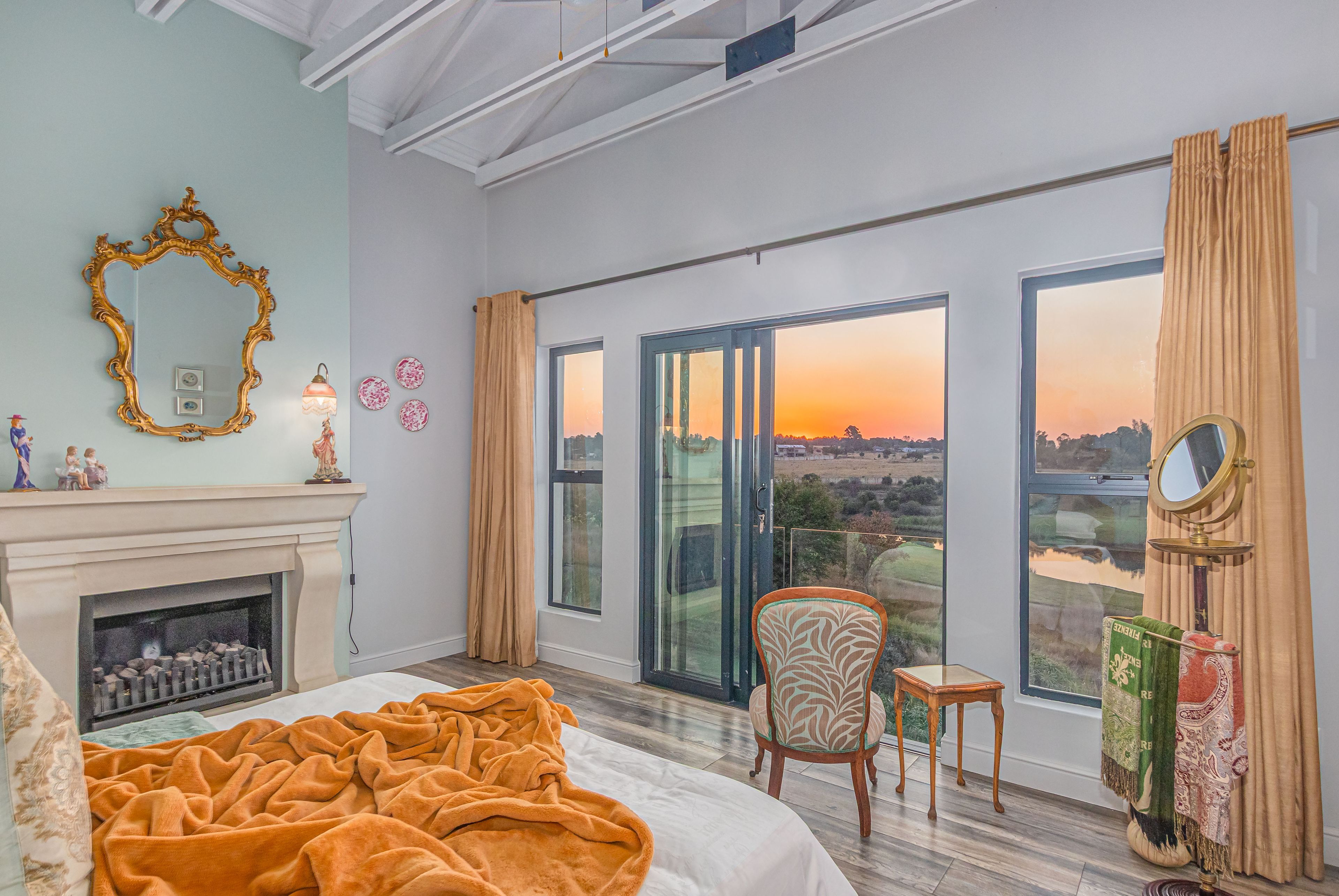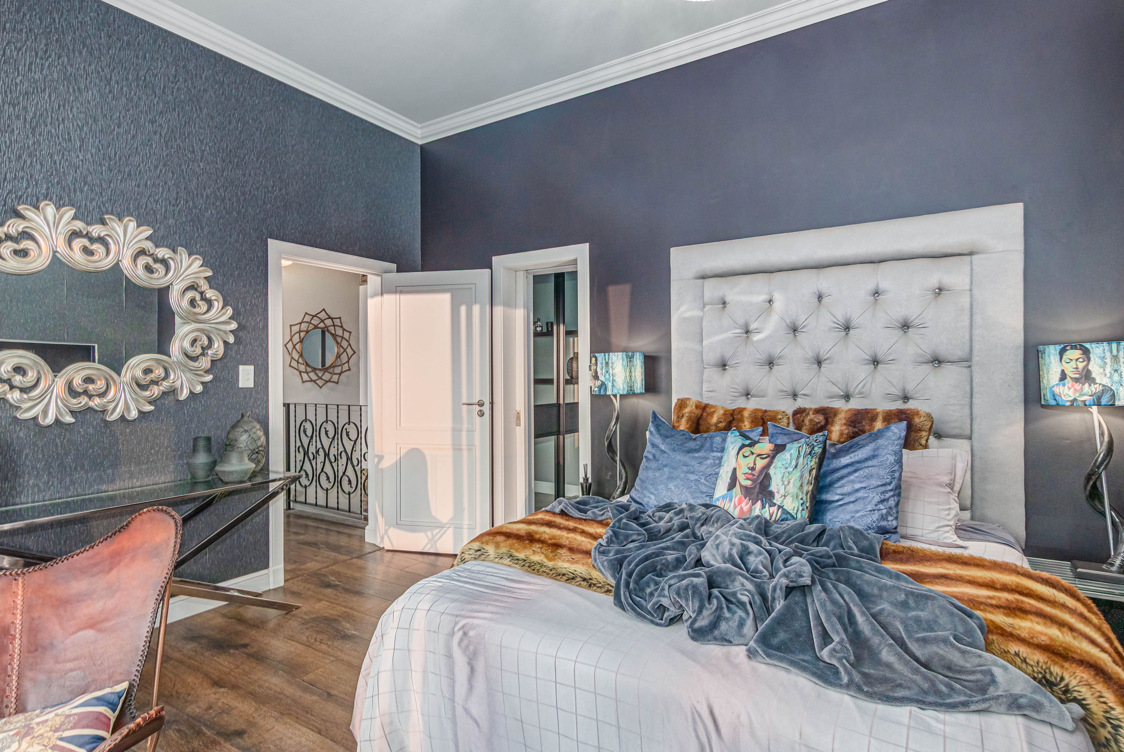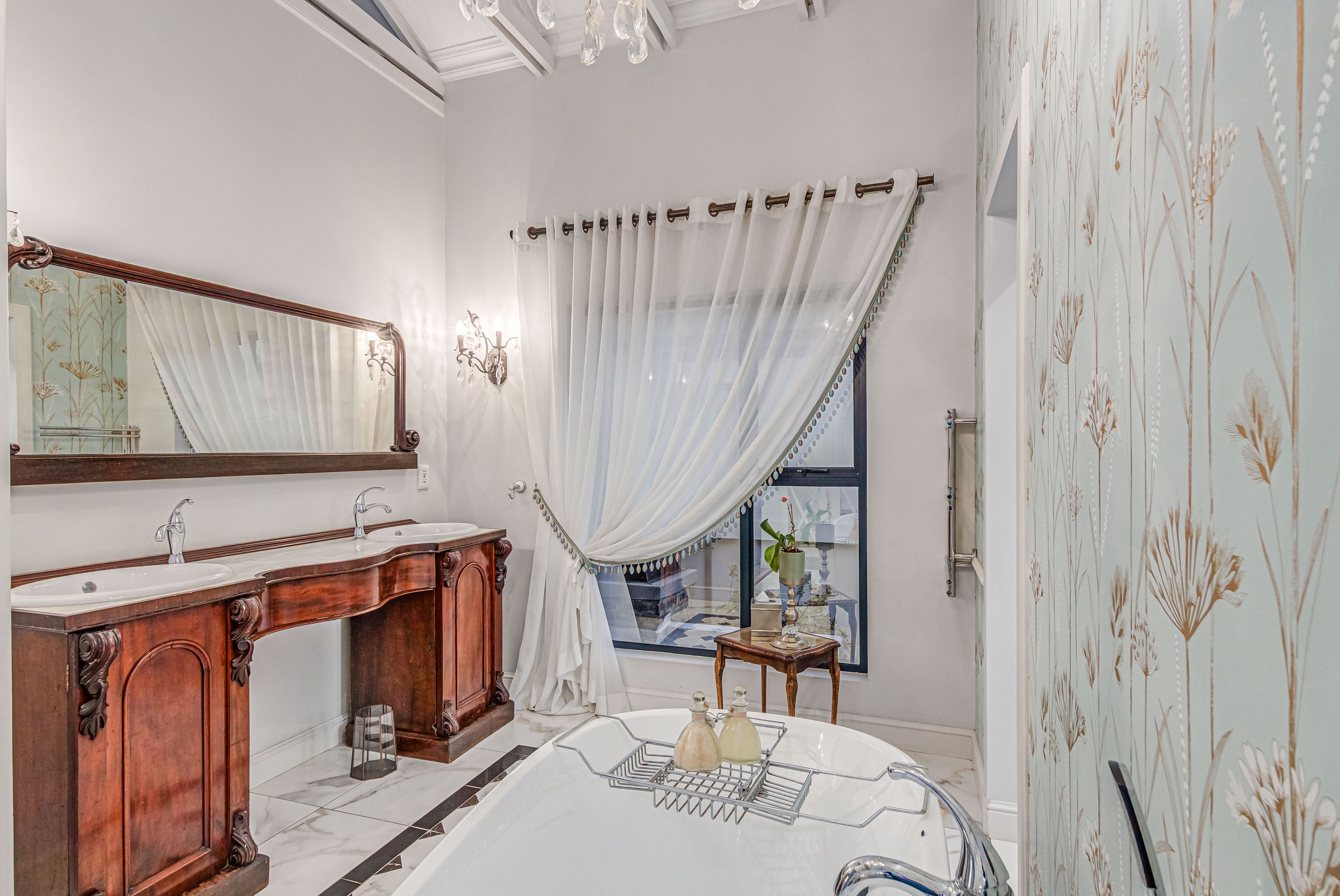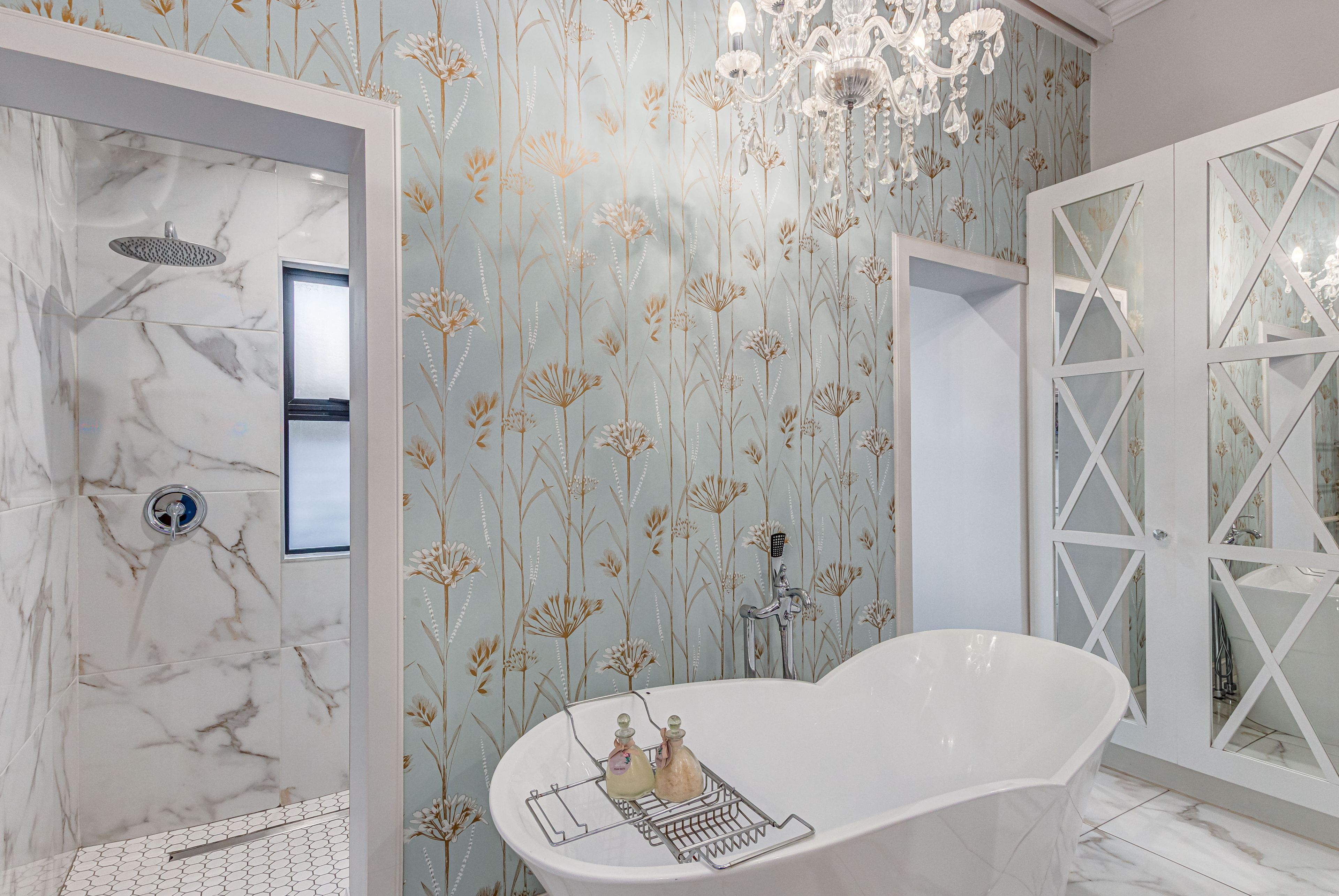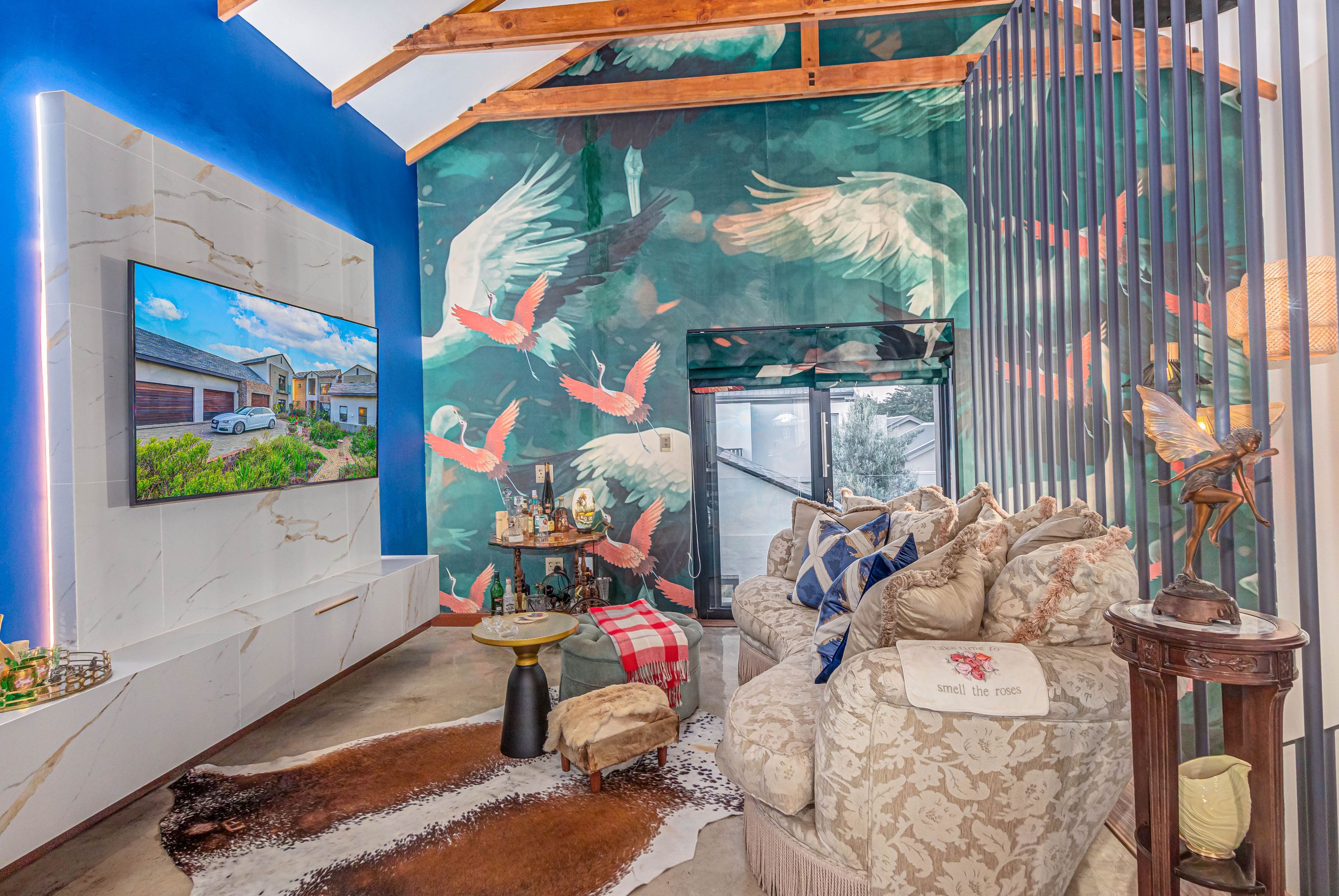 6666 saint andrews street, centurion, gp, south africa. A truly unique residence in the prestigious copperleaf golf & country estate, just outside johannesburg, south africa. Offering inspired design, exceptional craftsmanship, and a lifestyle focused on comfort, beauty, and functionality. Set on a generous 1/3 acre lot with over 5500sq/ft under roof, this custom-built home blends architectural creativity with refined finishes and seamless indoor-outdoor living. The main home features three bedrooms, including an impressive primary suite with vaulted ceilings, panoramic garden views, a spacious walk-in closet, and a spa-inspired en-suite with double shower, heated towel rails and a freestanding victoria & albert tub. Thoughtful interior elements include a gourmet kitchen with premium appliances, rich cabinetry, open shelving, and direct garden access, along with curated wallpaper and lighting, handcrafted elements, and a hidden library and work nook tucked beneath a custom wrought-iron staircase. The living and dining areas flow effortlessly to the elegant english garden complete with water features and a natural filtration pool. This tranquil retreat is complemented by multiple entertaining zones including indoor and outdoor bars, a built in brai alfresco dining space, and a jacuzzi deck. A separate apartment provides exceptional flexibility, offering a private entrance, full kitchen and lounge, bedroom suite, dressing room, garden, and the ability to add a second bedroom as per existing plans, ideal for extended family or long-term guests. Sustainable features include a full sunsynk 8kw solar system, 12 solar panels, and dual water tanks. Residents of copperleaf enjoy world-class amenities including the ernie els signature golfcourse, wellness spa, fitness centre, swimming and sports facilities, clubhouse, café, walking and cycling trails, onsite schooling, and 24-hour security. . A truly eclectic offering in one of the estate's most exceptional settings.