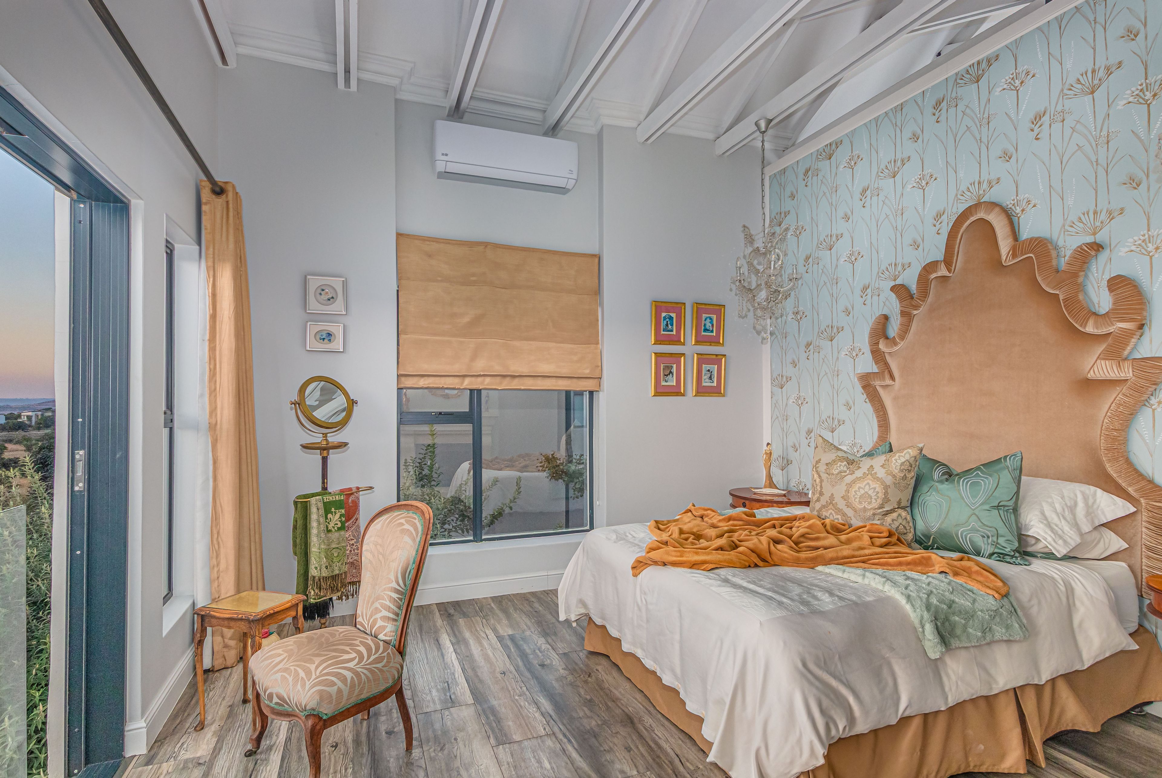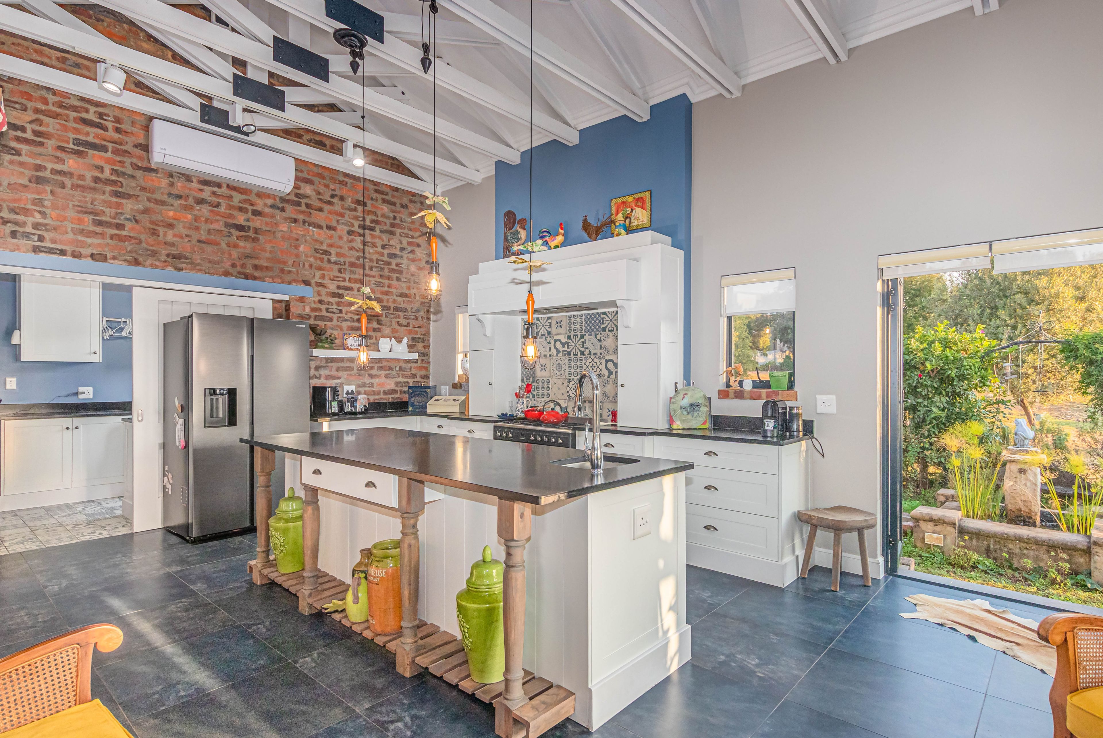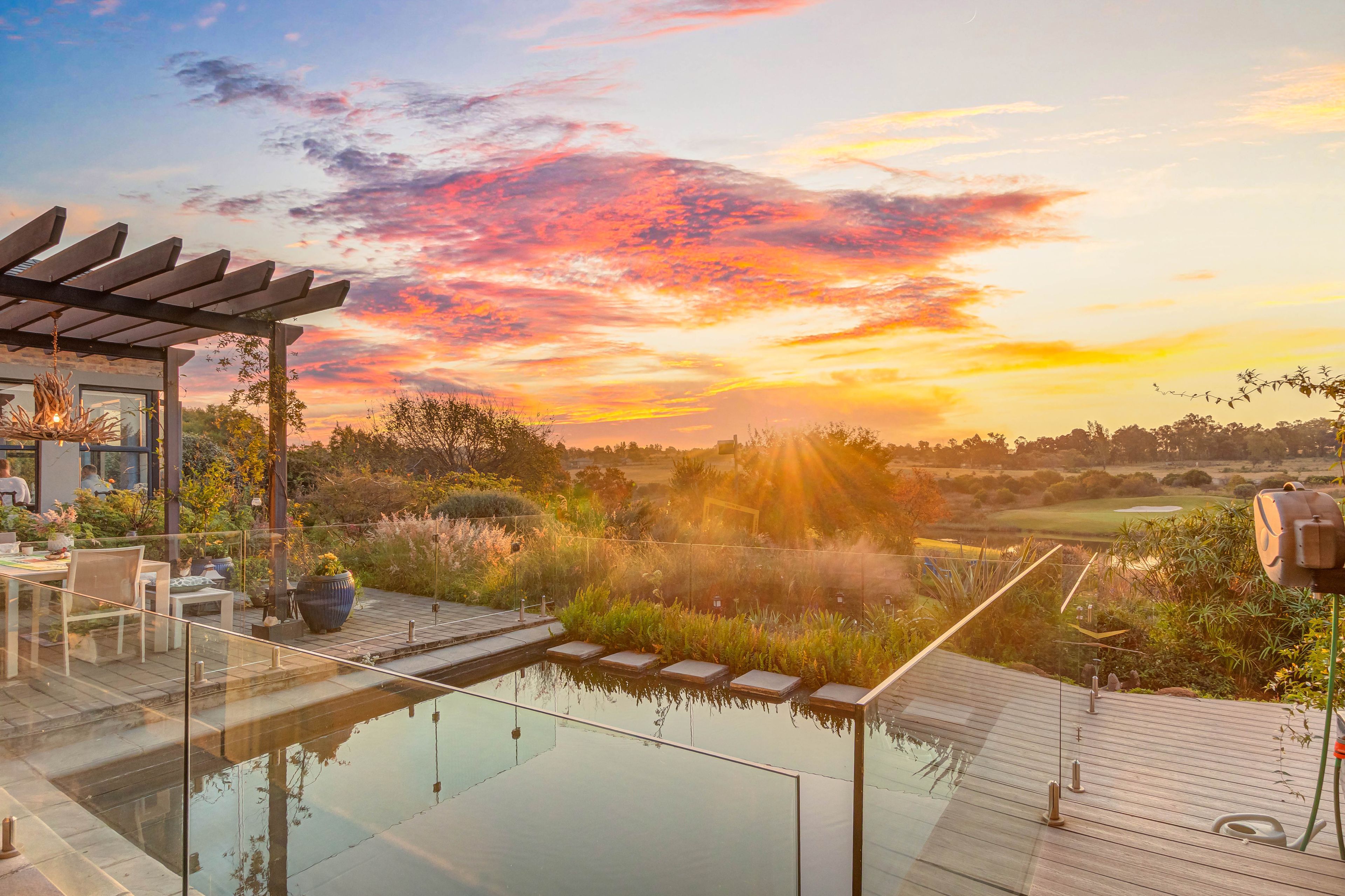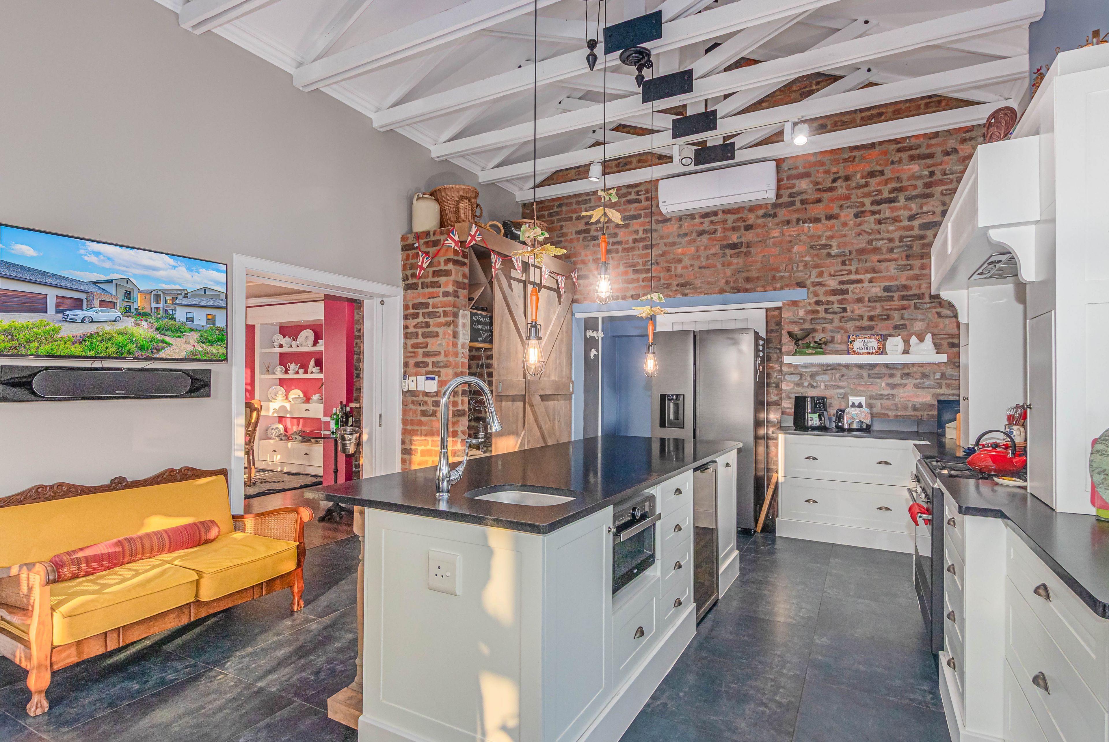 6666 saint andrews street, centurion, gp, south africa. A truly unique residence in the prestigious copperleaf golf & country estate, just outside johannesburg, south africa. Offering inspired design, exceptional craftsmanship, and a lifestyle focused on comfort, beauty, and functionality. Set on a generous 1/3 acre lot with over 5500sq/ft under roof, this custom-built home blends architectural creativity with refined finishes and seamless indoor-outdoor living. The main home features three bedrooms, including an impressive primary suite with vaulted ceilings, panoramic garden views, a spacious walk-in closet, and a spa-inspired en-suite with double shower, heated towel rails and a freestanding victoria & albert tub. Thoughtful interior elements include a gourmet kitchen with premium appliances, rich cabinetry, open shelving, and direct garden access, along with curated wallpaper and lighting, handcrafted elements, and a hidden library and work nook tucked beneath a custom wrought-iron staircase. The living and dining areas flow effortlessly to the elegant english garden complete with water features and a natural filtration pool. This tranquil retreat is complemented by multiple entertaining zones including indoor and outdoor bars, a built in brai alfresco dining space, and a jacuzzi deck. A separate apartment provides exceptional flexibility, offering a private entrance, full kitchen and lounge, bedroom suite, dressing room, garden, and the ability to add a second bedroom as per existing plans, ideal for extended family or long-term guests. Sustainable features include a full sunsynk 8kw solar system, 12 solar panels, and dual water tanks. Residents of copperleaf enjoy world-class amenities including the ernie els signature golfcourse, wellness spa, fitness centre, swimming and sports facilities, clubhouse, café, walking and cycling trails, onsite schooling, and 24-hour security. . A truly eclectic offering in one of the estate's most exceptional settings.