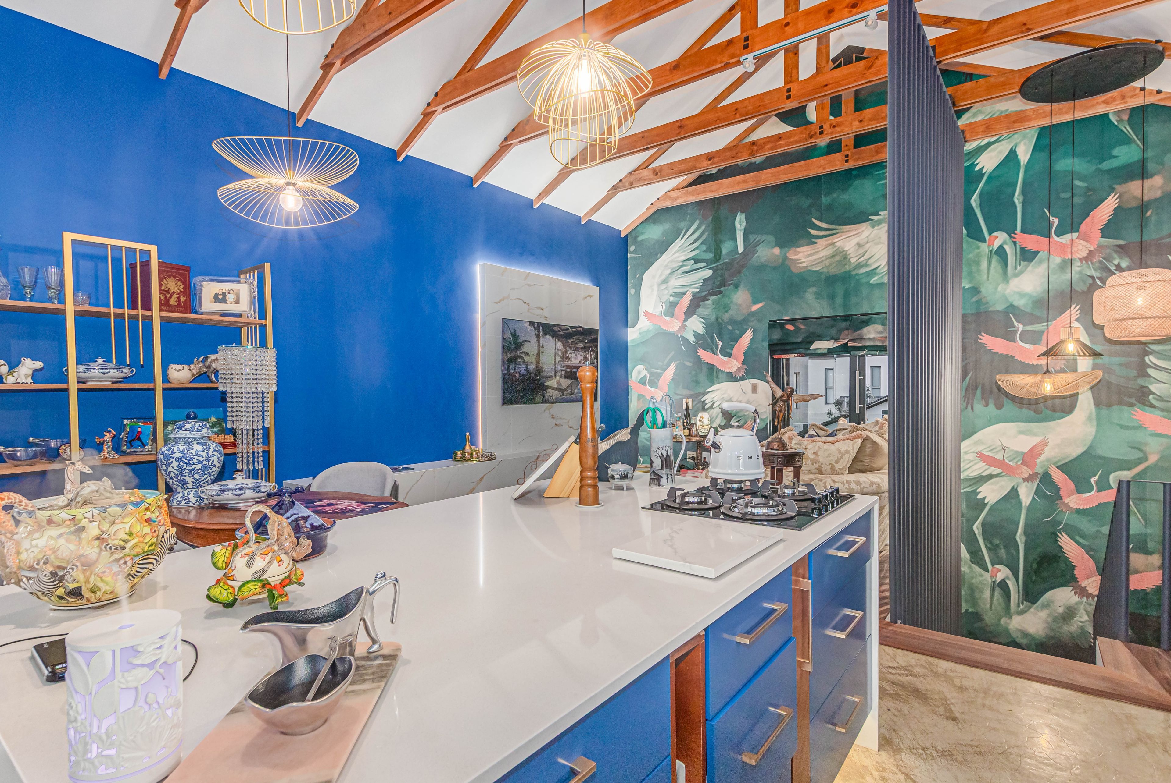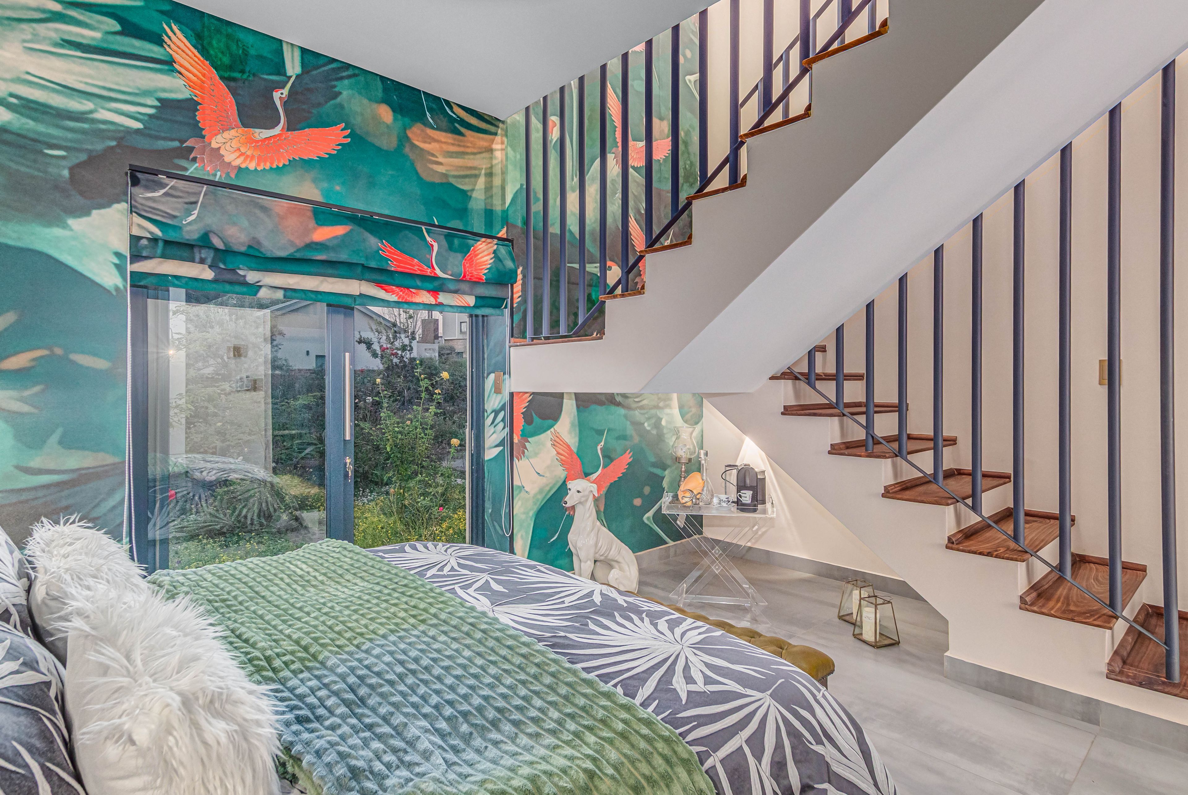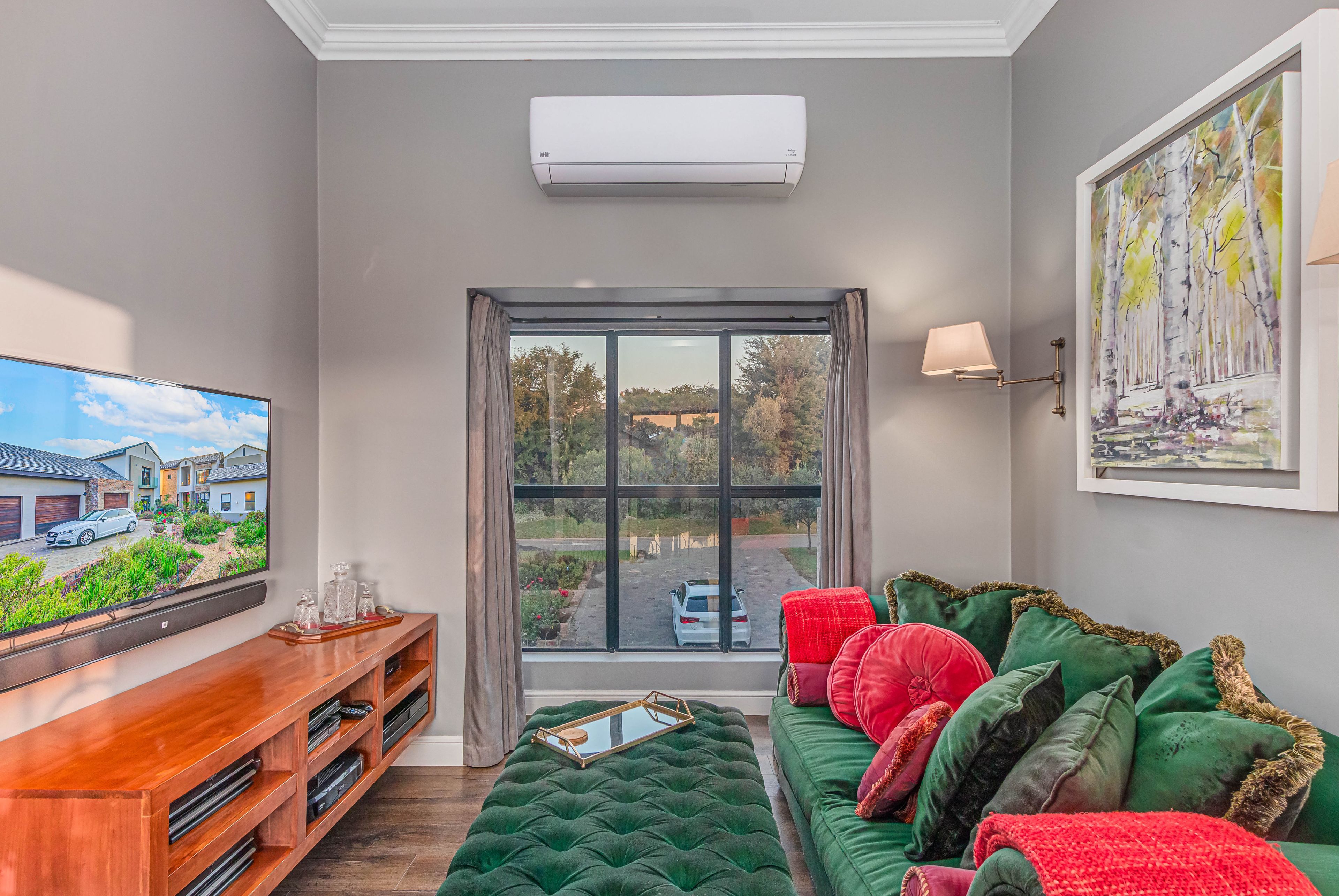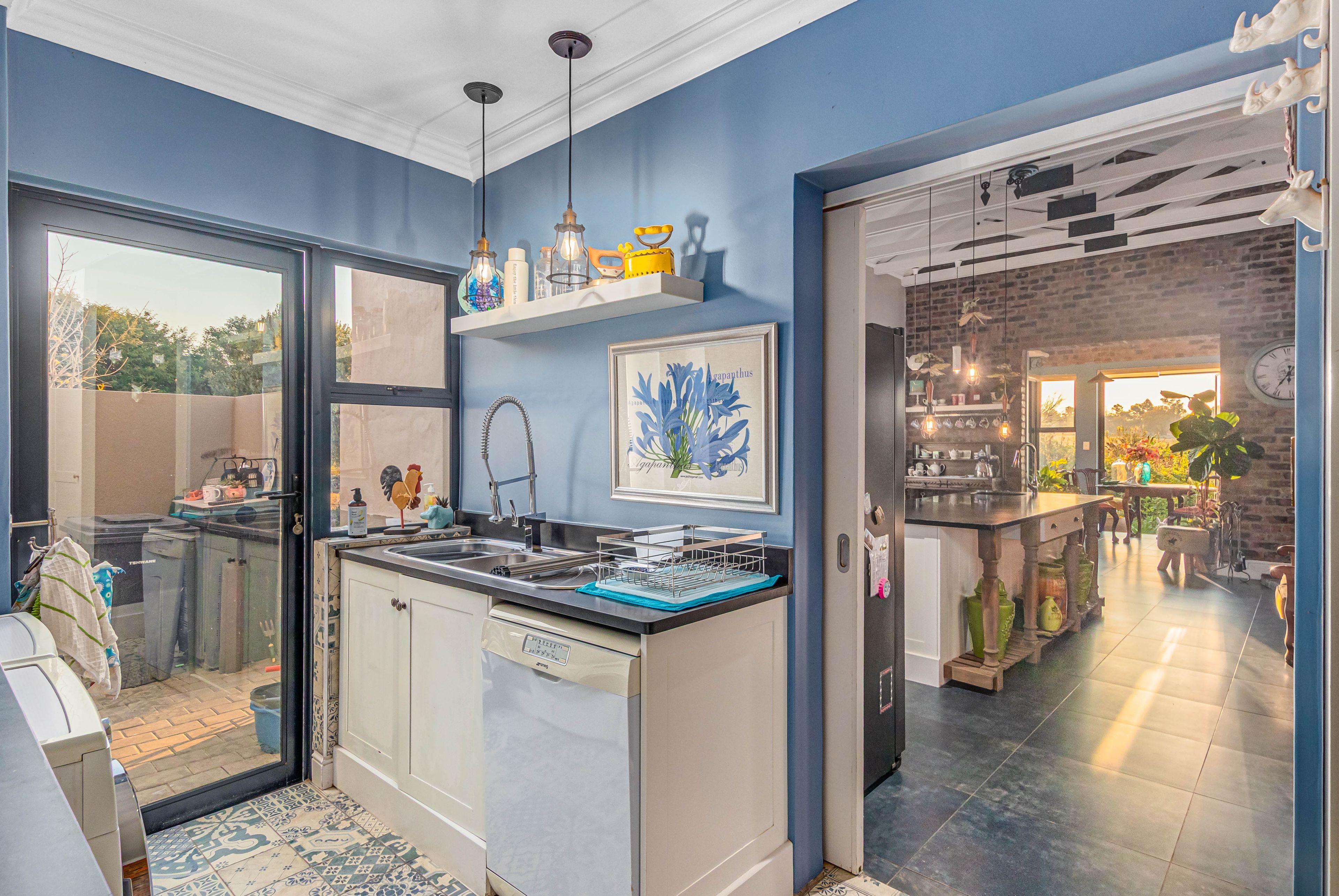 6666 saint andrews street, centurion, gp, south africa. A truly unique residence in the prestigious copperleaf golf & country estate, just outside johannesburg, south africa. Offering inspired design, exceptional craftsmanship, and a lifestyle focused on comfort, beauty, and functionality. Set on a generous 1/3 acre lot with over 5500sq/ft under roof, this custom-built home blends architectural creativity with refined finishes and seamless indoor-outdoor living. The main home features three bedrooms, including an impressive primary suite with vaulted ceilings, panoramic garden views, a spacious walk-in closet, and a spa-inspired en-suite with double shower, heated towel rails and a freestanding victoria & albert tub. Thoughtful interior elements include a gourmet kitchen with premium appliances, rich cabinetry, open shelving, and direct garden access, along with curated wallpaper and lighting, handcrafted elements, and a hidden library and work nook tucked beneath a custom wrought-iron staircase. The living and dining areas flow effortlessly to the elegant english garden complete with water features and a natural filtration pool. This tranquil retreat is complemented by multiple entertaining zones including indoor and outdoor bars, a built in brai alfresco dining space, and a jacuzzi deck. A separate apartment provides exceptional flexibility, offering a private entrance, full kitchen and lounge, bedroom suite, dressing room, garden, and the ability to add a second bedroom as per existing plans, ideal for extended family or long-term guests. Sustainable features include a full sunsynk 8kw solar system, 12 solar panels, and dual water tanks. Residents of copperleaf enjoy world-class amenities including the ernie els signature golfcourse, wellness spa, fitness centre, swimming and sports facilities, clubhouse, café, walking and cycling trails, onsite schooling, and 24-hour security. . A truly eclectic offering in one of the estate's most exceptional settings.