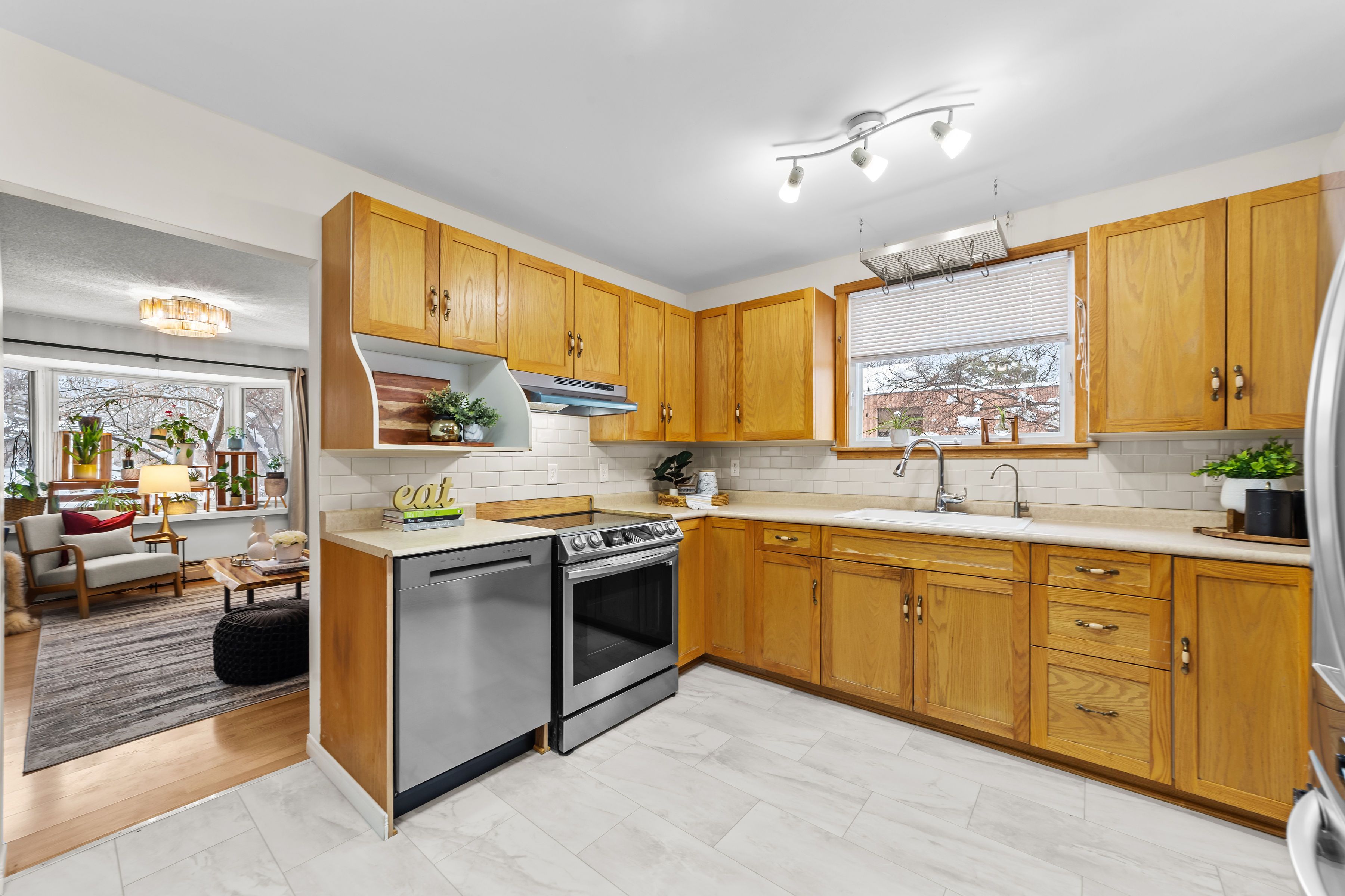 Spacious and exceptionally versatile, this five-level split home offers approximately 2,500 sq ft of total finished living space, providing far more room than its exterior suggests. With a possible five bedrooms, three full bathrooms, and two kitchens, the layout is ideal for multi-generational living, extended family arrangements, or in-law accommodation. Located at the end of a quiet no-exit street, the home sits on a large and private 53 x 164 ft lot surrounded by mature trees, offering a peaceful setting while remaining centrally located near shopping, commuter routes, highway 401, and the upcoming brt corridor. The lot is generous enough to allow for 10+ parking spaces on the driveway which is double wide at the front. The interior features large principal rooms, multiple family and living areas across the split levels, an in-law suite with its own covered walk-up entrance, separate laundry, and two fireplaces that add warmth and functionality. Recent improvements include shingles (2019), a new boiler (2025) including on-demand add on, two updated bathrooms, updated flooring, front porch/deck improvements, and select appliance upgrades. Not to be outdone the backyard gets as much use as the house with it's hot tub, large covered deck and 28' x 24' detached heated and insulated garage/workshop, providing excellent space for hobbyists, storage, or additional flexibility. Even with the deck and shop the backyard still provides tons of extra space for kids play, hockey and backyard fires. The seller has also explored future adu potential, with plans and approvals available to review, offering added long-term value for buyers seeking flexibility or expansion opportunities. A rare opportunity to secure a large, flexible home on an oversized private lot in a quiet yet highly convenient part of south london.