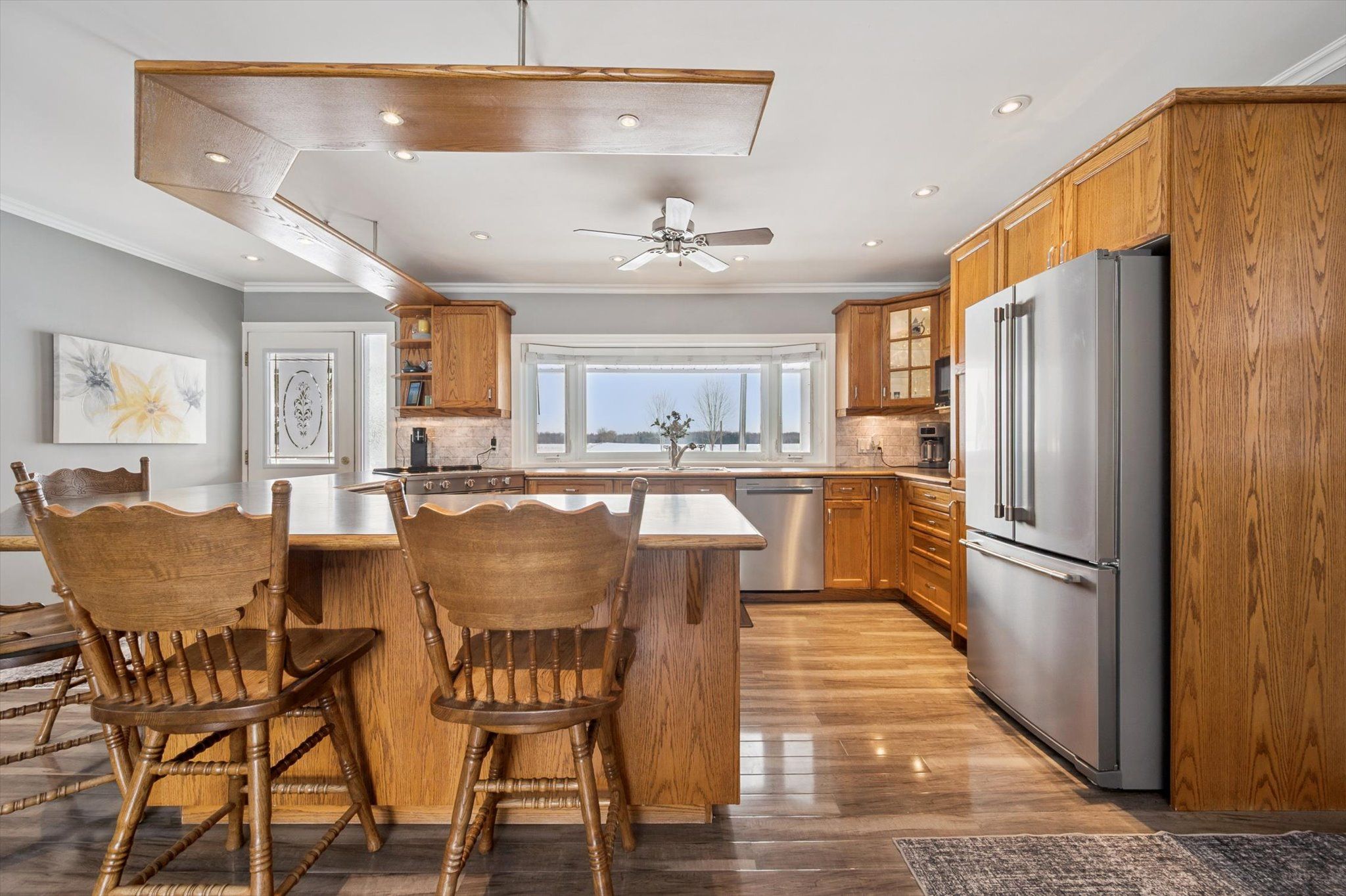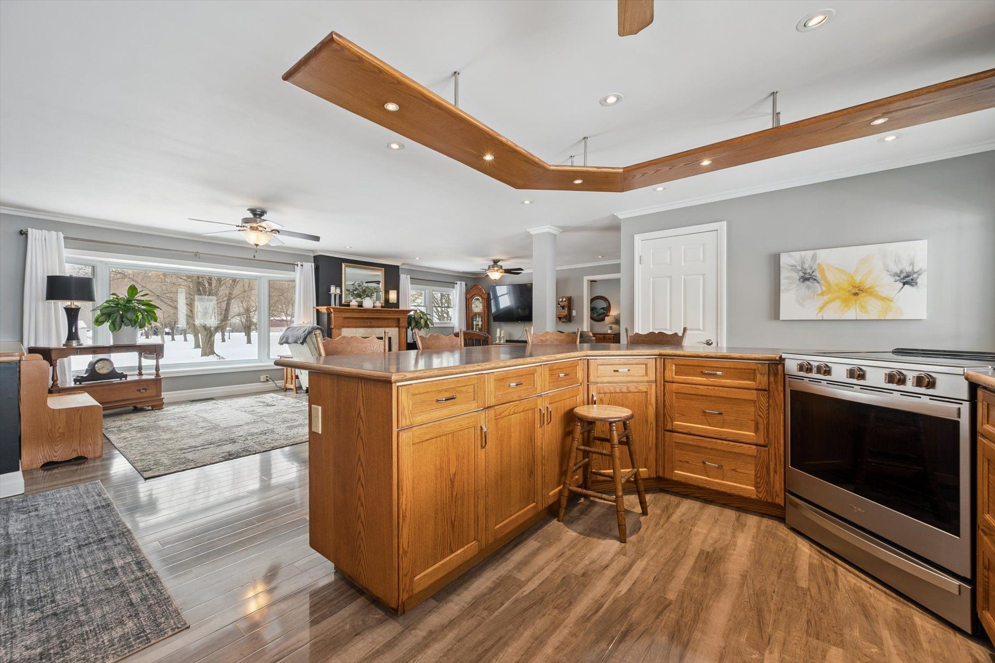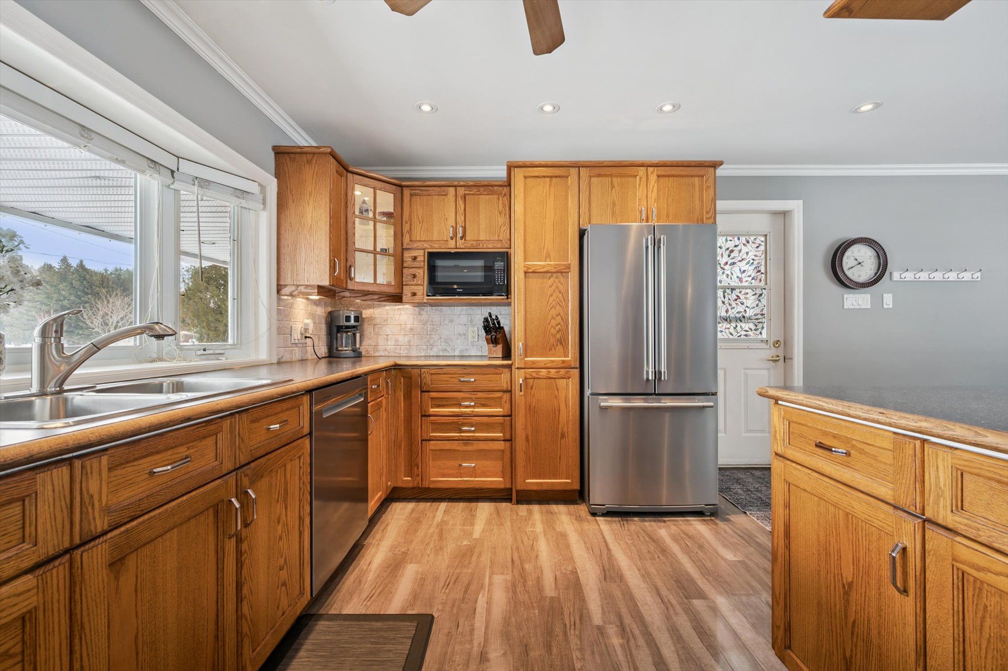 This rare and picturesque 2. 9-acre property in woolwich, offered for the first time in 40 years, presents an exceptional opportunity to enjoy space, versatility, and country charm. The well-maintained 4-bedroom bungalow features large windows that fill the home with natural light, an inviting family room gas fireplace, along with a den, two bathrooms and main floor laundry, this home offers comfortable and flexible living for families or those working from home. The heart of the home is the gorgeous, oversized kitchen, complete with new stainless steel appliances (2025) and an abundance of cupboard and counter space-perfect for hosting, cooking, and gathering with family and friends. The unfinished basement with a separate entrance provides outstanding potential for additional living space, an in-law suite, or income opportunities. Step outside to the back deck with a covered hot tub, ideal for relaxing and entertaining year-round. The property's exterior amenities are equally impressive, including a detached two-car garage, an oversized gravel yard ideal for parking equipment, trailers, or multiple vehicles, a storage barn suitable for a chicken coop, and a 1/2 acre partially fenced pasture. The star of the show is the impressive 35' x 80' insulated shop, making this property ideal for hobbyists, tradespeople, or home-based businesses. A rare offering with endless possibilities, just minutes from town conveniences.