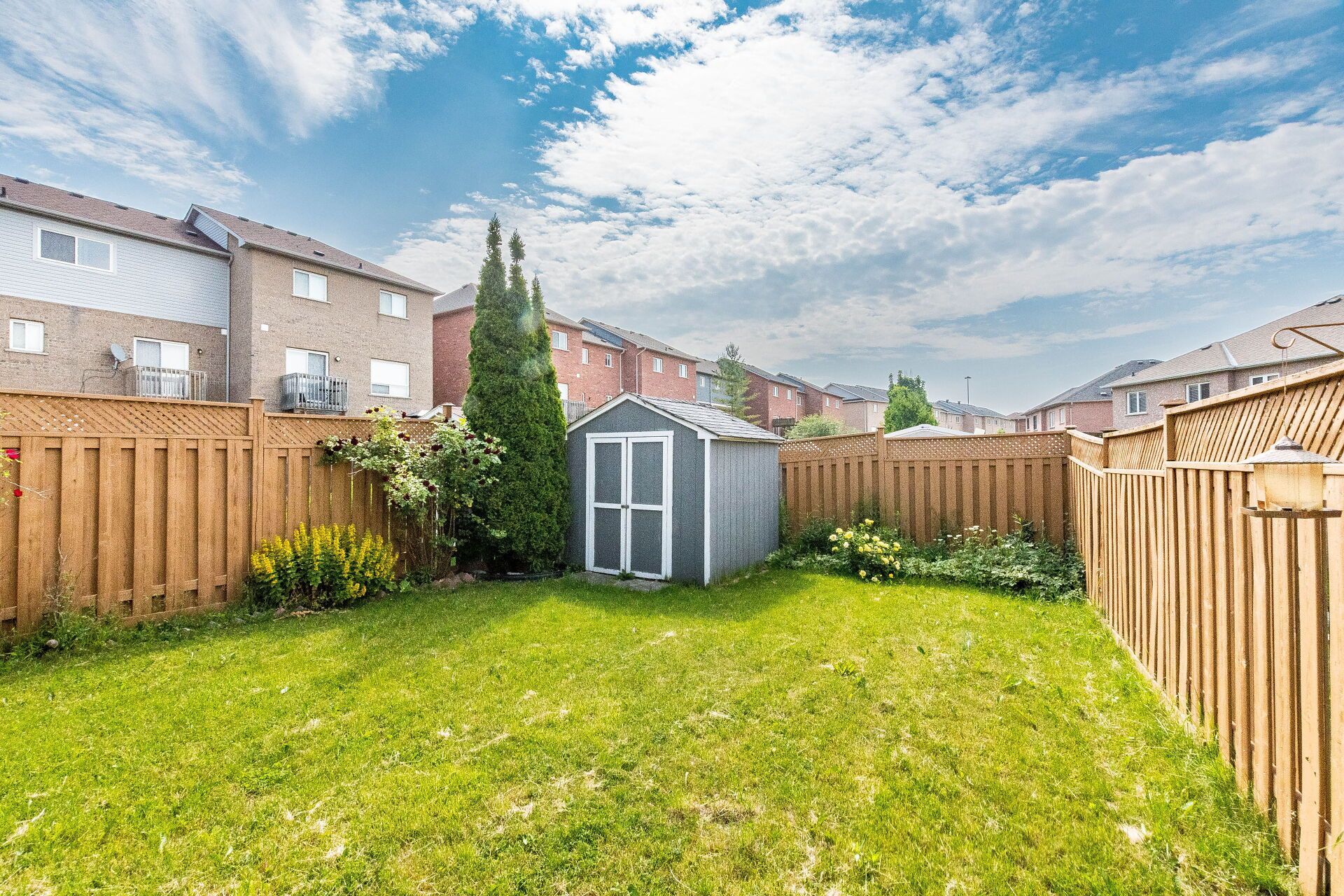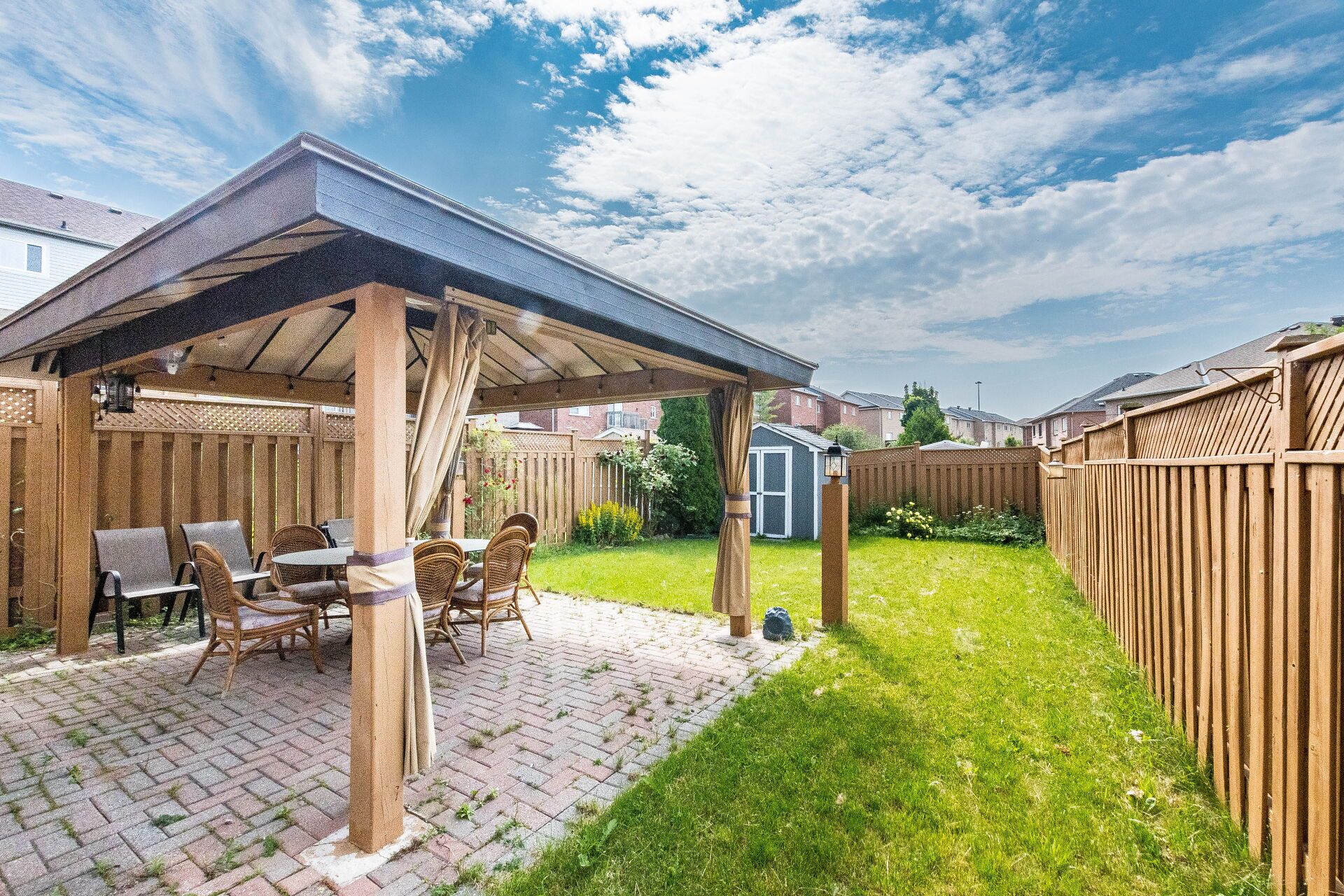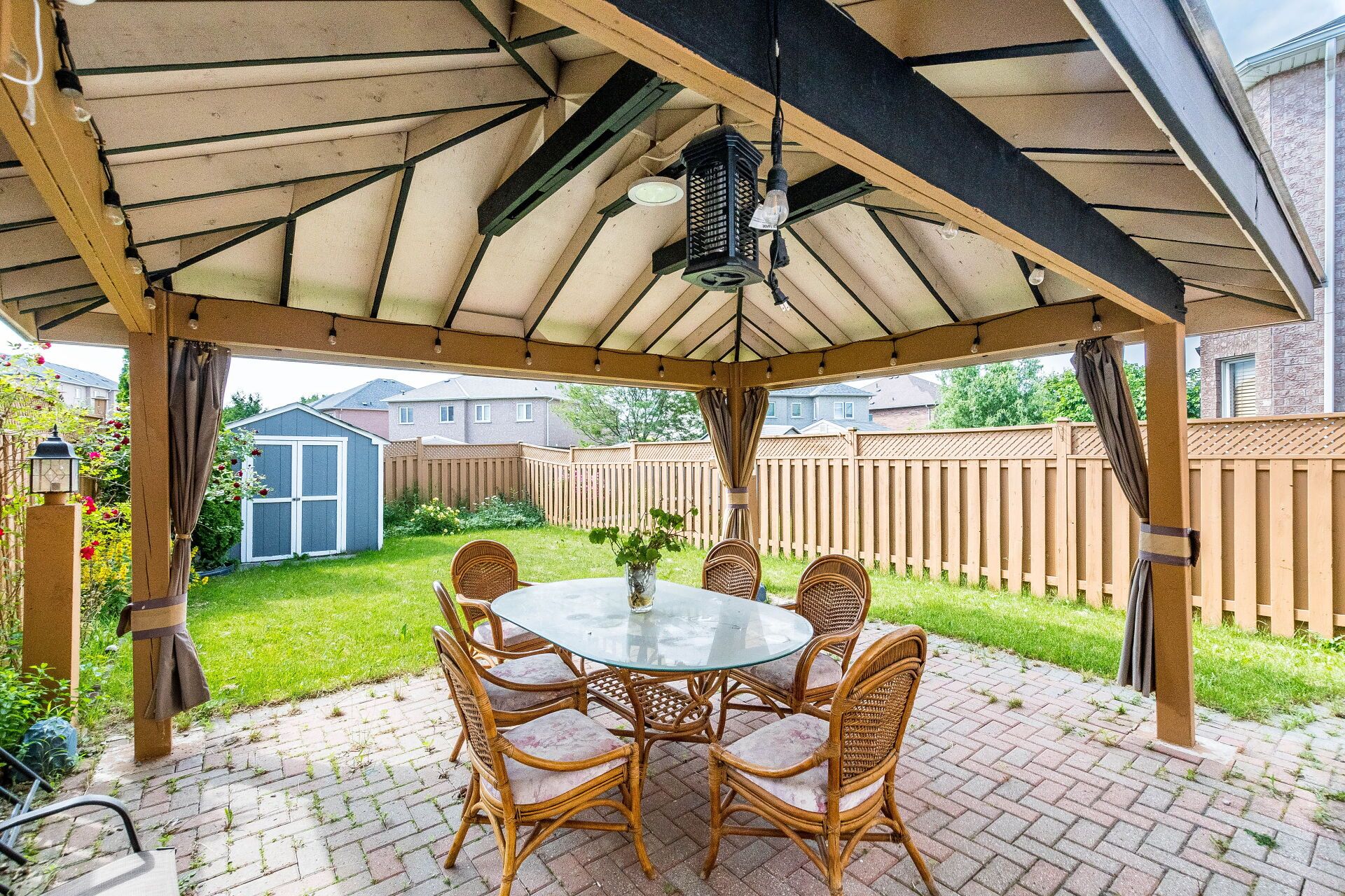 • Private backyard with a covered gazebo, perfect for summer gatherings.