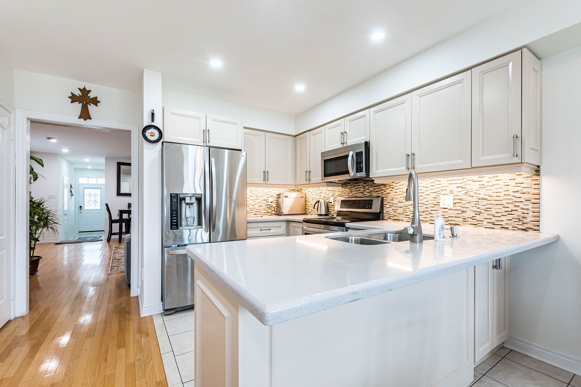 • Upgraded kitchen featuring quartz countertops and high-end stainless steel appliances.