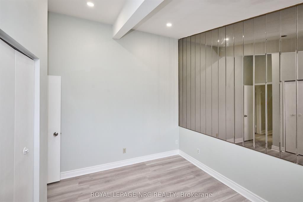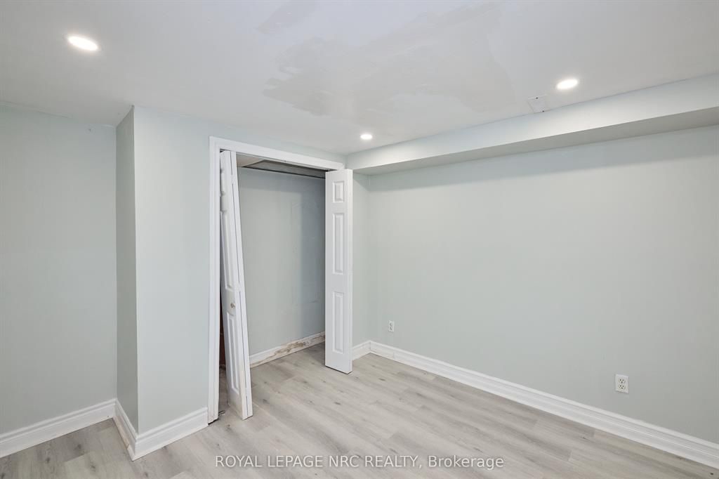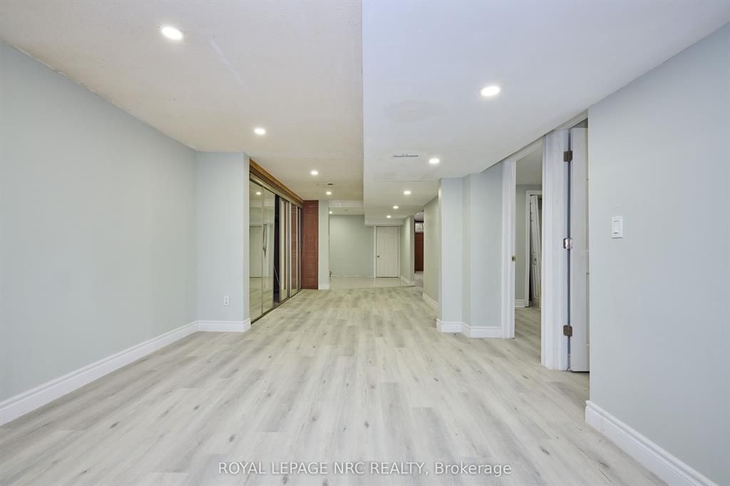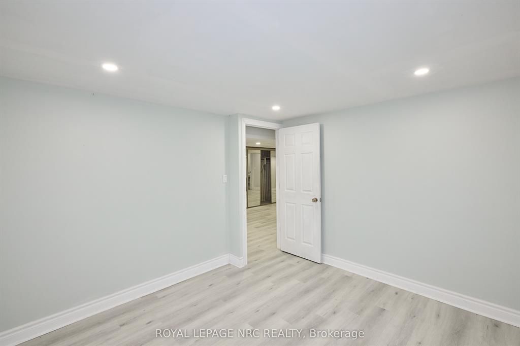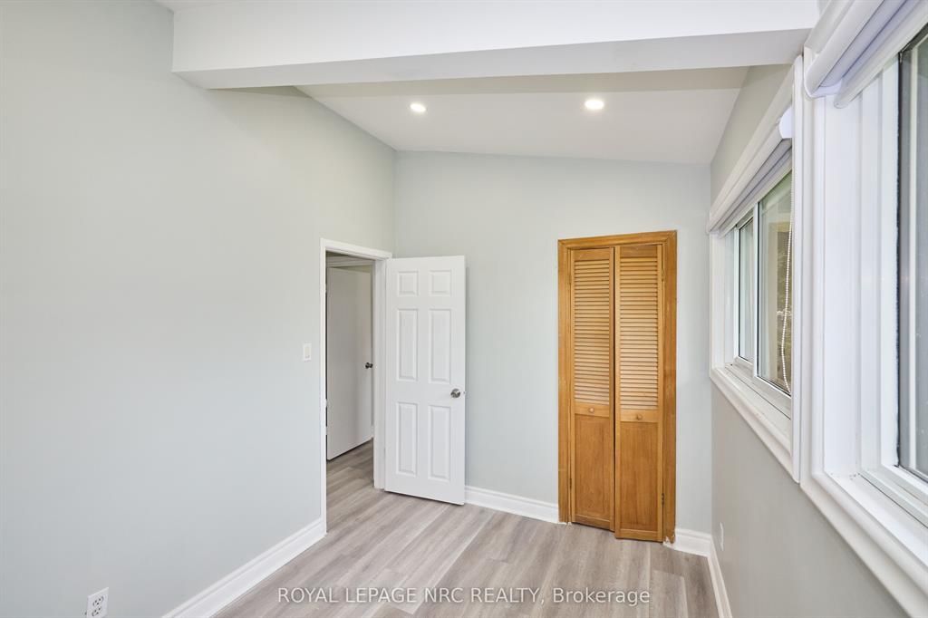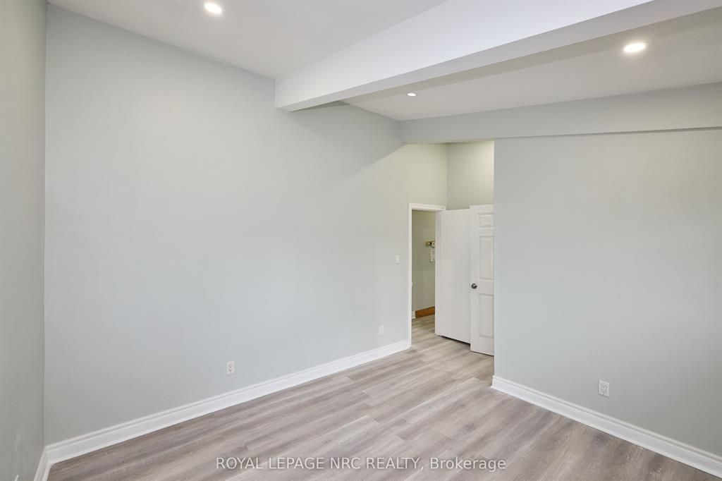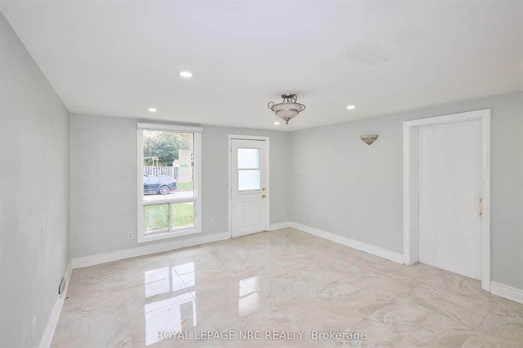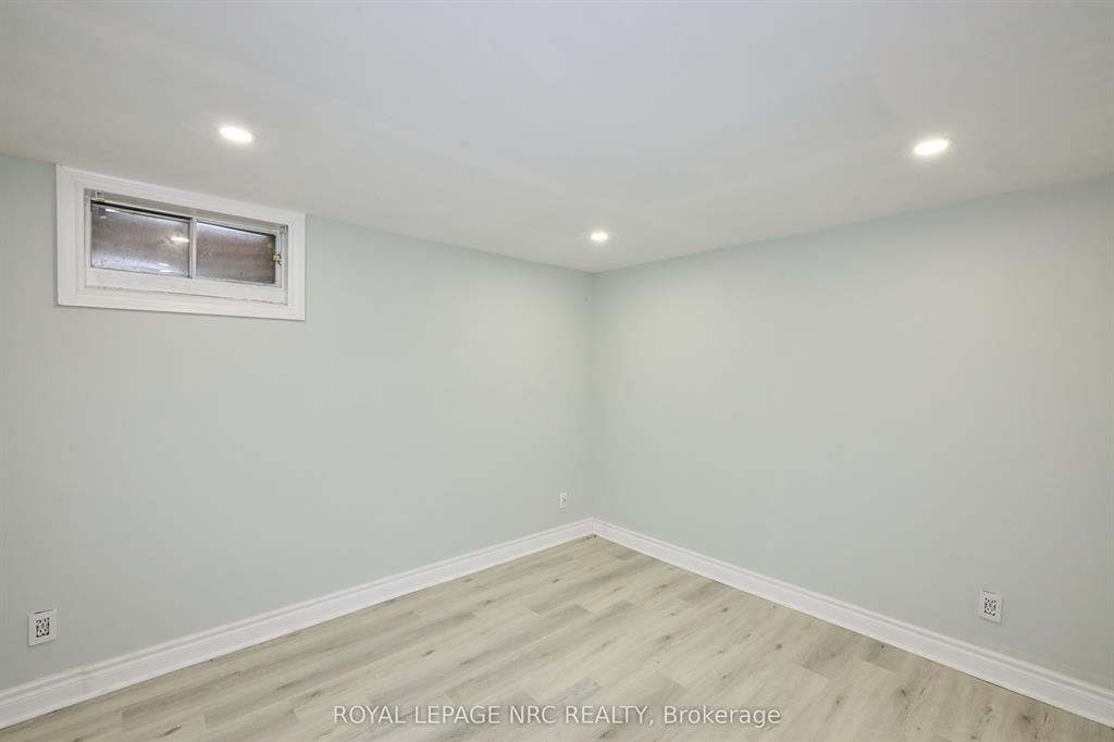 Large 3+2 bedroom bungalow with 2 car garage, located in the heart of stamford center. This unique and spacious layout features a kitchen skylight and vaulted ceilings. A large dining area with french doors leads to a family room and bedroom with updated laminate flooring. Patio doors off the family room lead to a private backyard deck with a fenced-in backyard. An attached living room with vaulted ceilings and plenty of windows offers natural light. A brick reclaimed ceiling height, gas fireplace, and four-piece bathroom are also included. The main four-piece bathroom, large living room, and two bedrooms are located on the main floor. This bungalow is within walking distance of shopping, restaurants, and schools.