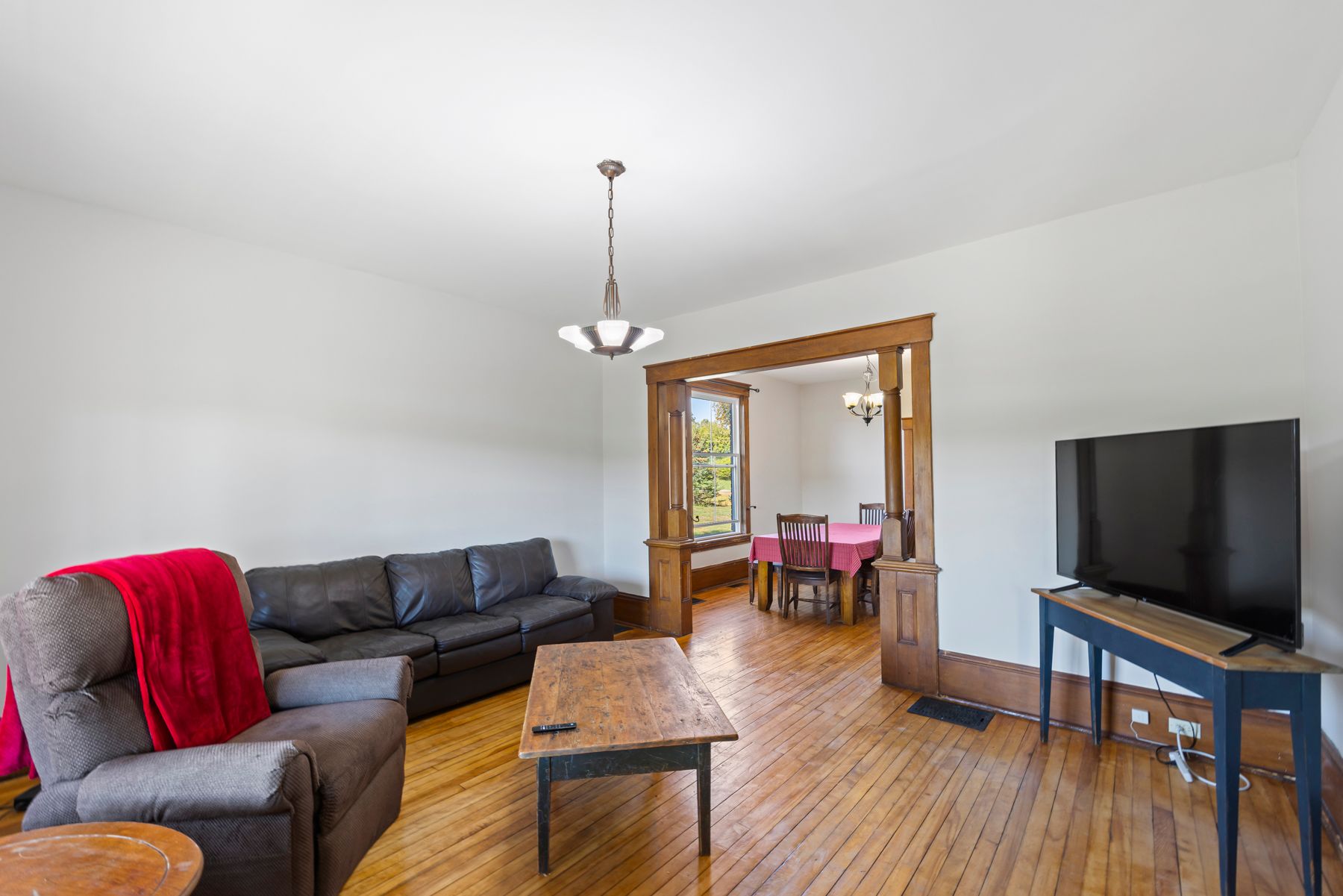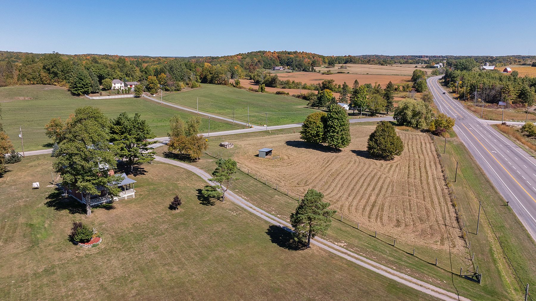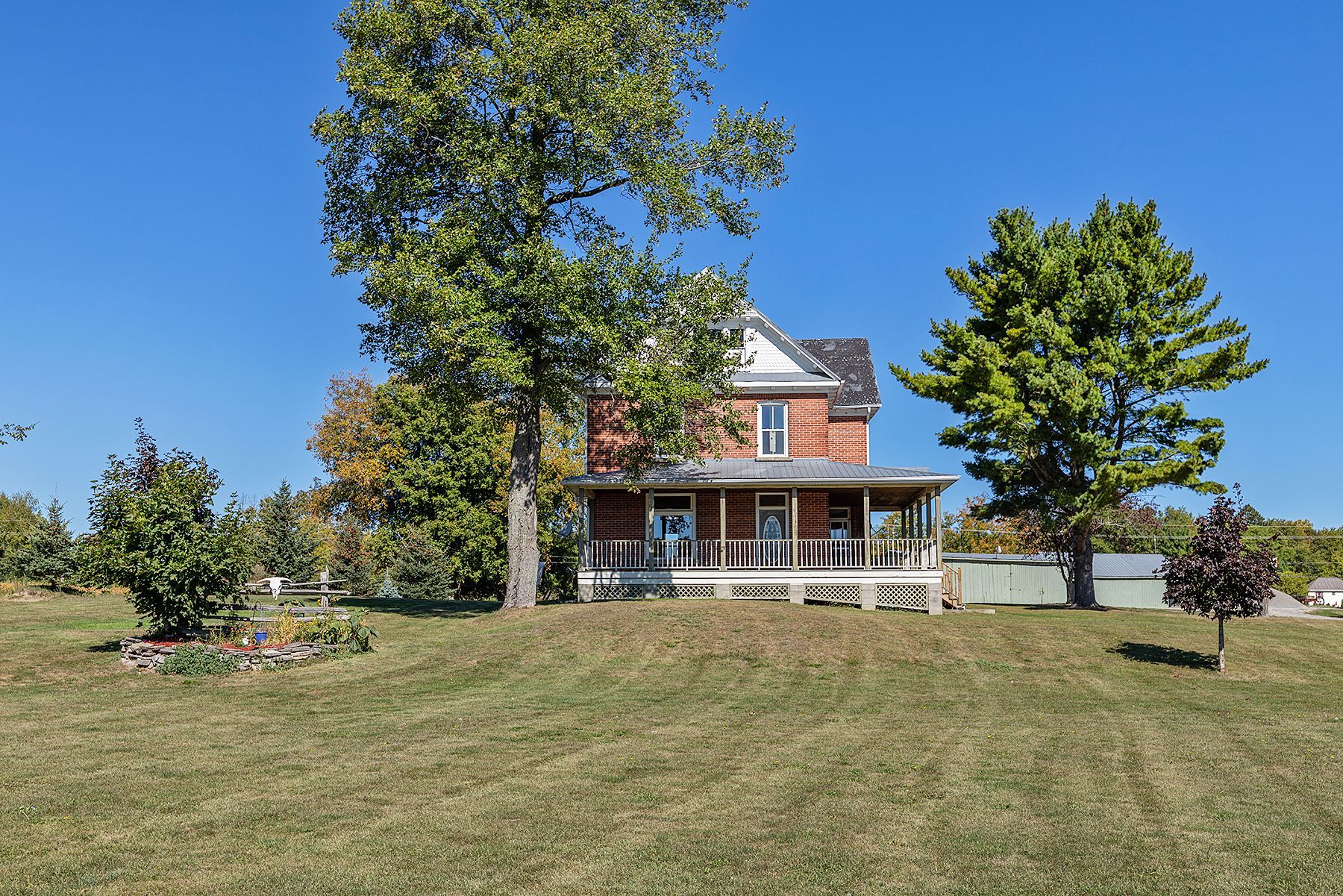 Picturesquely set on over 4 acres and only 15 minutes from kingston, this timeless 2-storey brick home perfectly blends elegance with country charm. Step inside to find a true country kitchen, with abundant pantry space, modern appliances, and an elmira cook stove, exuding functionality and inviting vibes. Warm hardwood floors flowing through much of the main level, featuring a spacious living room, a sunroom complete with vaulted ceilings, a convenient laundry room with storage, and a full 3-piece bath. Upstairs, hardwood continues into four cozy bedrooms and a 4-piece bath. A spacious attic provides endless potential whether you envision astudio, playroom, or home gym, your dream space awaits. The unfinished basement offers even more room for your future projects. Updates include extensive spray foam throughout the home. Outside, the wrap-around porch is the perfect spot for morning coffee, overlooking the sweeping green landscape. Outbuildings grace the property, ready for your personal touch to complete the country lifestyle.