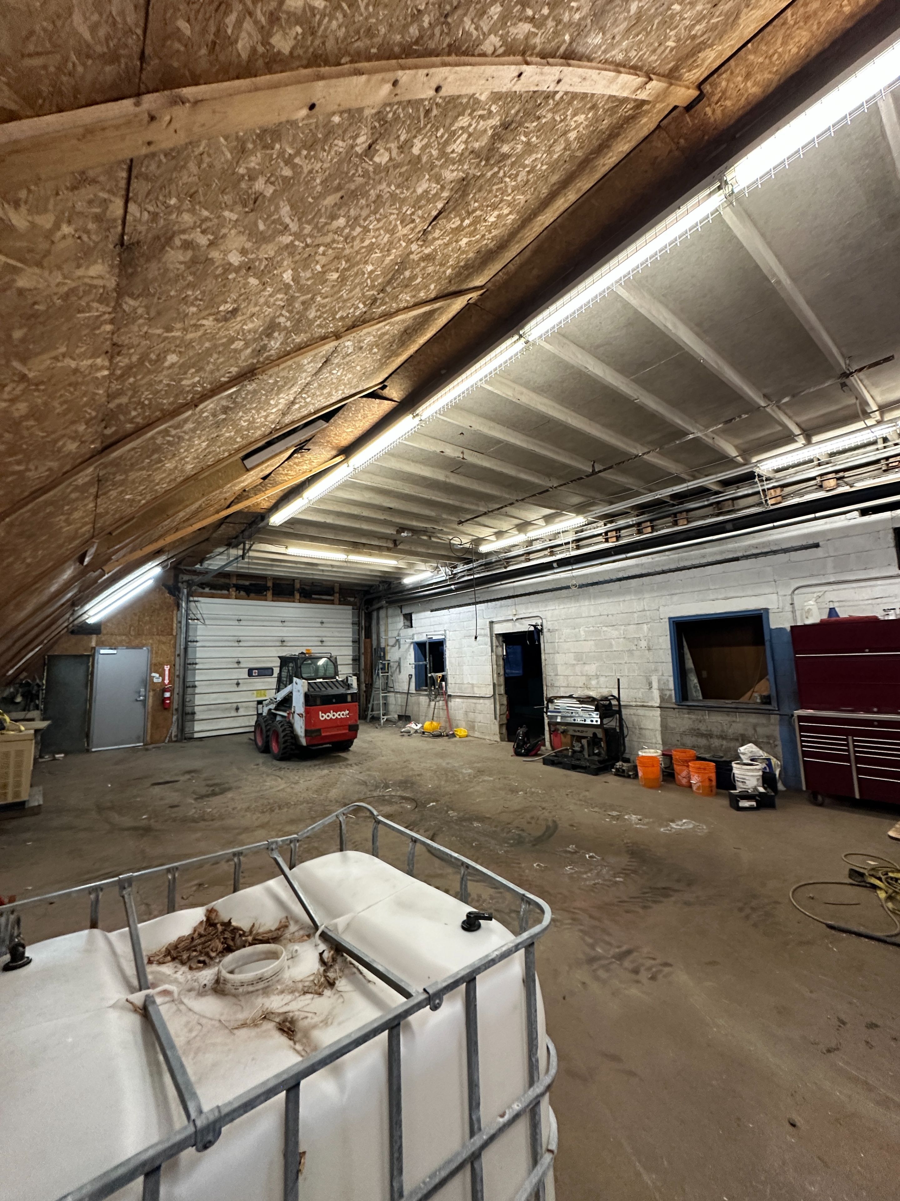 • High arched ceiling and wide overhead door for easy vehicle access.
