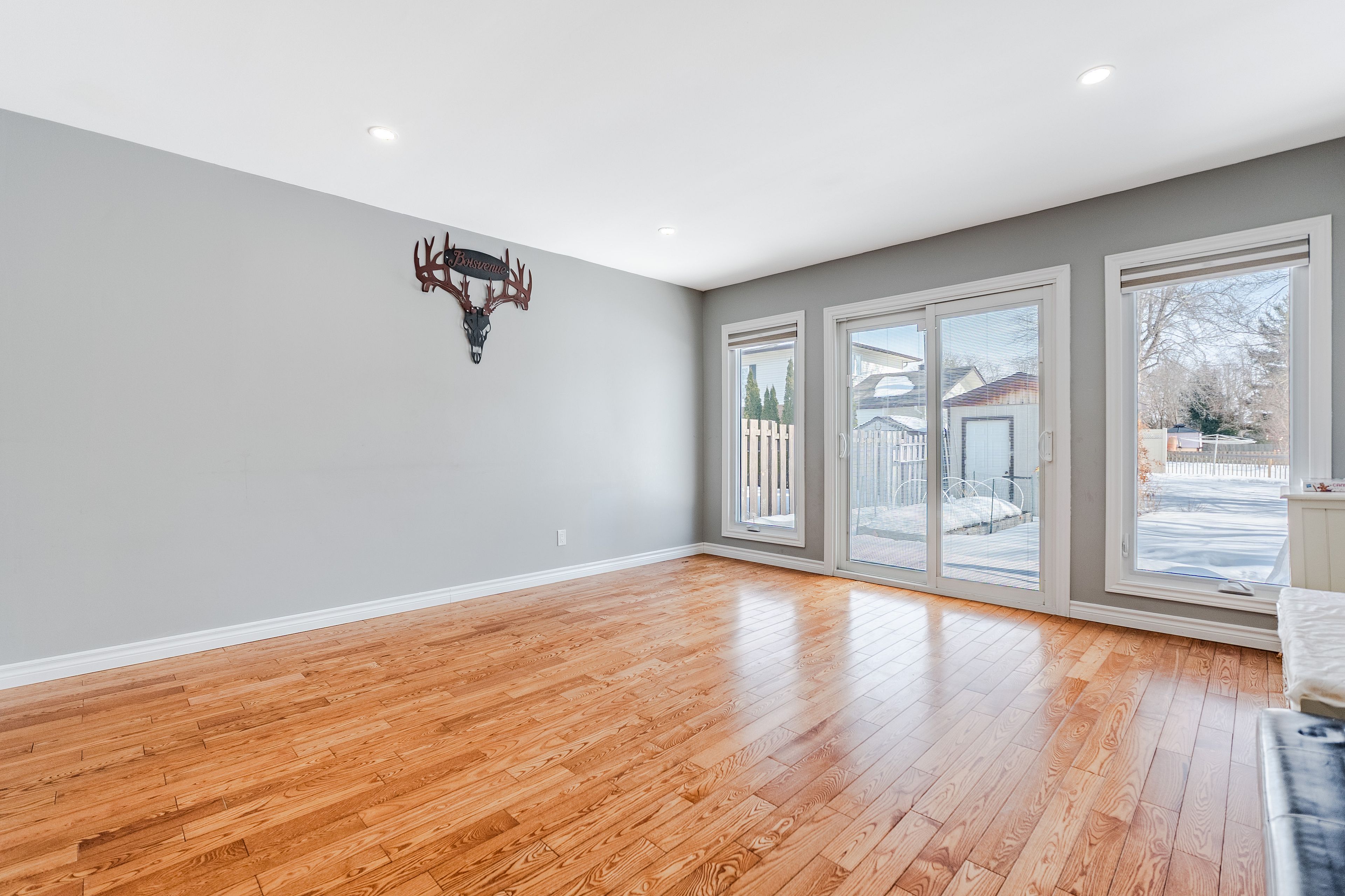 • Relaxing TV room with patio doors leading to the private backyard.