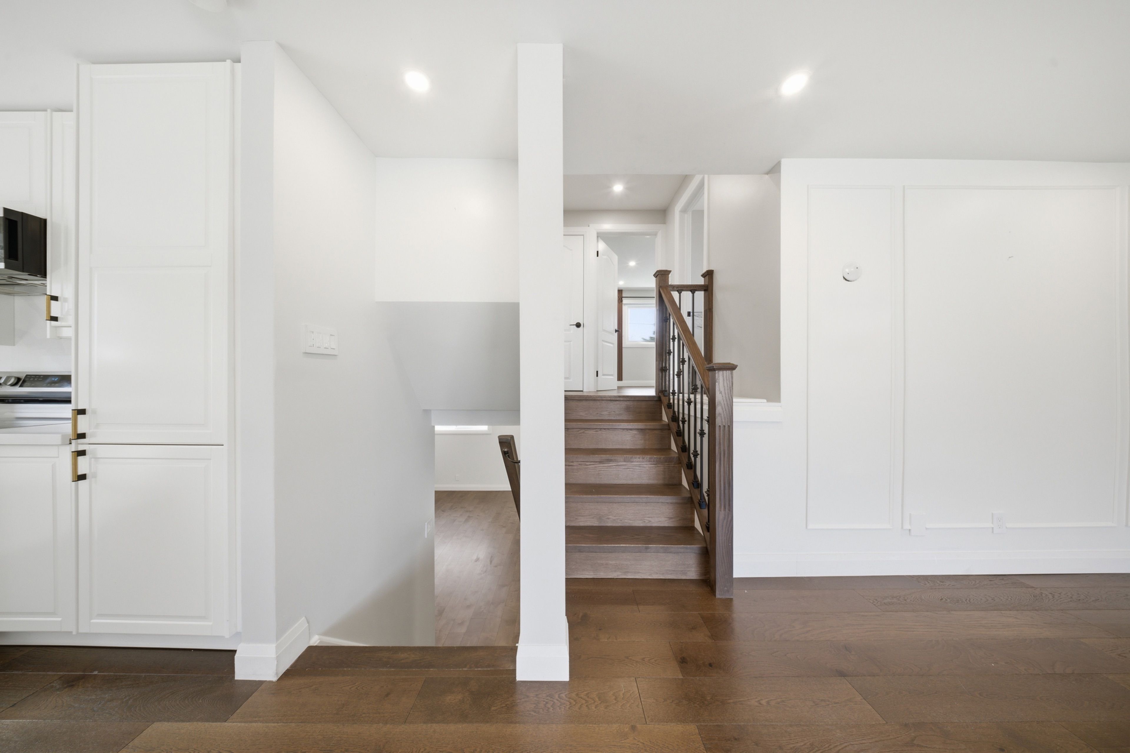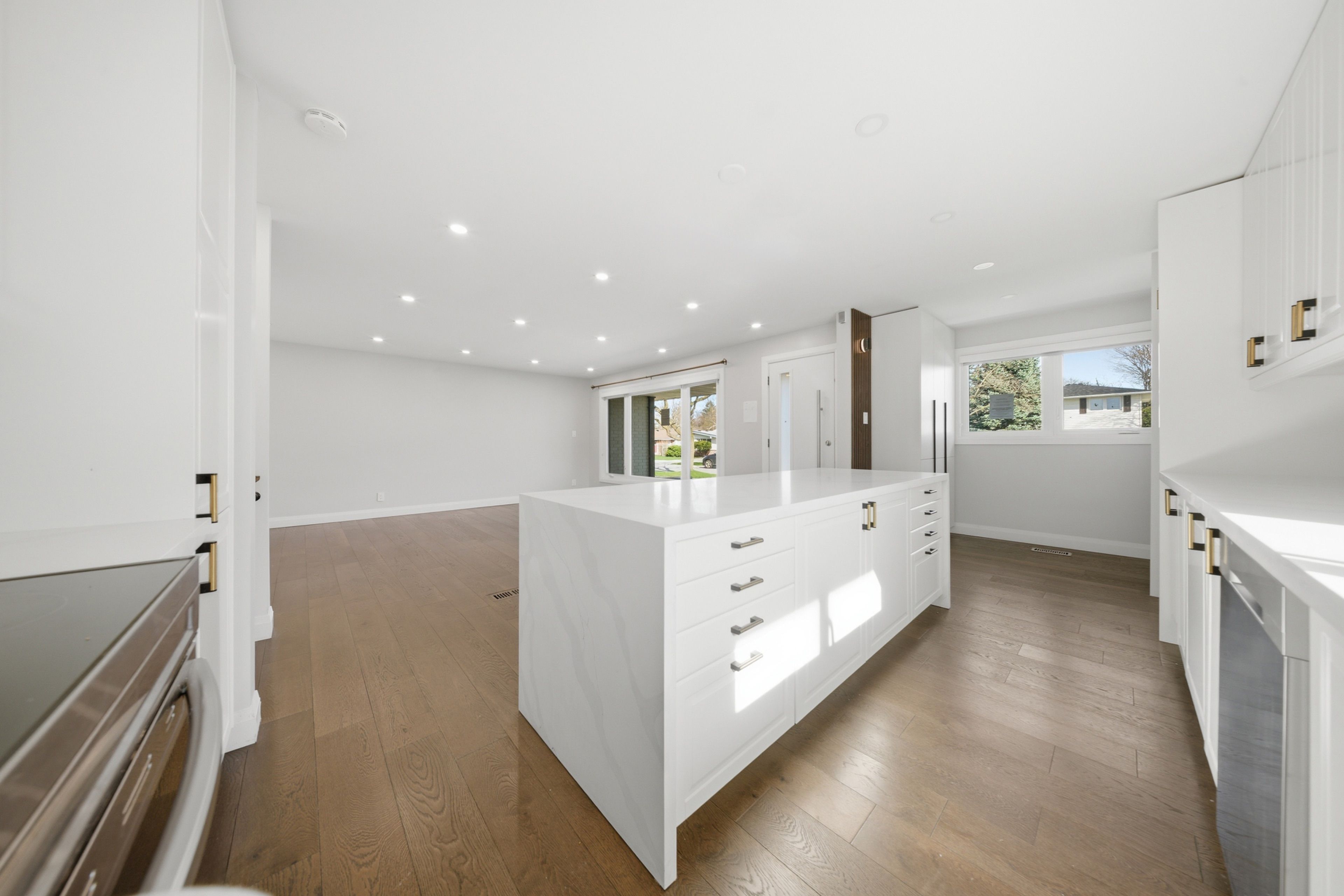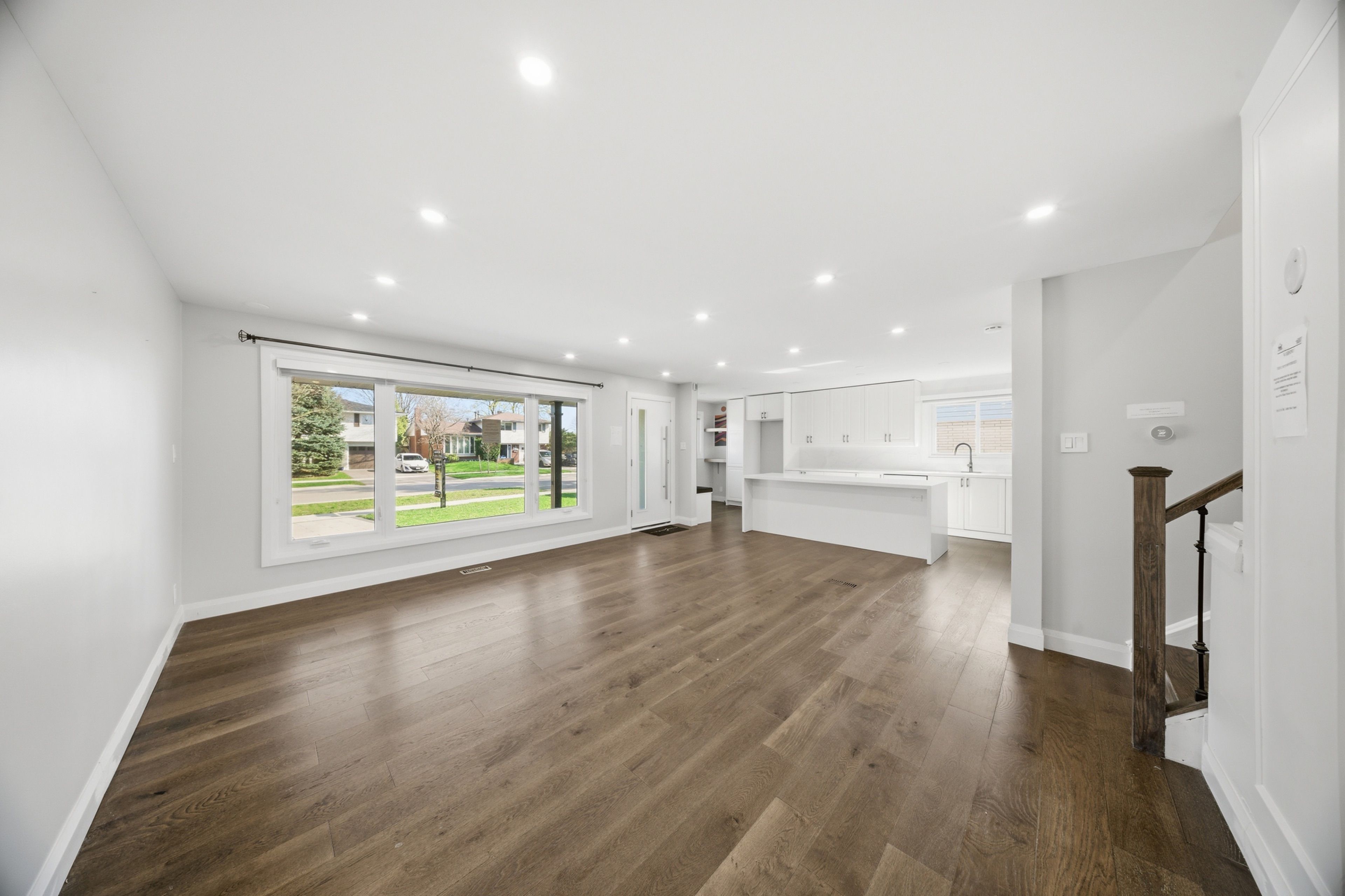 Set on a quiet street in sought-after south burlington, this fully renovated home offers a perfect blend of modern style and everyday comfort. Upon entry, guests are welcomed into a bright sitting and dining room combination, an inviting space ideal for both everyday living and entertaining. The main level additionally offers a contemporary kitchen that serves as the heart of the home, complete with a large island and sleek quartz countertops and backsplash, all seamlessly connected within an open-concept layout. Upstairs, you'll find three spacious bedrooms along with a 4pc bathroom, creating a comfortable retreat for the family. Just a few steps down, the bright family room provides a warm and relaxed setting, featuring a striking stone accented fireplace and pot lighting throughout. This level also includes a fourth bedroom, a convenient 3-piece bathroom, and walk-up access to the backyard. Engineered hardwood flooring runs throughout, while large windows bring in an abundance of natural light. The finished basement adds even more versatility with a spacious rec-room, laundry room, and a 3pc bathroom. Outside, the home continues to impress with beautiful curb appeal and a private backyard oasis featuring an in-ground pool. Located in a top-rated school district and close to parks, trails, everyday amenities, and with convenient access to the qew, this home offers an exceptional lifestyle in a prime location.