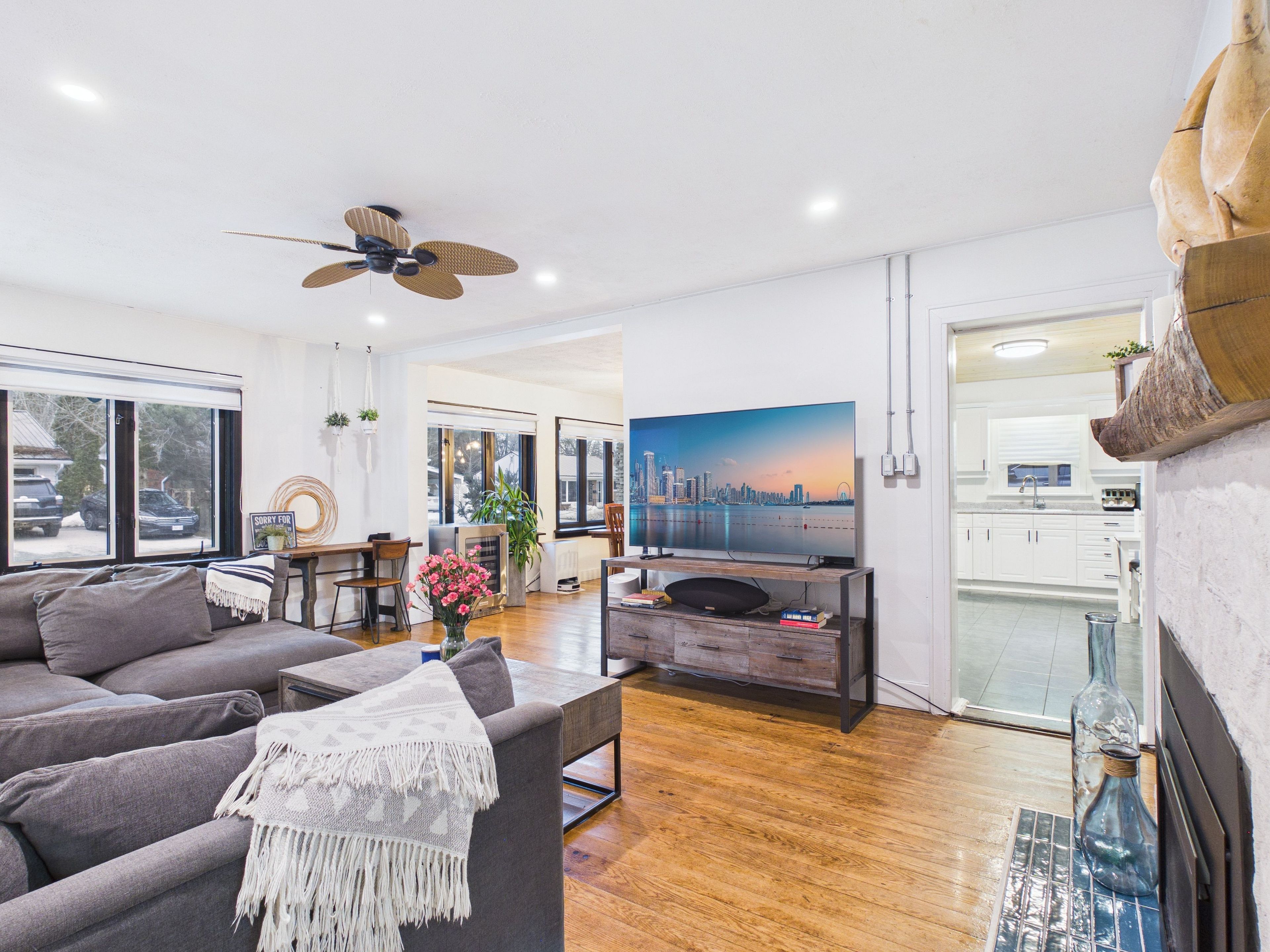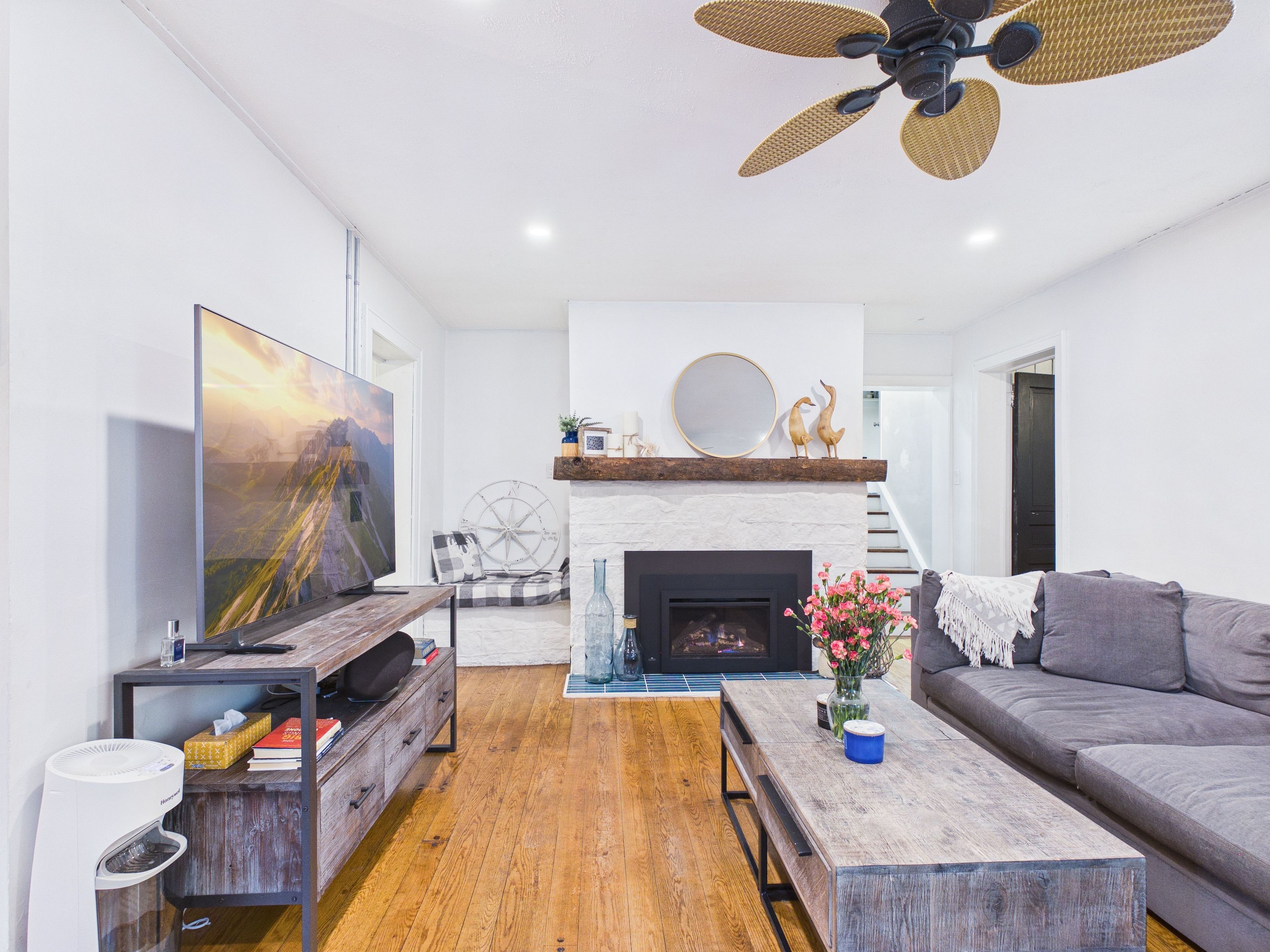 • Spacious living room with a new gas fire insert for cozy gatherings.