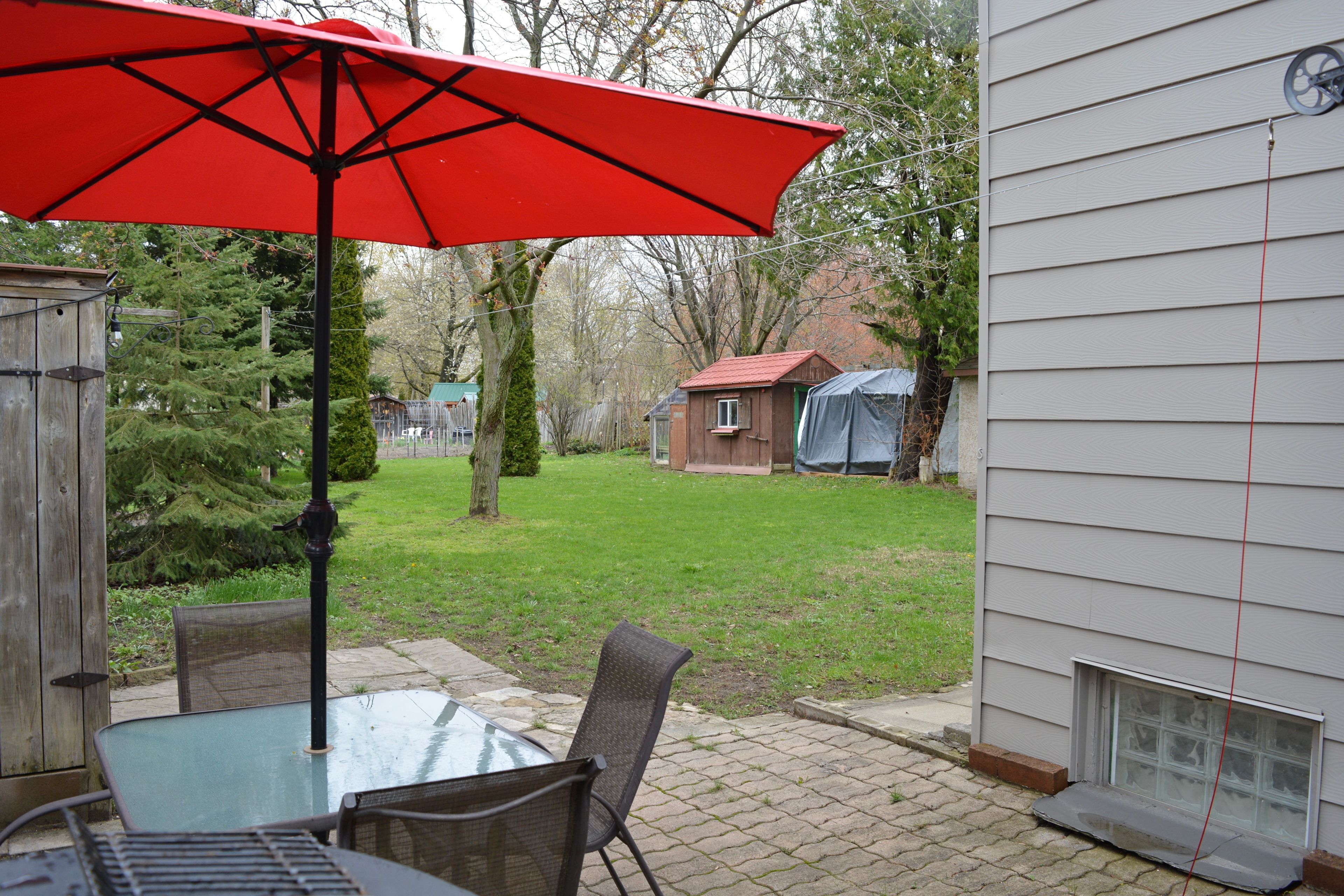 • Large backyard great for gatherings, play, or relaxation.