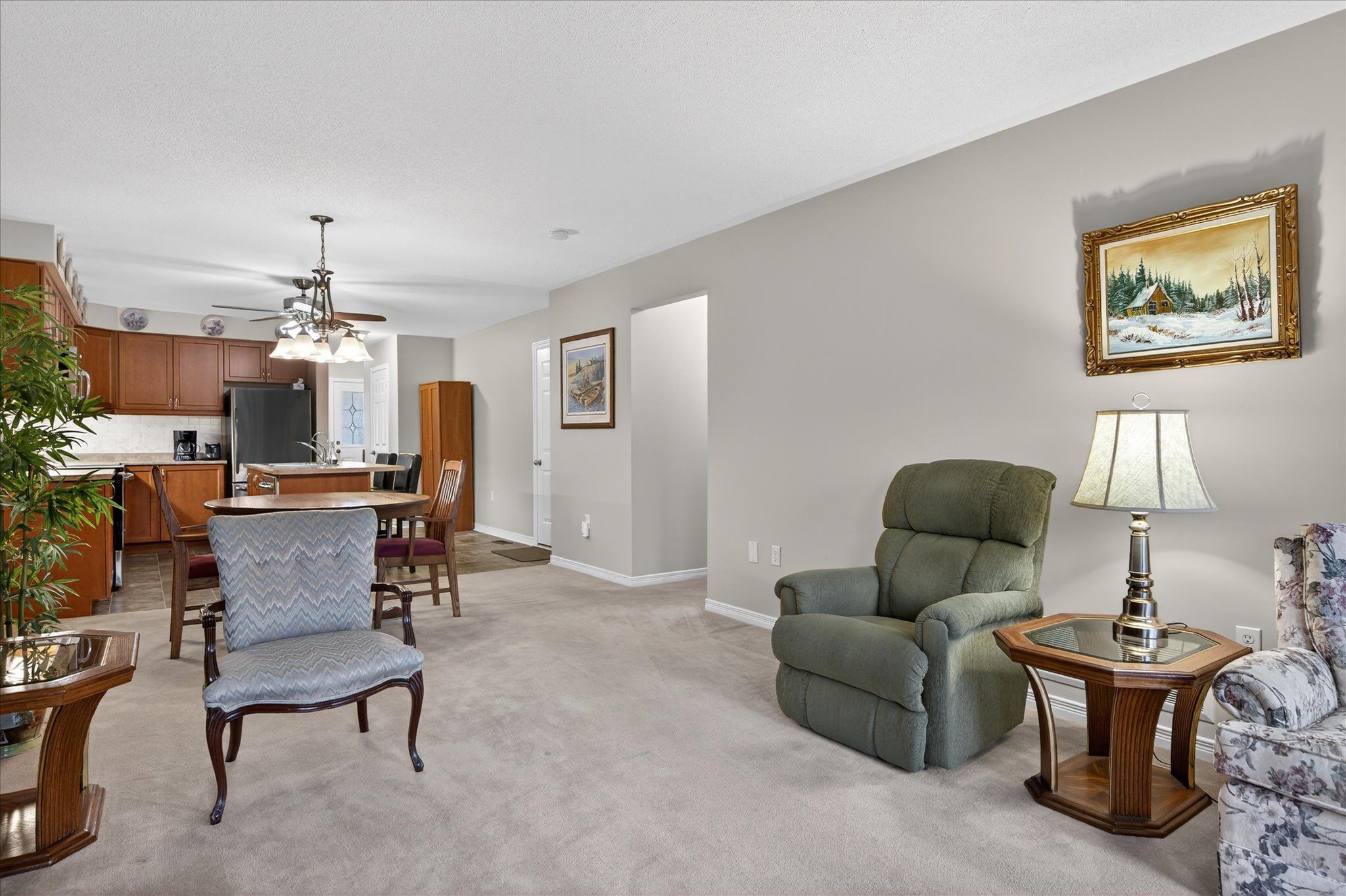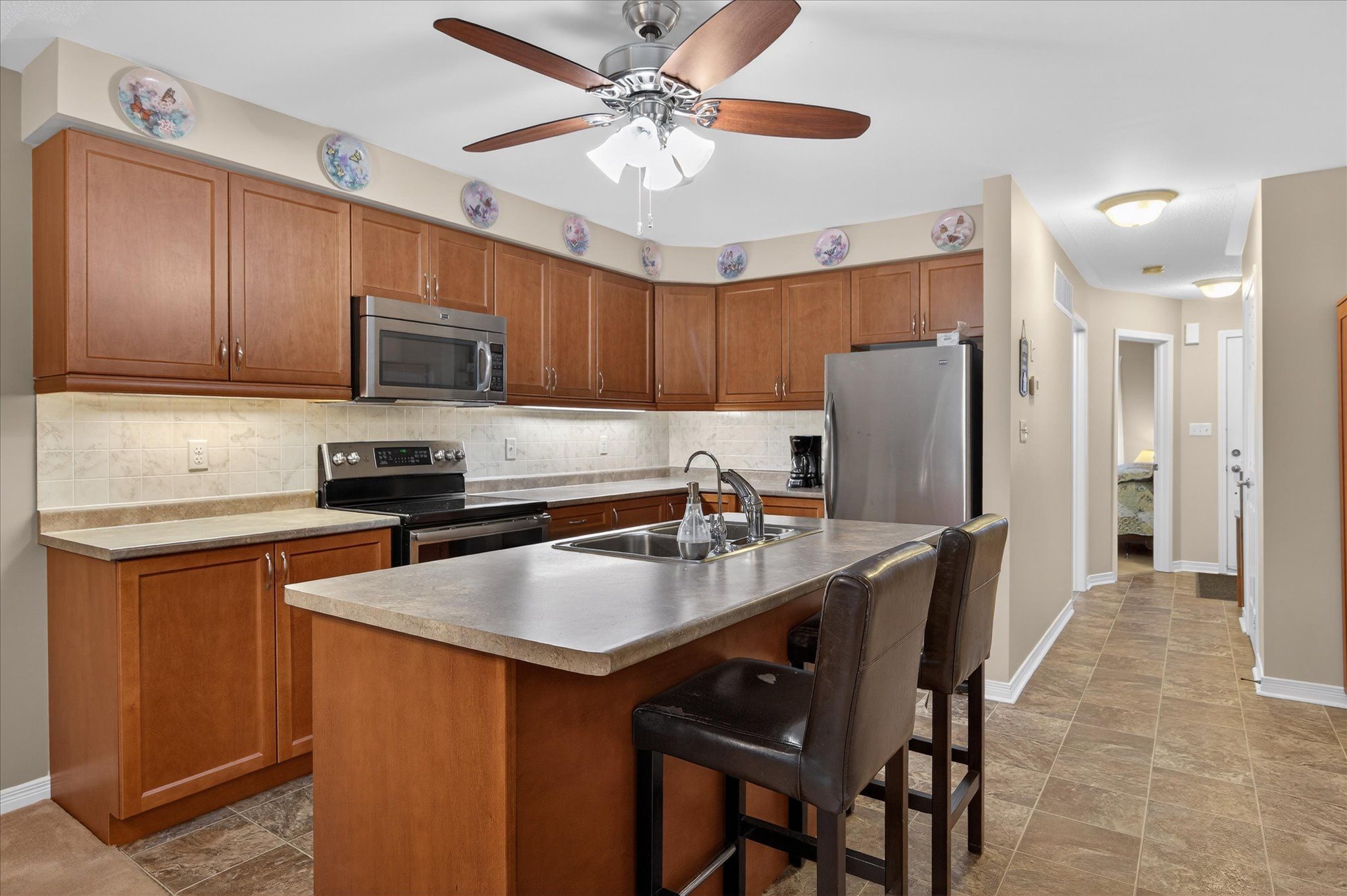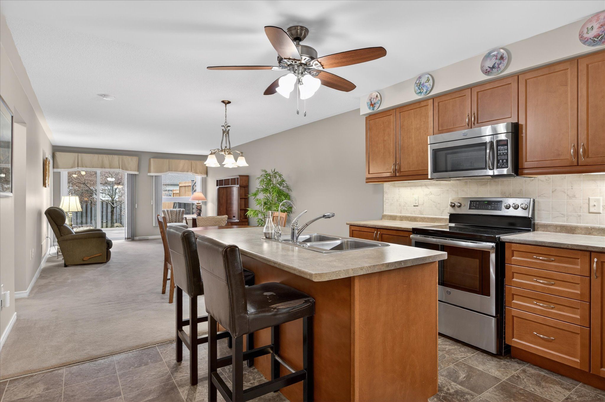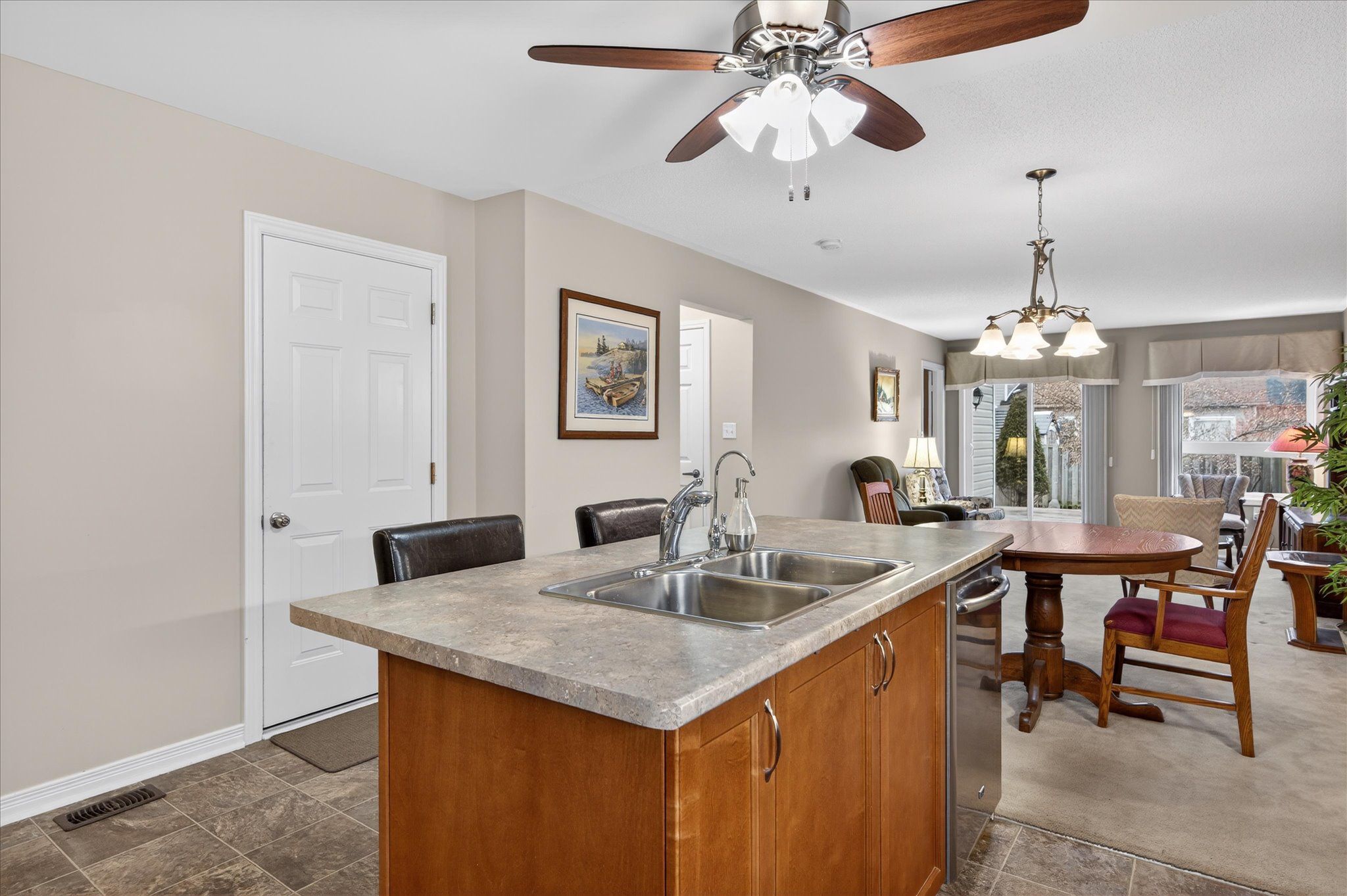 • Open-concept living space with a kitchen center island.