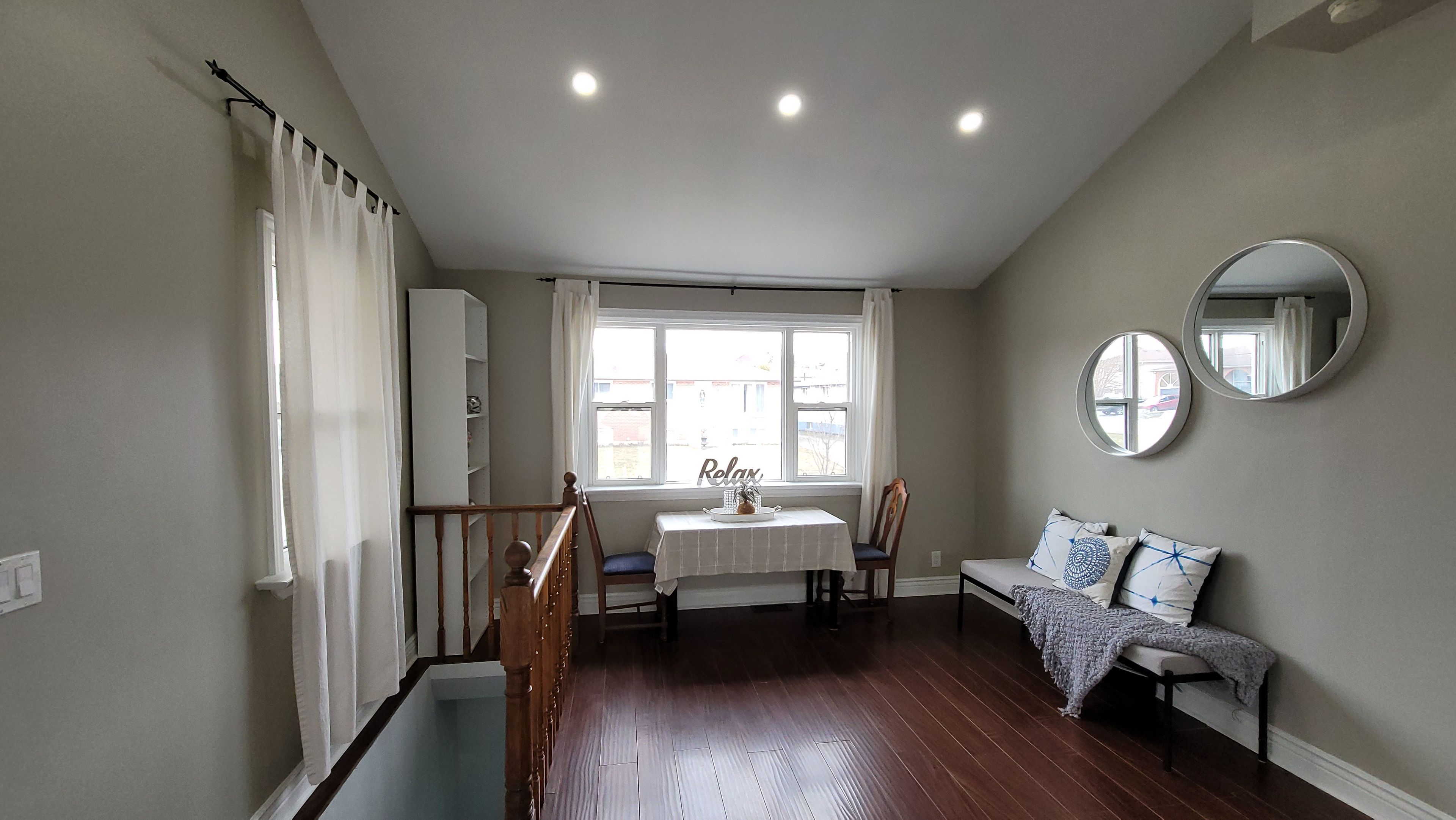 This turn-key detached freehold raised bungalow perfectly blends modern comfort with an unbeatable location, making it a must-see for first-time buyers and downsizers alike. The bright interior is defined by high ceilings and sleek led pot lights, flowing seamlessly into the spacious finished basement which offers a large family room and a second bathroom with a walk-in shower. Modern efficiency is found in every detail, including timer switches for the lighting in both bathrooms, and significant updates like new roof shingles, an owned new hvac system, and a new hot water tank-eliminating any monthly rental fees. Outside, the property features a driveway with 2 parking spaces and a private entertainer's oasis boasting a massive 24ft x 10ft deck and a substantial 9ft x 10ft storage shed. Best of all, you're within walking distance to the vibrant restaurants, bars, and bus stops of main street, and just minutes from highway 400 and local schools.
