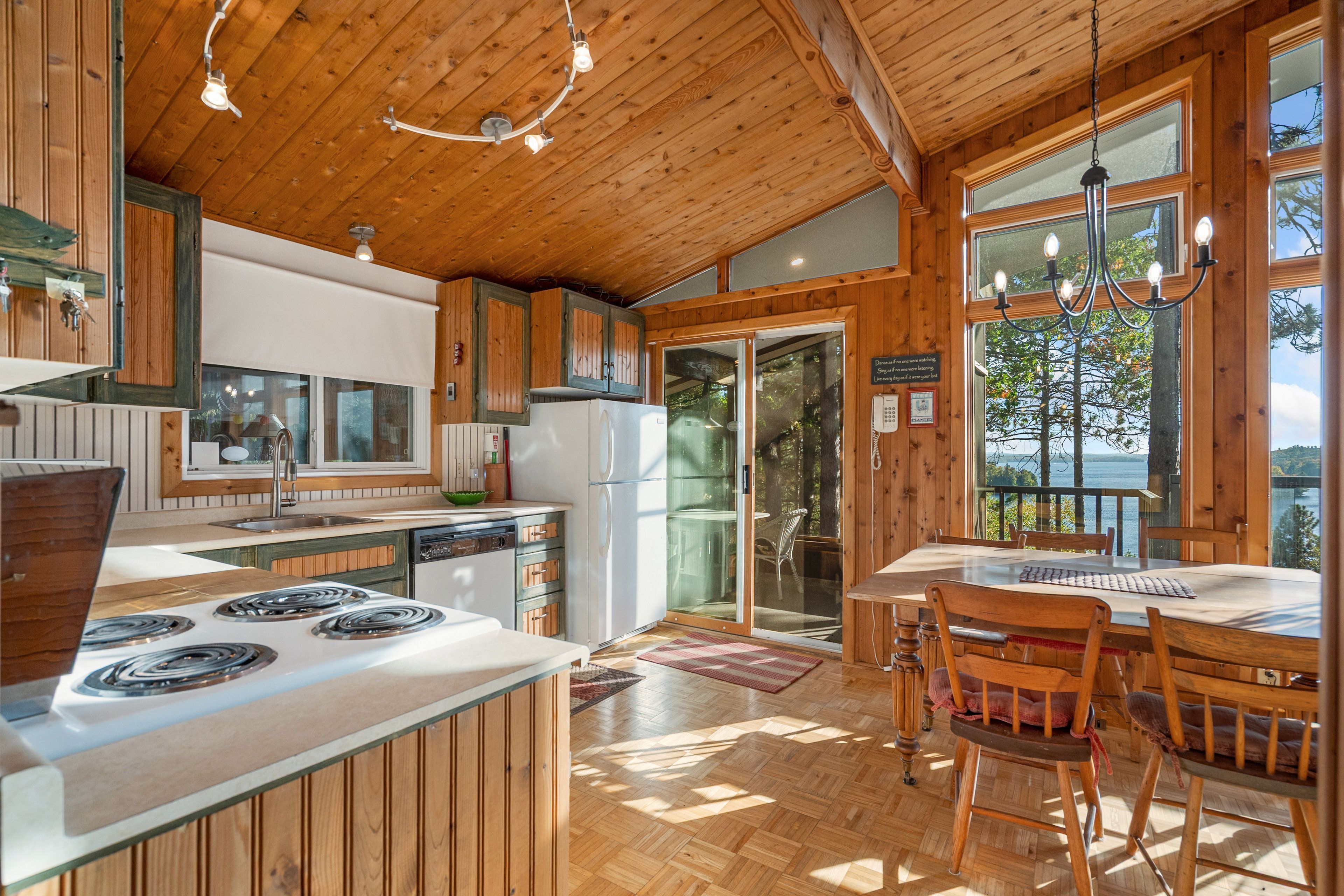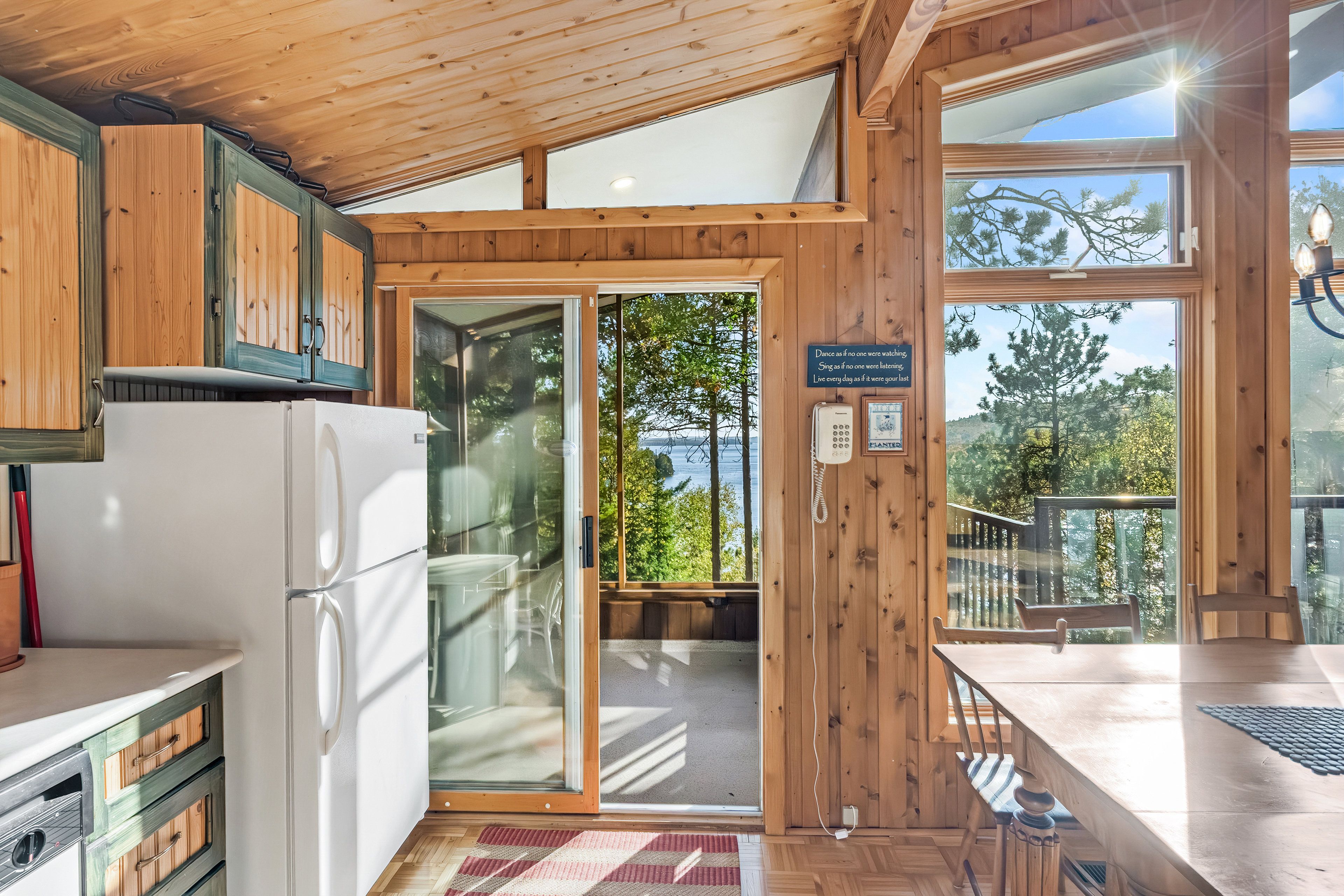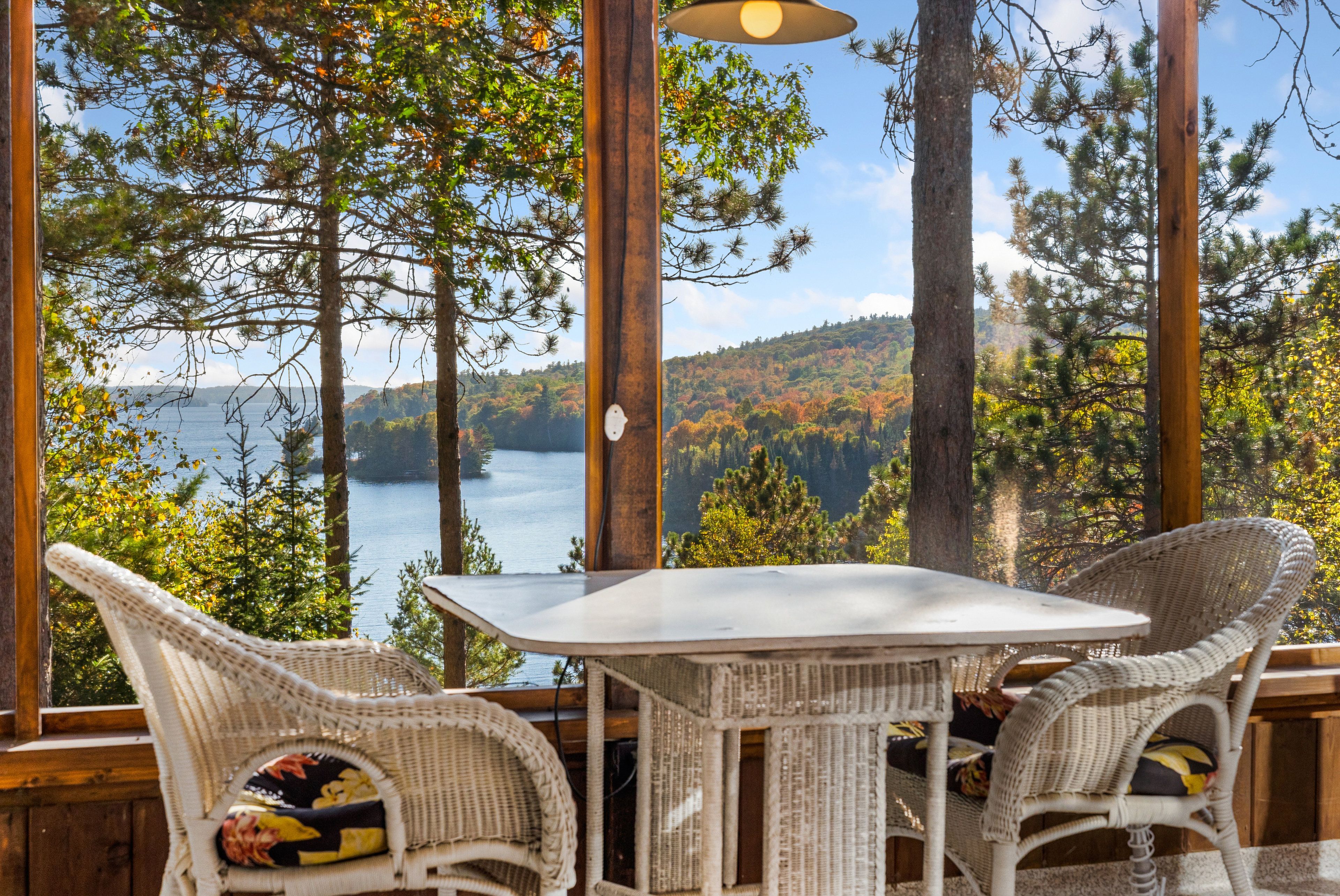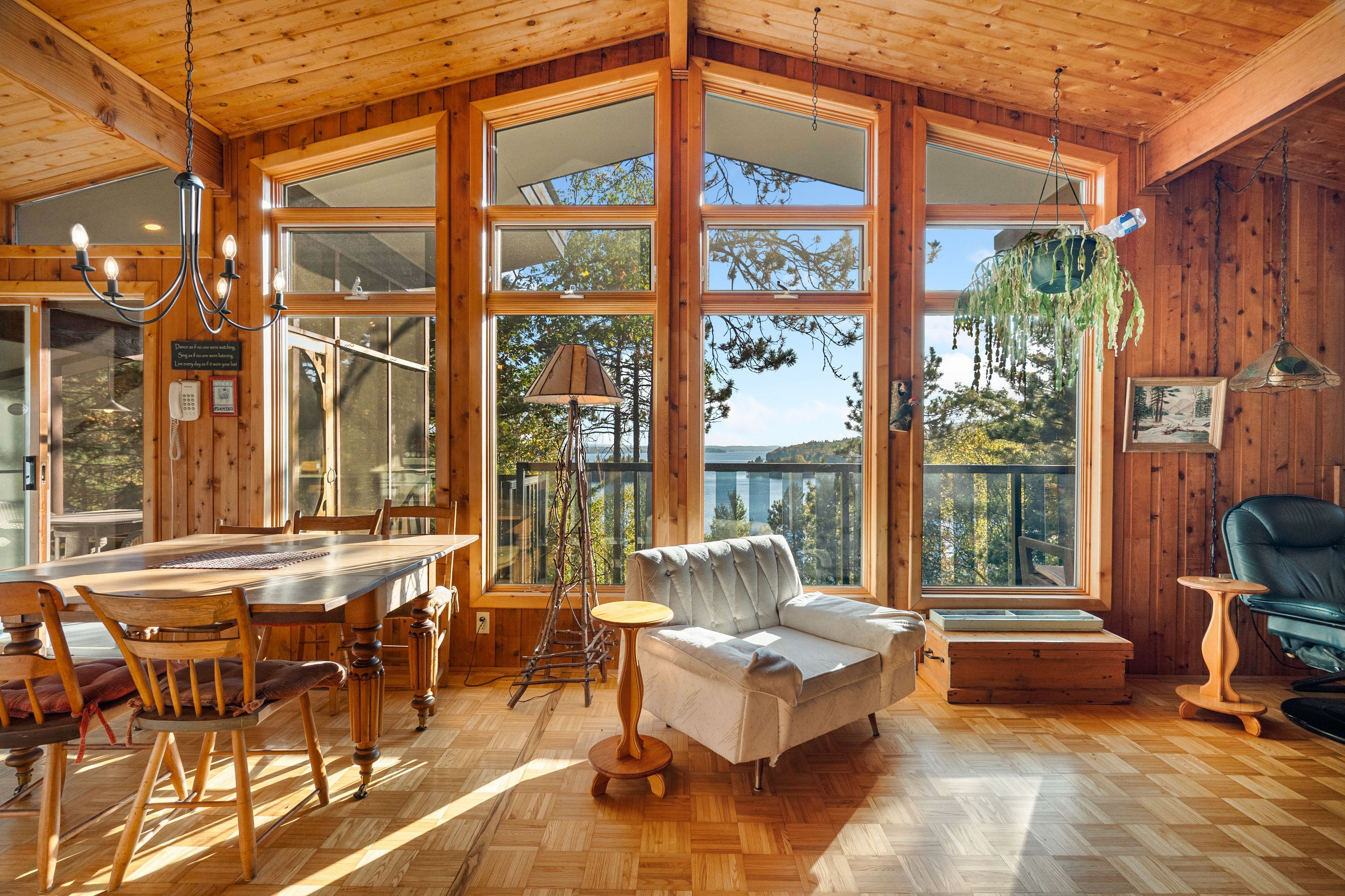 • Vaulted ceilings and large windows bring in stunning lake views.