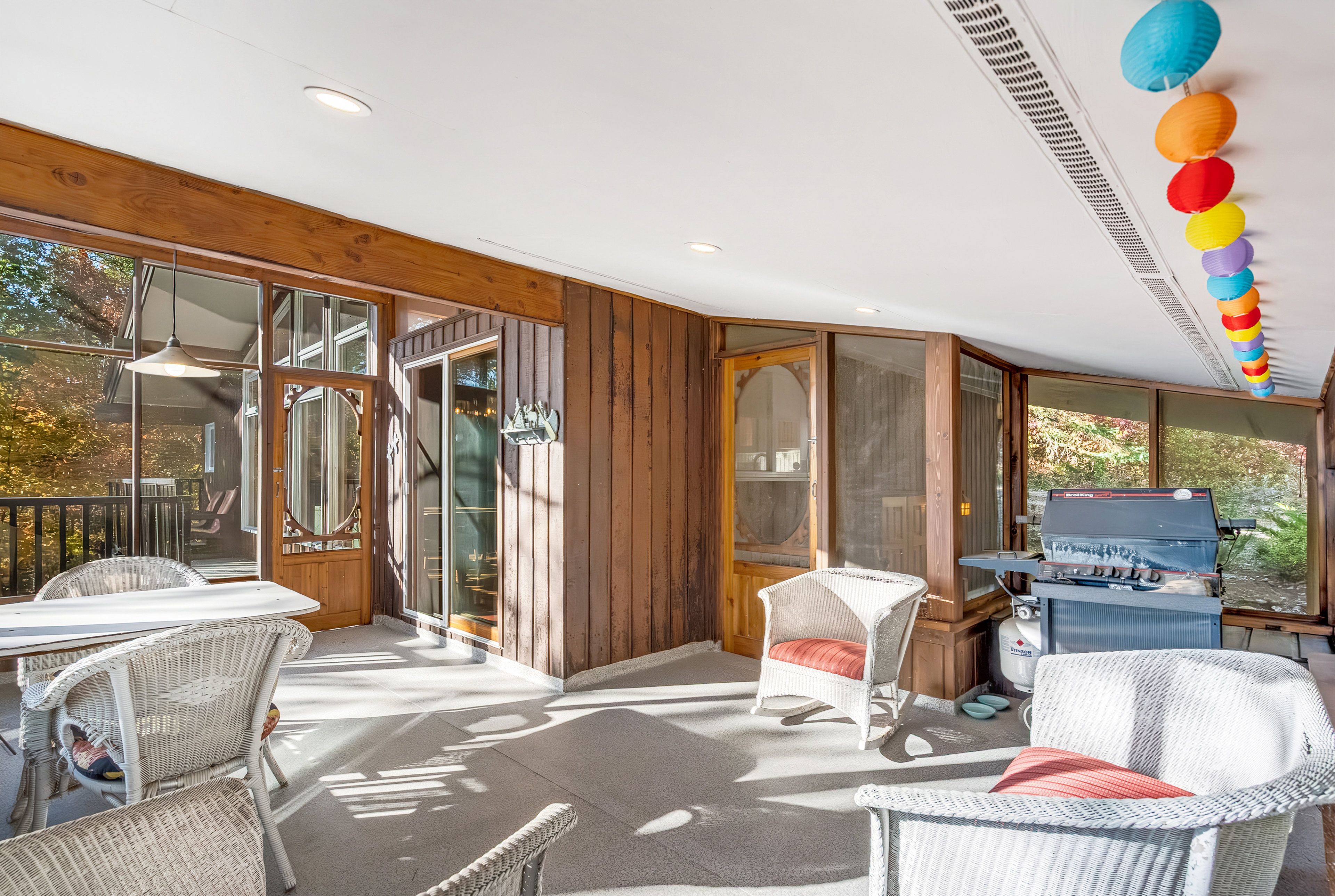 • Screened-in porch ideal for dining and bug-free relaxation.