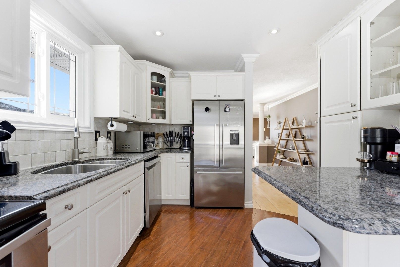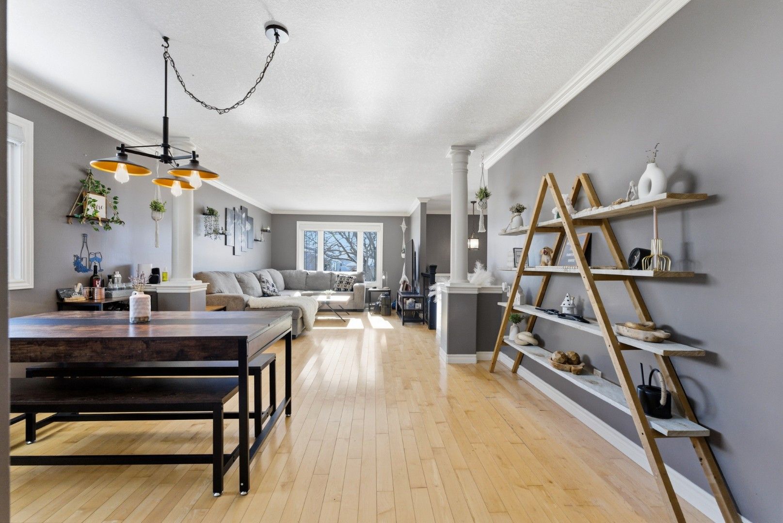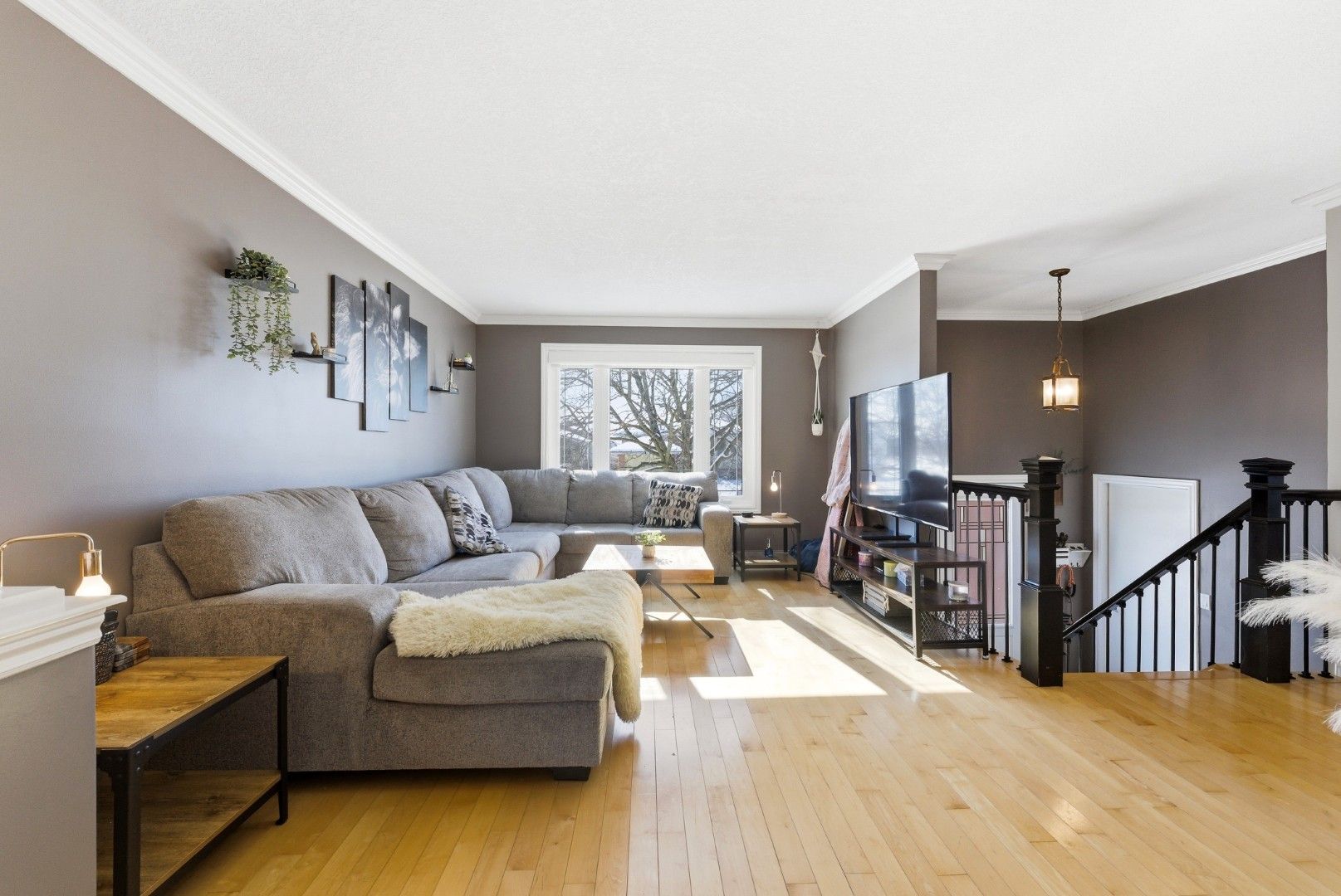 Welcome to 67 bogart crescent in belleville - a beautifully updated brick and stucco raised bungalow offering elegant finishes and versatile living space. Built in 1988, this home blends timeless charm with modern updates. Hardwood flooring spans the main level, complemented by crown moulding in the living room, dining area, kitchen, and primary bedroom. The updated kitchen features stainless steel appliances, granite countertops, and convenient access to the backyard and spacious two-tier deck - perfect for entertaining. Three well-appointed bedrooms complete the main floor. The renovated 4-piece bathroom offers a relaxing soaker tub, walk-in tiled shower with striking black shower panel, and a stylish shiplap vanity wall. The fully finished lower level provides additional living space with a large recreation room featuring laminate flooring, cozy gas fireplace, and pot lights throughout. A versatile fourth bedroom includes laminate flooring, shiplap feature wall, pot lights, and a private 3-piece ensuite with stand-up shower - ideal for guests, teens, or in-law potential. A generous laundry room with sink and storage cabinets adds everyday convenience. Step outside to a fully fenced backyard oasis with a large two-tier deck and charming pond. An attached garage completes this move-in-ready home in a desirable belleville neighbourhood.