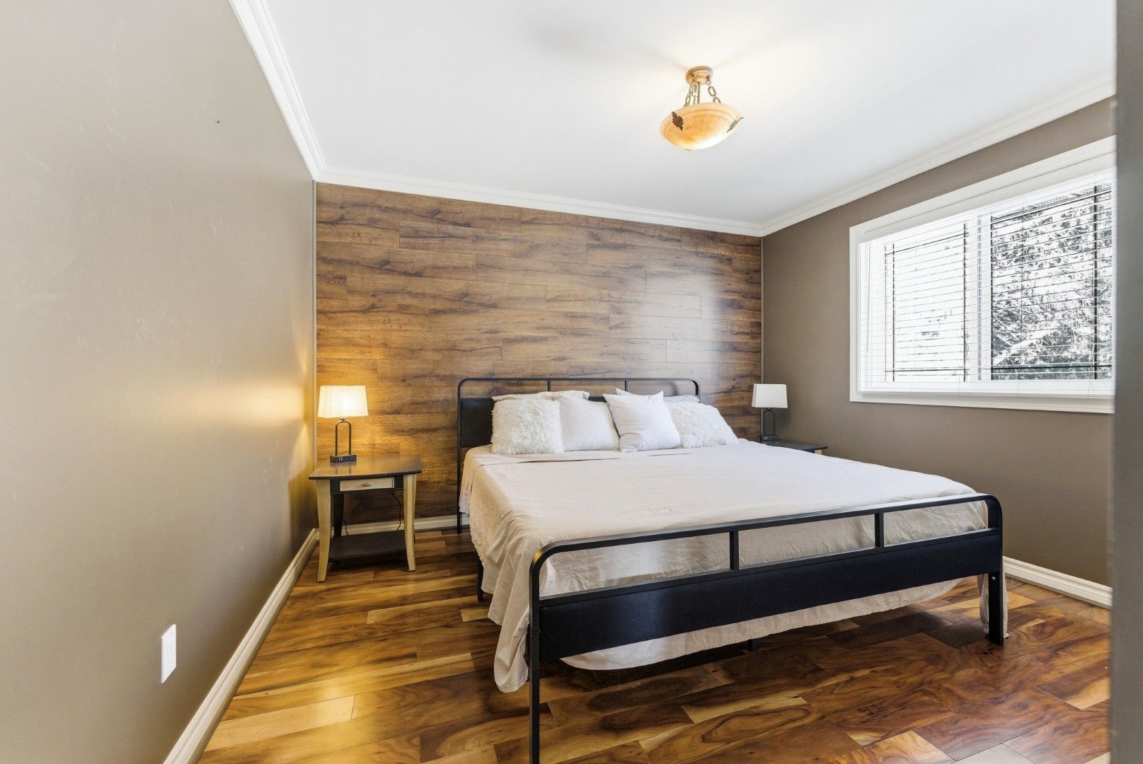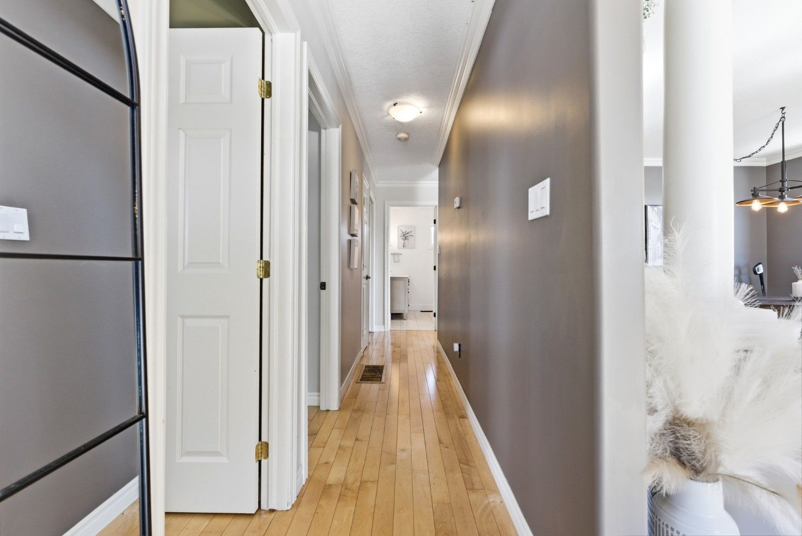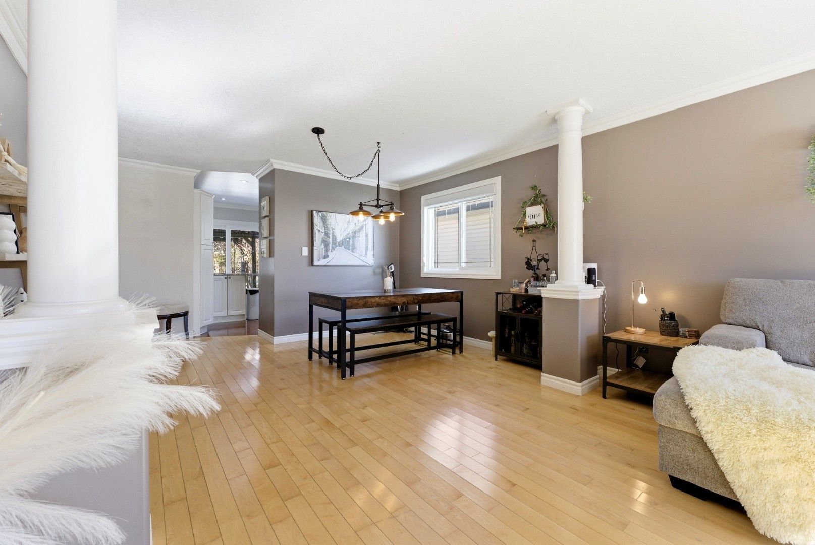 Welcome to 67 bogart crescent in belleville - a beautifully updated brick and stucco raised bungalow offering elegant finishes and versatile living space. Built in 1988, this home blends timeless charm with modern updates. Hardwood flooring spans the main level, complemented by crown moulding in the living room, dining area, kitchen, and primary bedroom. The updated kitchen features stainless steel appliances, granite countertops, and convenient access to the backyard and spacious two-tier deck - perfect for entertaining. Three well-appointed bedrooms complete the main floor. The renovated 4-piece bathroom offers a relaxing soaker tub, walk-in tiled shower with striking black shower panel, and a stylish shiplap vanity wall. The fully finished lower level provides additional living space with a large recreation room featuring laminate flooring, cozy gas fireplace, and pot lights throughout. A versatile fourth bedroom includes laminate flooring, shiplap feature wall, pot lights, and a private 3-piece ensuite with stand-up shower - ideal for guests, teens, or in-law potential. A generous laundry room with sink and storage cabinets adds everyday convenience. Step outside to a fully fenced backyard oasis with a large two-tier deck and charming pond. An attached garage completes this move-in-ready home in a desirable belleville neighbourhood.