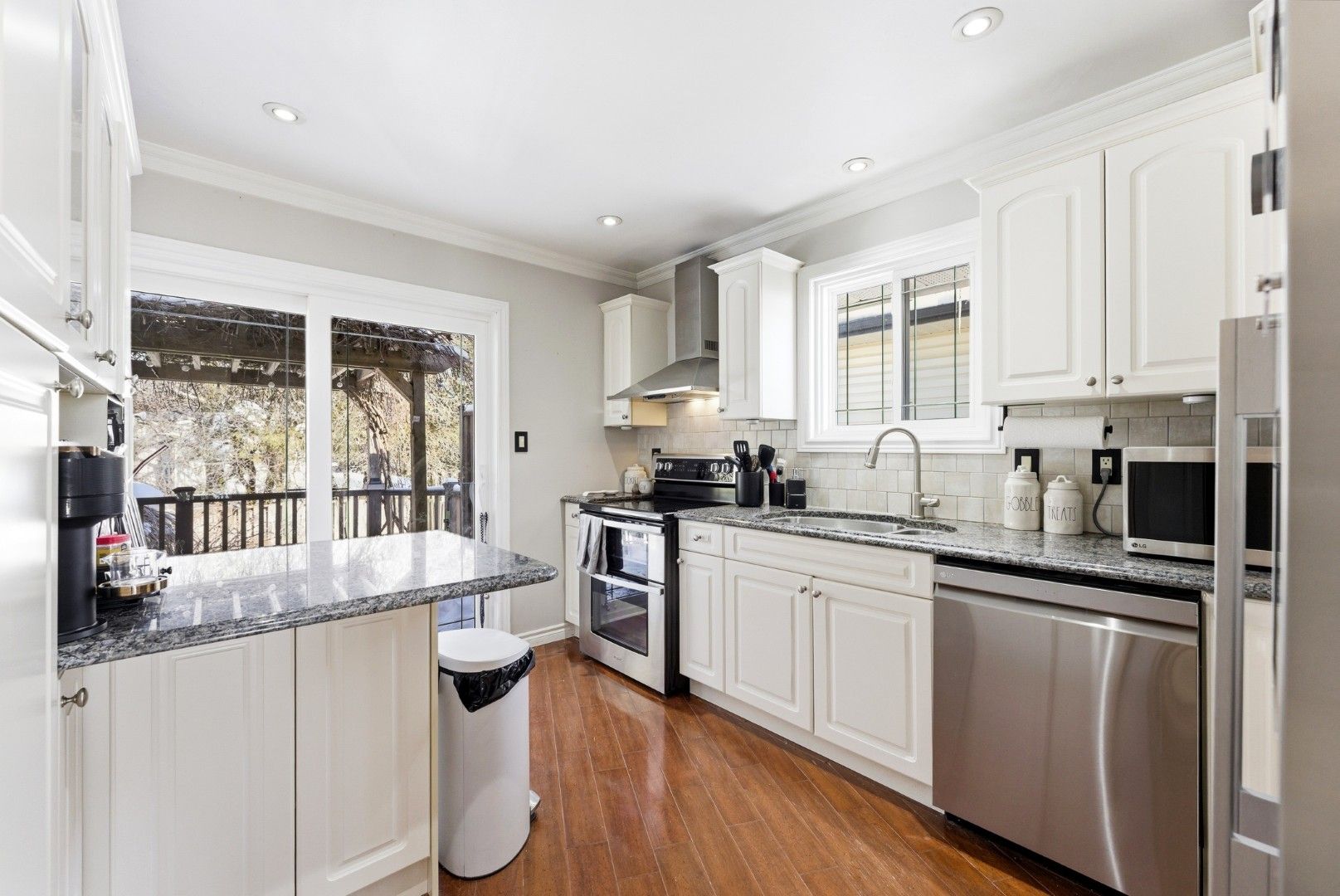 • Modern kitchen with stainless steel appliances and easy deck access.