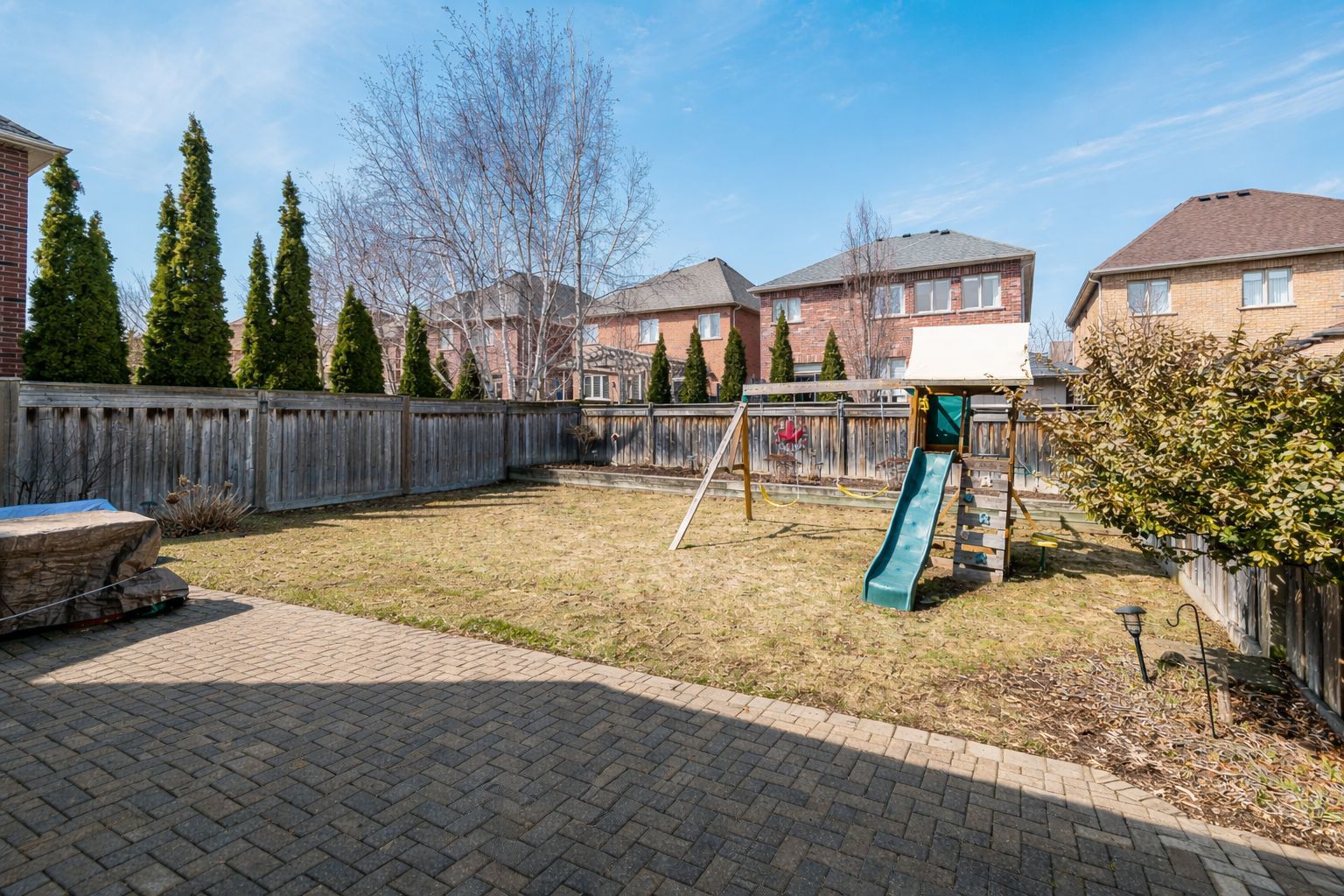 • Private backyard with interlock patio, perfect for gatherings and relaxation.