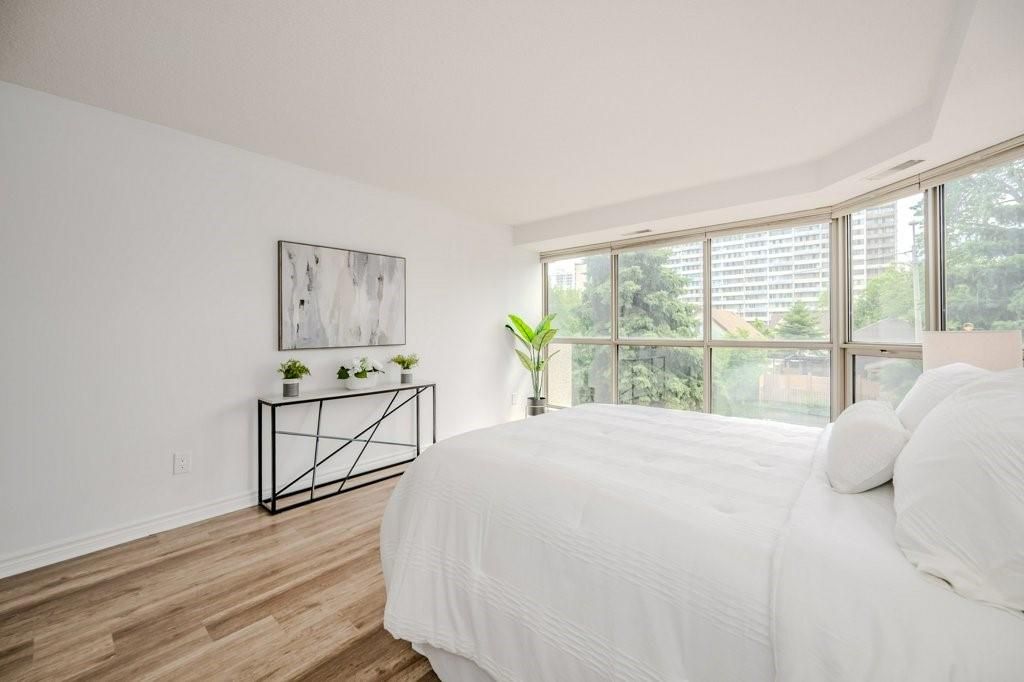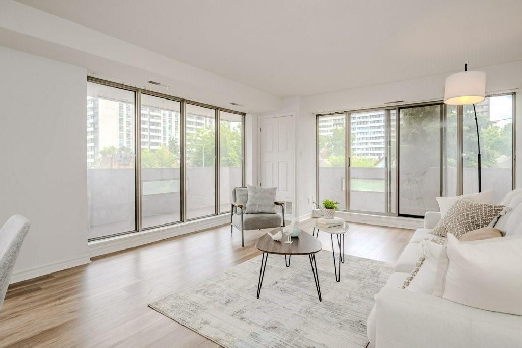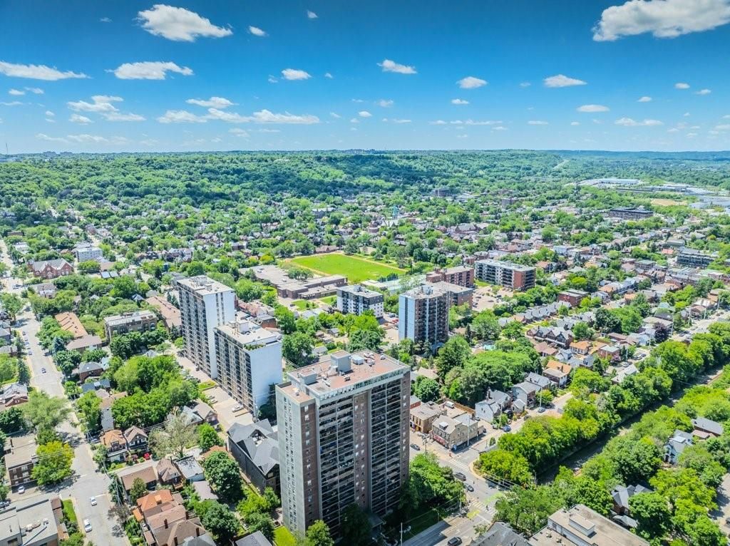 Welcome home to luxury living, hamilton's bently building offers prestige and comfort. This unit has a wraparound balcony offering views to the south east and west, open living - dining area, eat in kitchen with new countertops and updated cabinetry. Large bedrooms, walk-in closets, en suite laundry, freshly updated kitchen, flooring and baths.