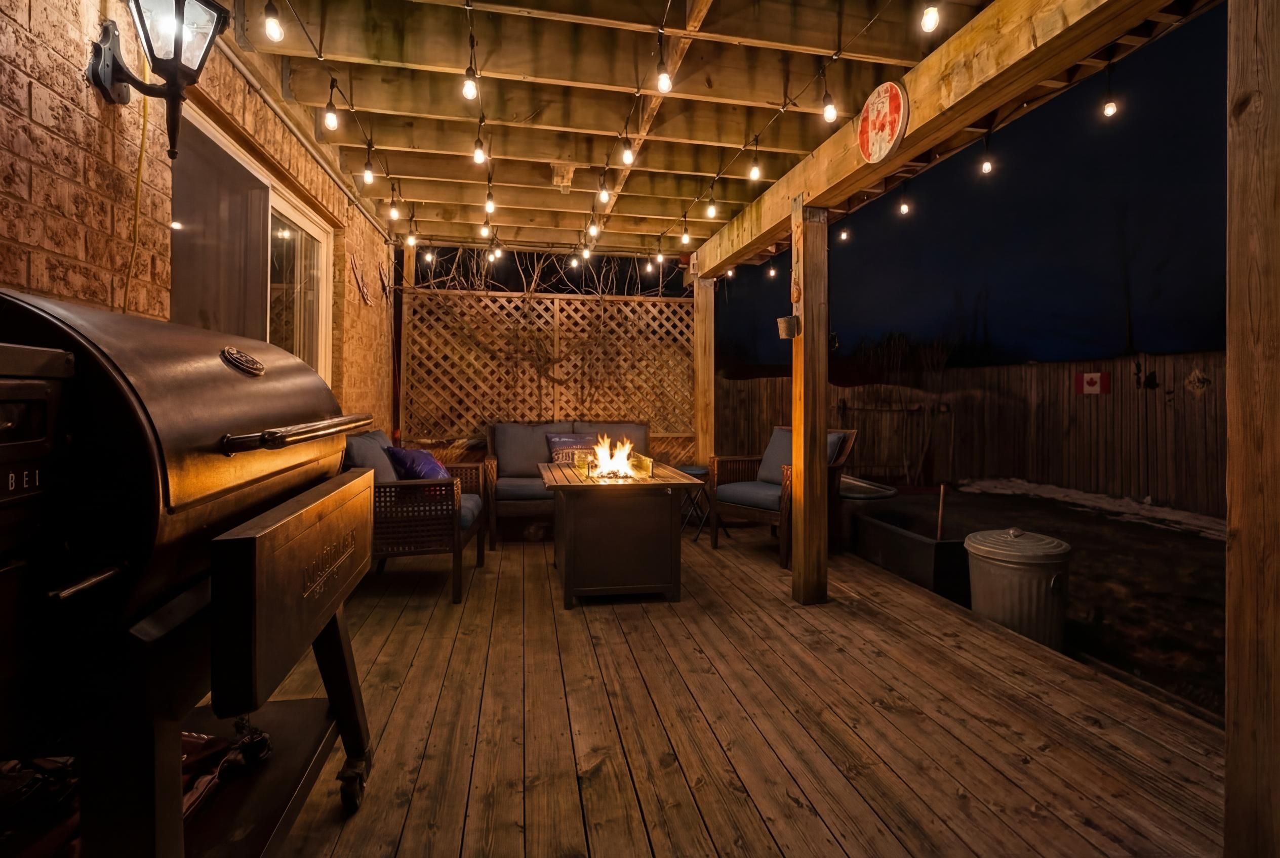 • Elevated upper patio perfect for enjoying the treed backdrop.