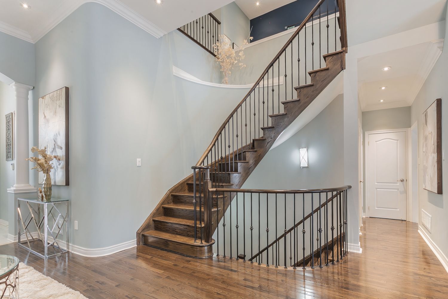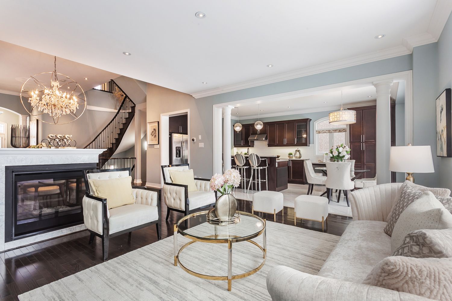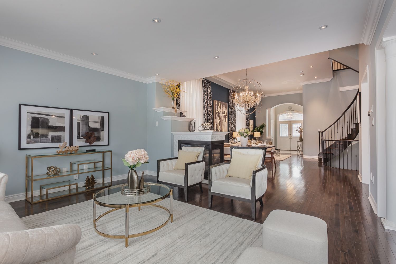 Welcome to 67 chayna crescent, a stunning original-owner family home offering approx. 4,100+ sq ft of total living space (3,084 sq ft above grade) in the heart of prestigious patterson, vaughan. Located on a quiet, child-friendly inner crescent with a desirable south-facing backyard, this home blends comfort, elegance, and functionality. A grand foyer with double doors and soaring 12-ft ceilings leads to elegant living and dining areas featuring smooth ceilings, crown mouldings, pot lights, and a striking chandelier-perfect for entertaining. The main level boasts hardwood floors, solid oak stairs with modern metal spindles, a 3-sided gas fireplace, main-floor laundry, and custom window coverings throughout. The chef's kitchen offers granite countertops, centre island with breakfast bar, built-in stainless steel appliances, and an eat-in area with walk-out to a large double-tier deck with gas bbq line, overlooking a fully fenced backyard. Upstairs features 4 oversized bedrooms with 9-ft ceilings, a versatile loft, and walk-in closets for all bedrooms. Each room includes an ensuite or semi-ensuite bath. The luxurious primary suite showcases 12-ft ceilings, his & hers walk-in closets, and a spa-inspired 5-pc ensuite with double vanity, glass shower with rain head and body spray jets, and a soaker tub. One bedroom also offers a private walk-out balcony. The builder-finished basement includes a spacious rec area, guest or nanny suite, 4-pc bath, and large cold room. Additional highlights include new roof shingles (2022), landscaped front yard, and expansive deck. Ideally located near parks, schools, transit, go station, highways, cortellucci vaughan hospital, carrville community centre, eagle's nest golf course, and top-ranked schools including our lady queen of the world french catholic school and stephen lewis ss. A rare opportunity offering space, style, and an unbeatable location.