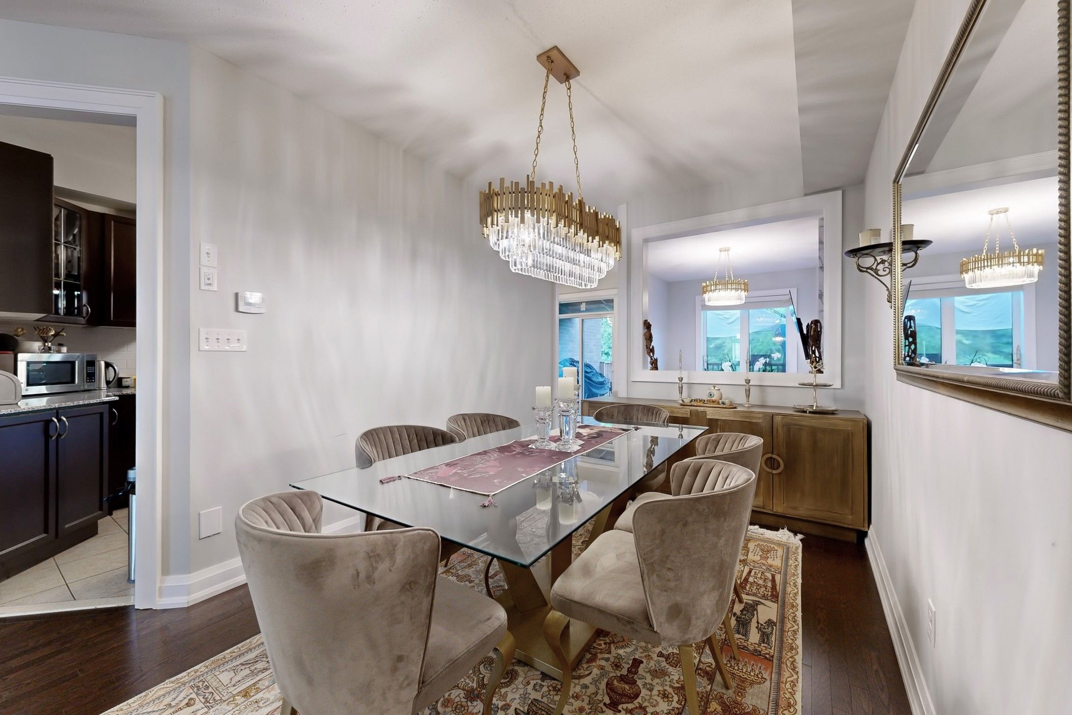 Gorgeous 3-bedroom + den townhouse with over 1,840 sq. Ft. Of living space! Located in a quiet and family-friendly court, this beautifully upgraded home features 9 ft ceilings, a functional and open layout, and hardwood flooring on the main level. The modern kitchen is finished with top-quality materials and appliances. Enjoy the income potential from the finished walk-out basement, complete with a full kitchen and second laundry-perfect for an in-law suite or rental opportunity. The property backs onto a peaceful ravine, offering privacy and natural views. Conveniently located near a french immersion school, top-ranked catholic high school, and just steps from the yrt bus stop.