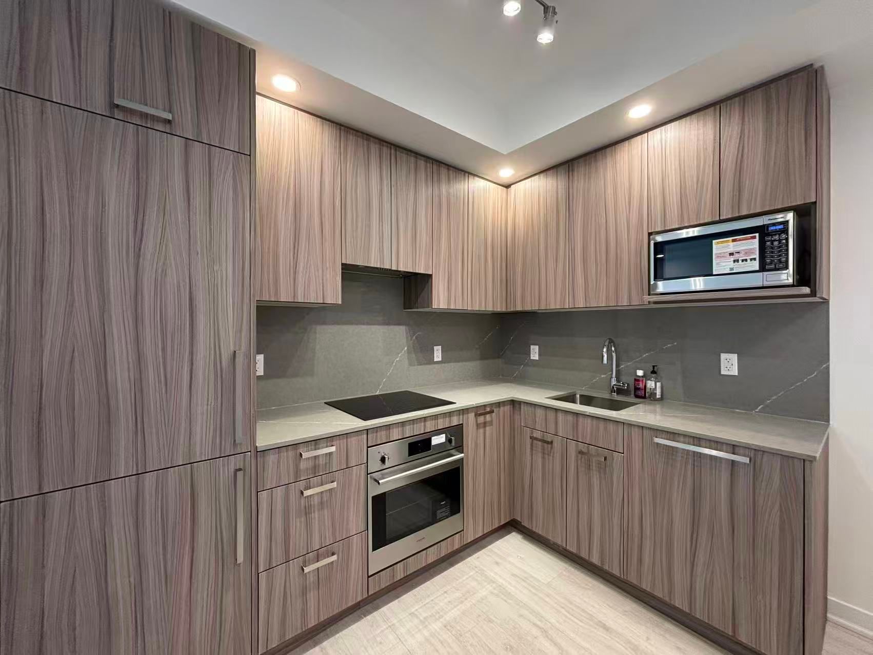 • Bright and modern townhouse with a full-size kitchen and stainless steel appliances.