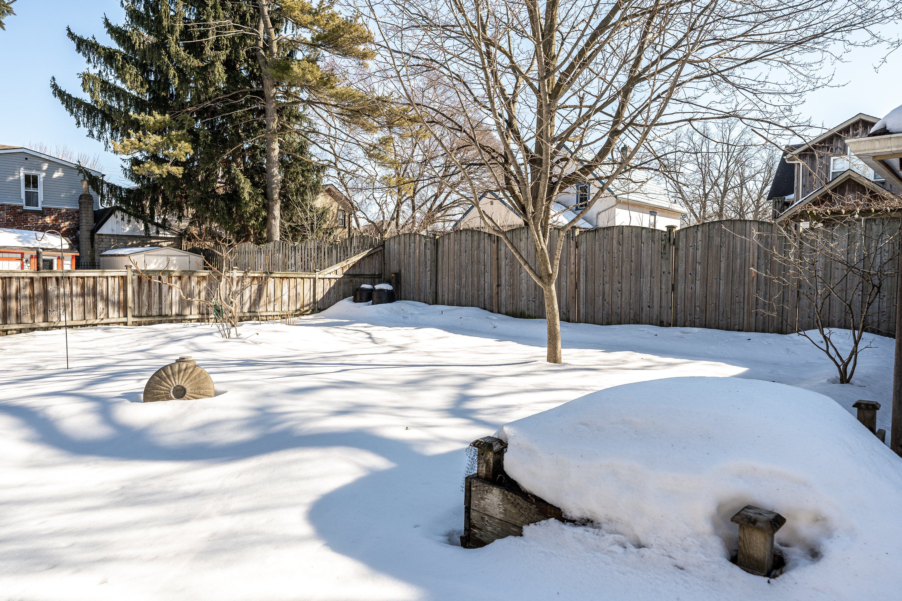 • Spacious side and rear yard with landscaping and raised gardens.