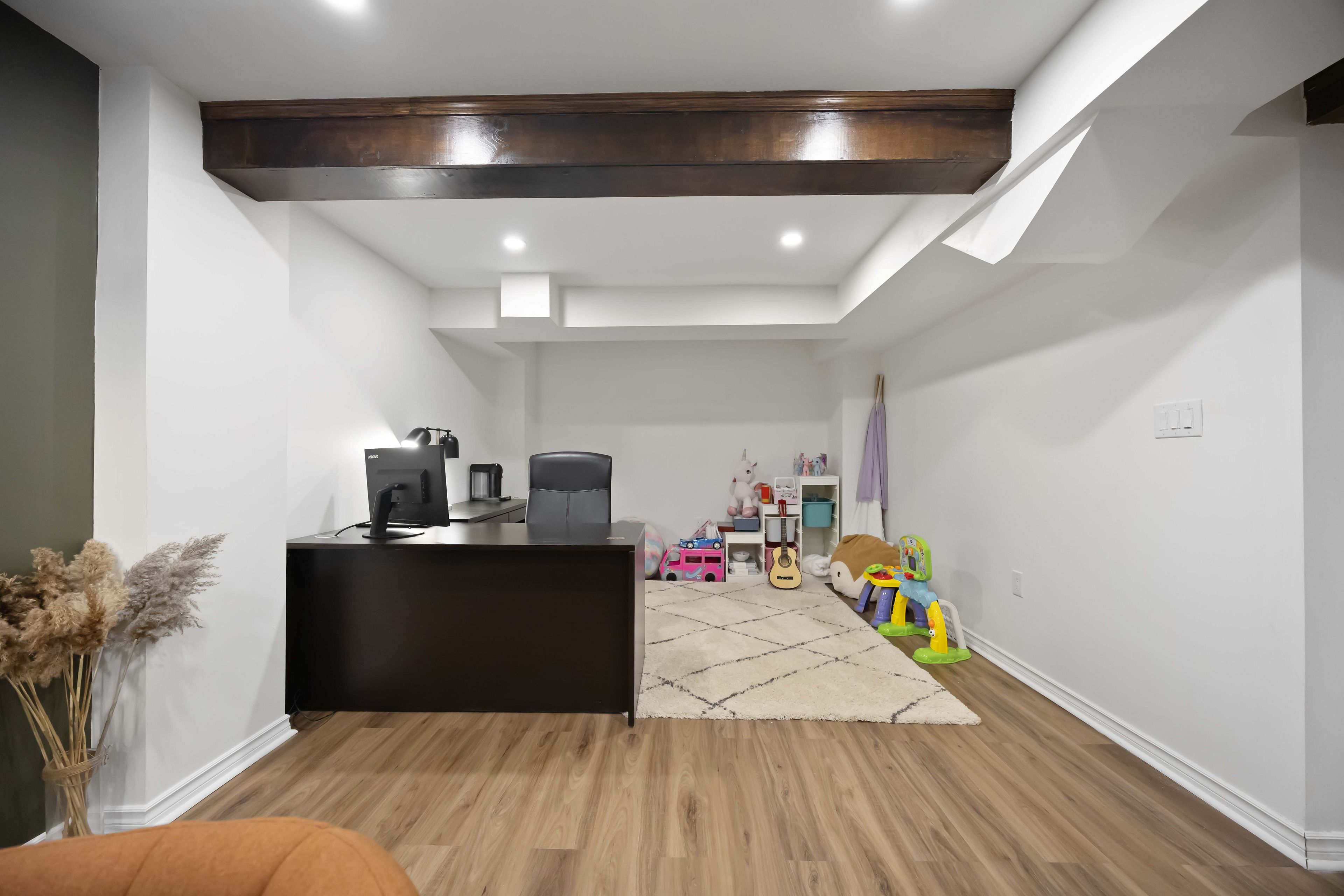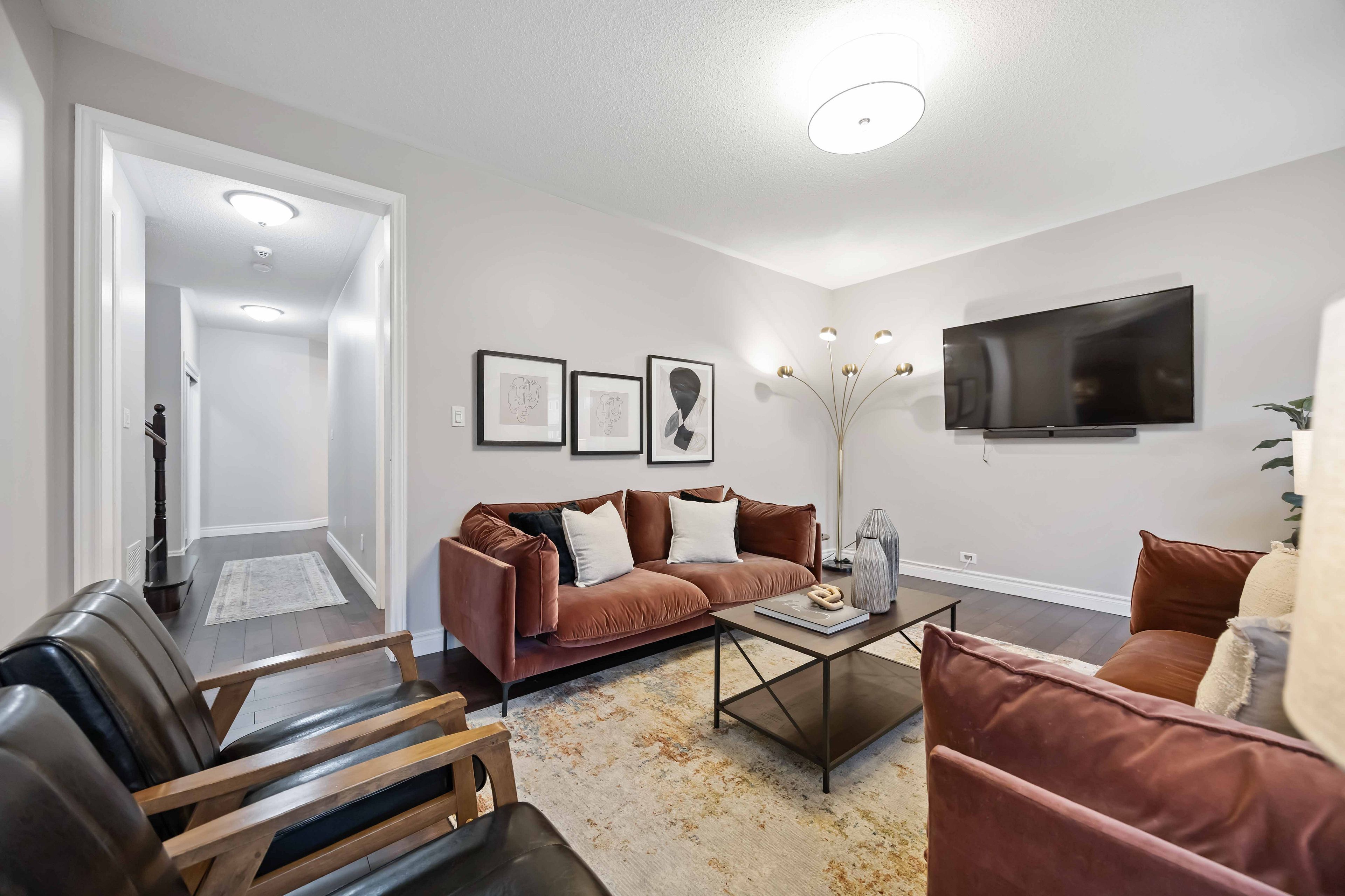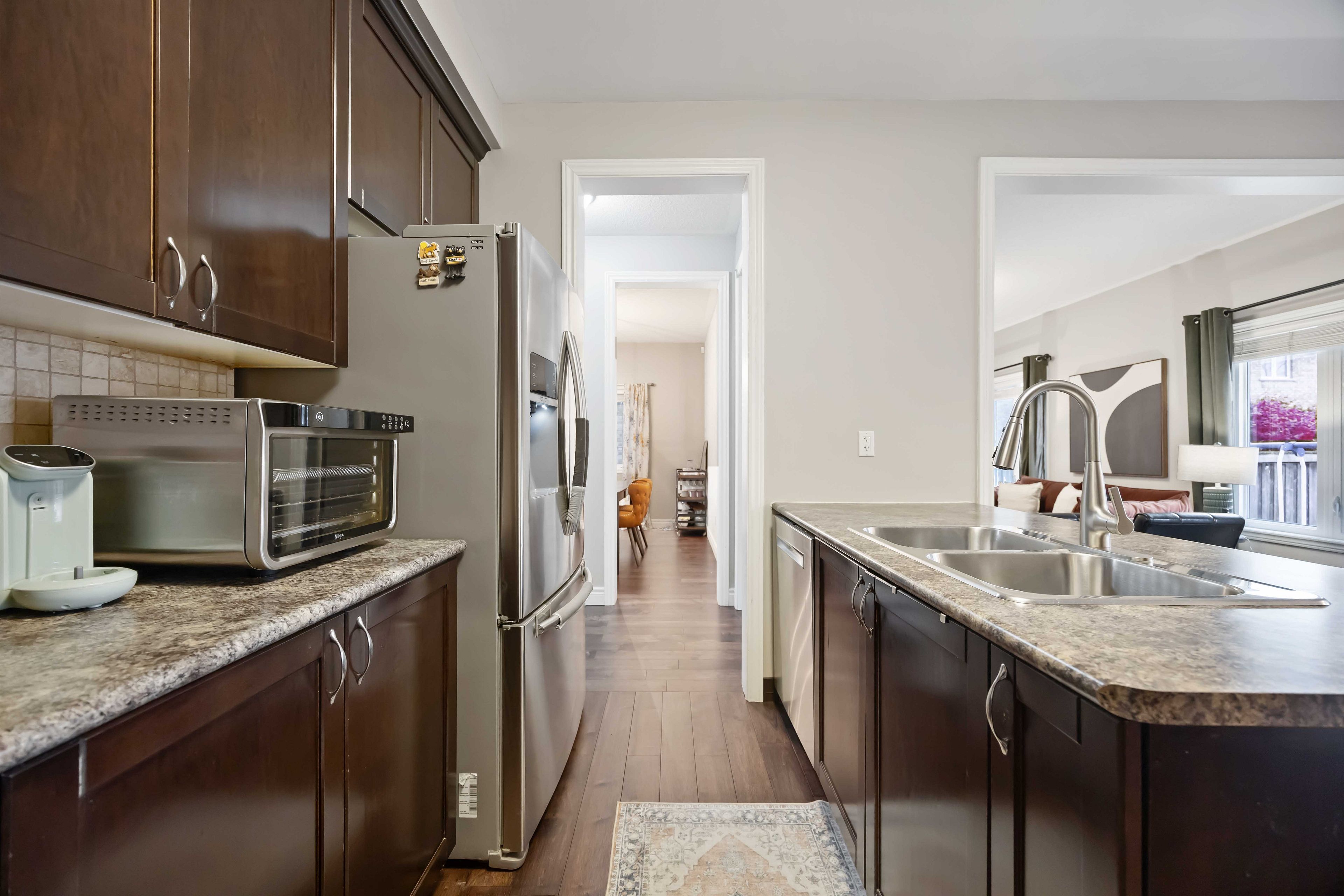 Very sought after location for this stunning 4 bed 4 bath home, updated throughout, with finished basement, and landscaped yard. This quiet and peaceful neighbourhood is family friendly, with nearby schools, parks, transit and shopping. Plenty of parking space with the attached 2 car garage with home entry, and a double wide driveway with interlock path to the large porch. Inside you'll find 9 foot ceilings and hardwood floors on the main level, boasting open concept primary rooms, a spacious living/dining area with large windows, sun filled family room and gourmet kitchen with stainless steel appliances, including gas range, and a breakfast area with walk out to the interlock patio in the private and fully fenced yard. The upper doesn't disappoint with 4 oversized bedrooms, including a massive primary bed with accent wall, 4 piece ensuite and large walk in closet with built in organizers. Fully finished lower level with spacious common area and recreation room with pot lights and roughed in for linear fireplace. An additional area could be easily enclosed for privacy, an office or a 5th bedroom. Also, a newly built 3 pc bath with walk in shower and vinyl plank flooring. Look no further, this one has everything you've been looking for!