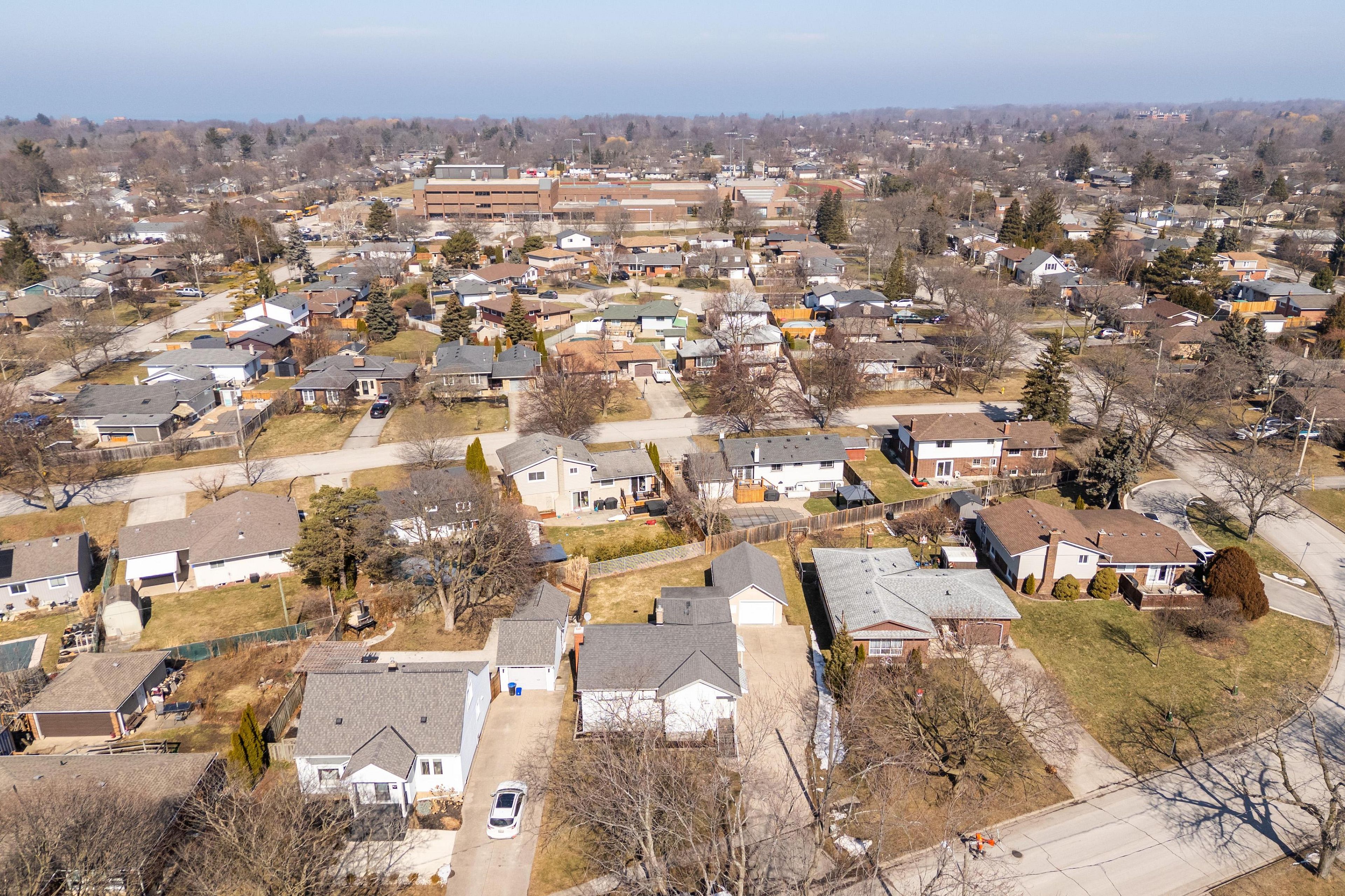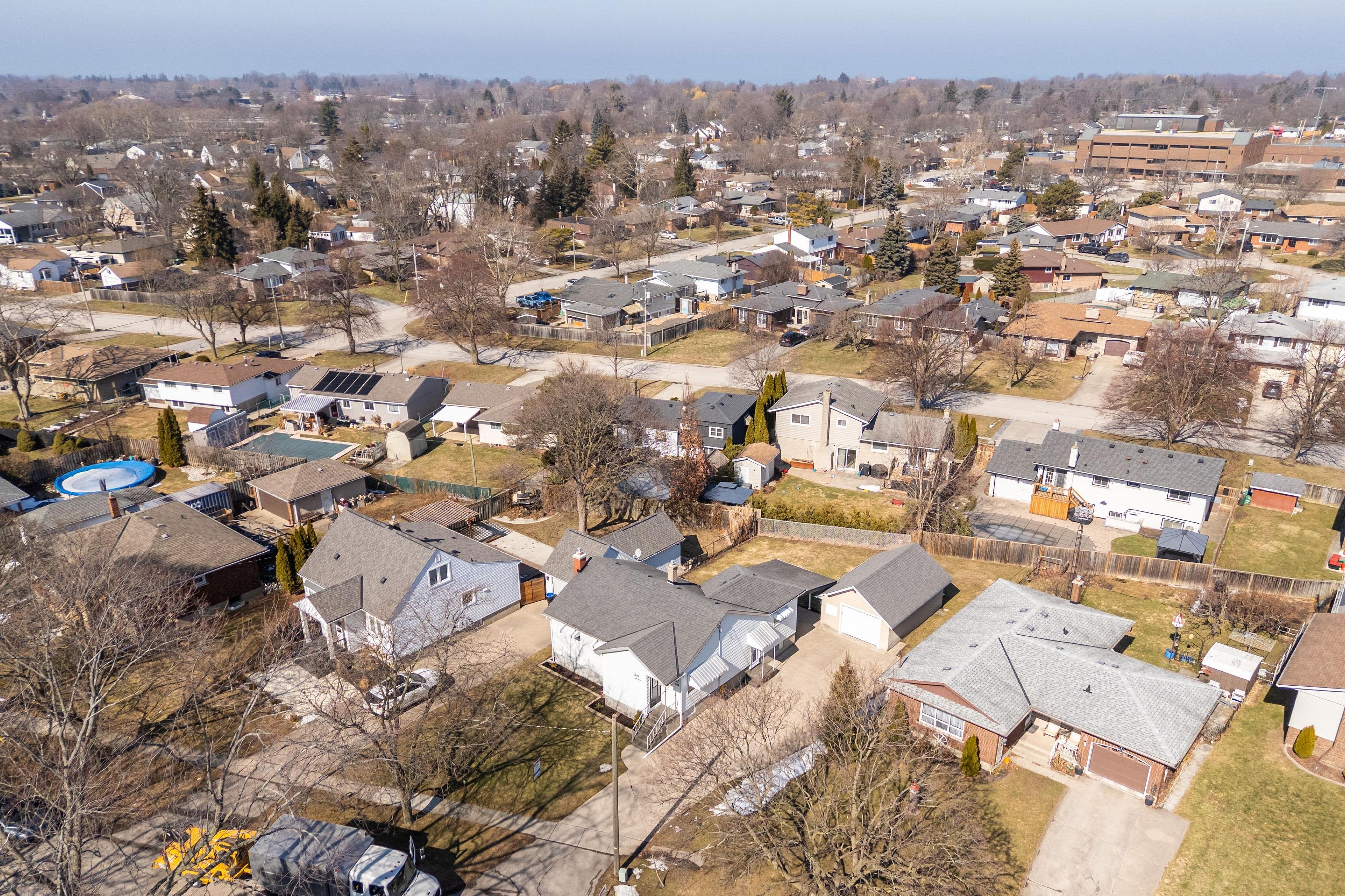 Move-in ready and beautifully renovated, this 1-storey detached home is located in the highly desirable vine/linwell neighbourhood of st. Catharines' north end. The exterior offers excellent curb appeal with aluminum siding, 40-year rated asphalt shingles, window and door awnings, and new stamped concrete steps at both the front and covered side entrance. A double concrete driveway wraps around to a partially covered backyard patio, perfect for outdoor living. The 1. 5-car detached stucco garage features a brand-new insulated automatic garage door with wi-fi-enabled opener, along with attic storage. The grassy backyard is fenced along neighbouring properties. Inside, the home has been refreshed with new paint, lighting, ceiling fans, and all-new interior doors, trim, and hardware. The warmth of original hardwood floors has been preserved in the living room and all three bedrooms. A welcoming front entry with new flooring and a closet opens to a bright living space and a fully renovated kitchen/dining area featuring white cabinetry with under-cabinet led lighting, stainless steel hardware, quartz countertops, polished porcelain mosaic tile backsplash, stainless steel double sink and hood vent, and new flooring. No appliances included. The main floor bathroom has also been completely renovated with new flooring, vanity, toilet, and tub/shower combination. The partially finished basement includes a cozy rec room with new carpet, fresh paint, and a gas fireplace with brick surround, plus a new 2-piece bathroom. The unfinished portion offers excellent storage, a laundry room with washer/dryer, utility sink, and a workshop area. Additional highlights include a new owned furnace, new central air (january 2025), and ecobee smart thermostat. See attached home feature sheet in documents for more updates. This is a fantastic opportunity to own a turnkey home in a prime north-end location.