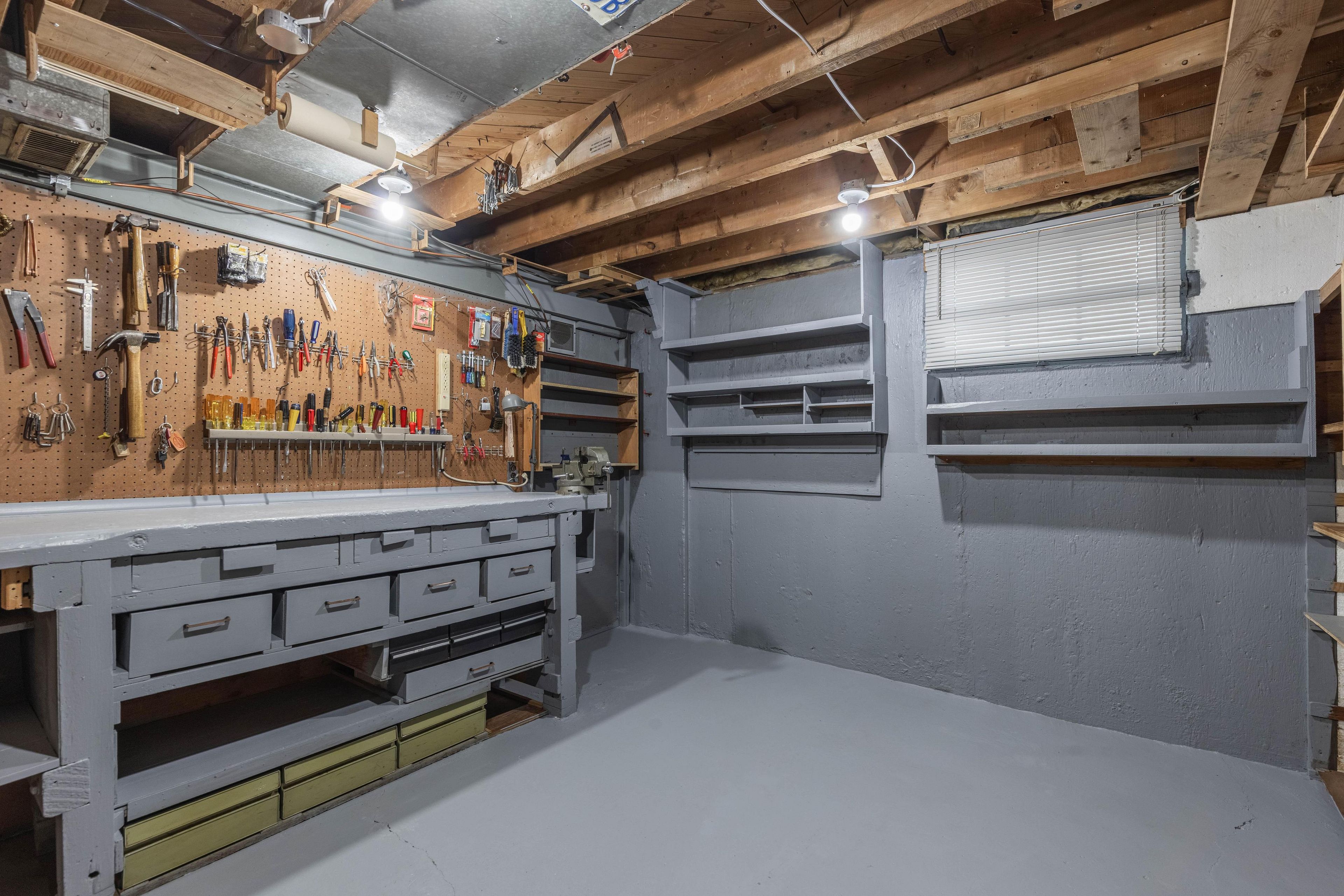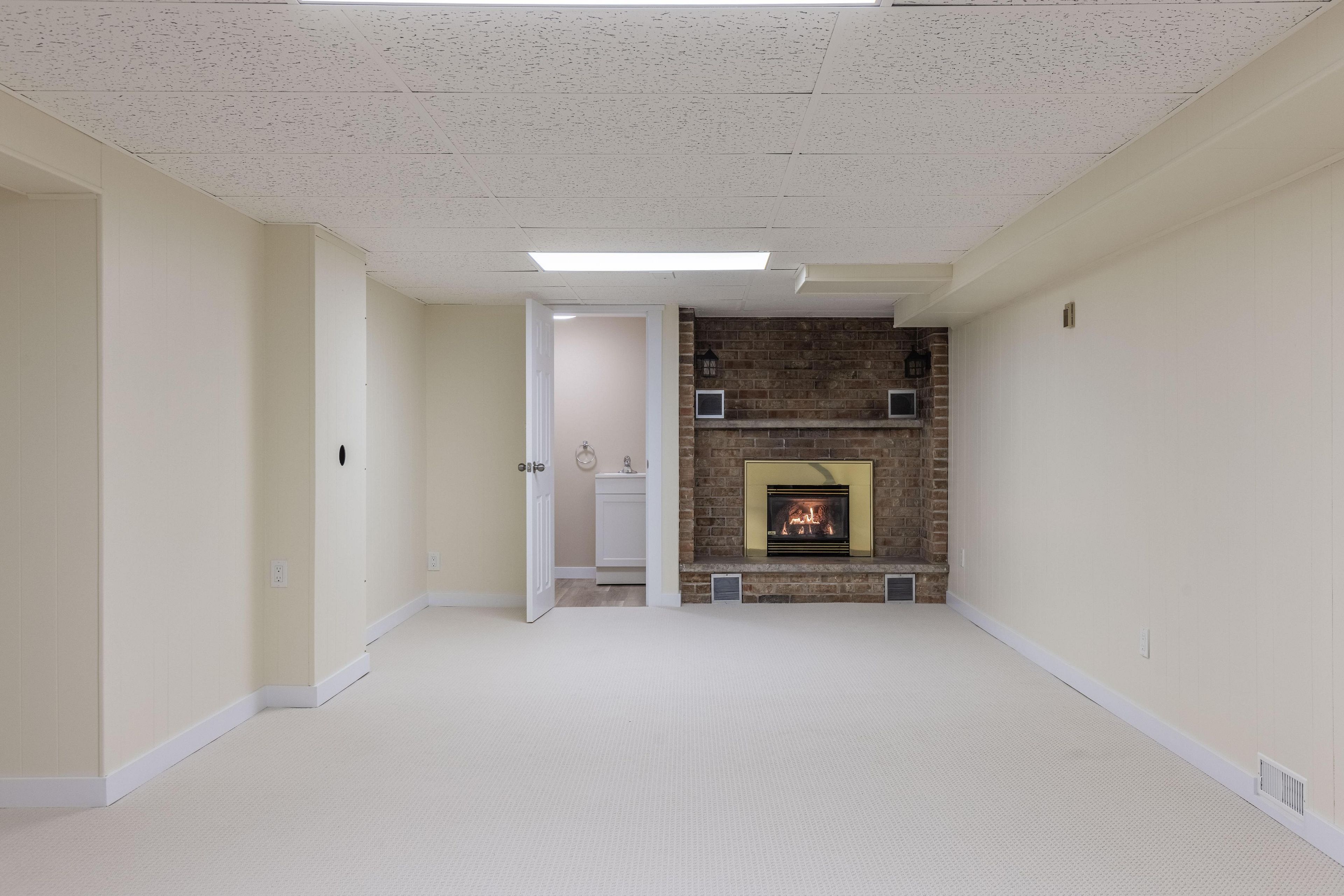 • Cozy rec room in the basement with a gas fireplace for relaxation.