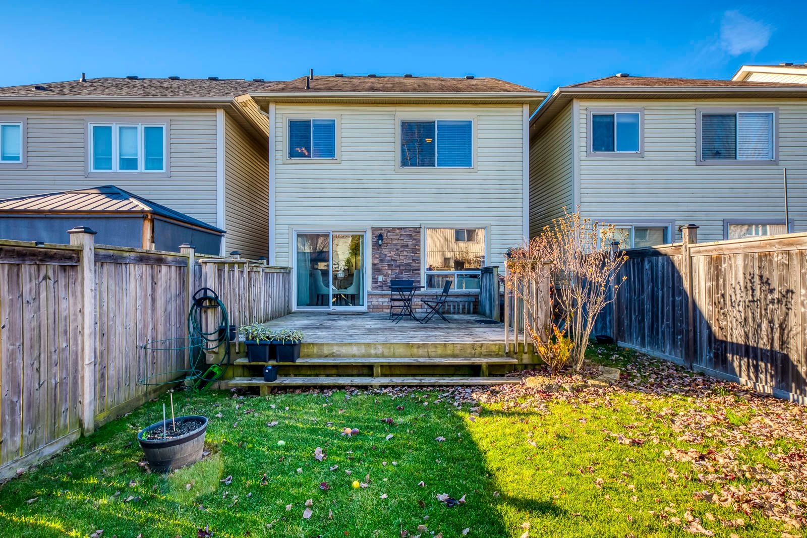 Discover family-friendly bliss in east waterdown! Step into 67 golden iris, a charming two-storey link home boasting more than 2,100 square feet of inviting living space, three spacious bedrooms, and three-and-a-half bathrooms, all complemented by stunning curb appeal. Nestled on a serene crescent, it's just moments from cranberry hill park, top-rated schools, and everyday essentials. Freshly painted from top to bottom, the interior showcases an airy open-concept design with thoughtfully crafted areas. Host memorable gatherings in the generous dining room, while the warm family room flows seamlessly into the eat-in kitchen. Here, you'll love the extended white cabinetry featuring a bespoke coffee station and full-height storage, paired with sleek granite counters, premium black maytag and whirlpool appliances, and an elegant glass backsplash. Head upstairs to find three bedrooms with newly installed flooring (2024) and a convenient stackable washer-dryer setup. The luxurious primary bedroom offers a walk-in closet and a private ensuite bath complete with a relaxing soaker tub and glass-enclosed shower. A full four-piece bathroom rounds out this floor. The fully finished basement expands your options with a versatile rec room, another full bathroom, and ample storage. Step through sliding doors to the vast backyard oasis, highlighted by a spacious deck ideal for outdoor entertaining, lush gardens, and plenty of room for a potential swim spa. Outside, enjoy driveway parking for two vehicles plus an attached single garage. Located in the sought-after catchment for mary hopkins elementary, flamborough centre school, and waterdown district high school.