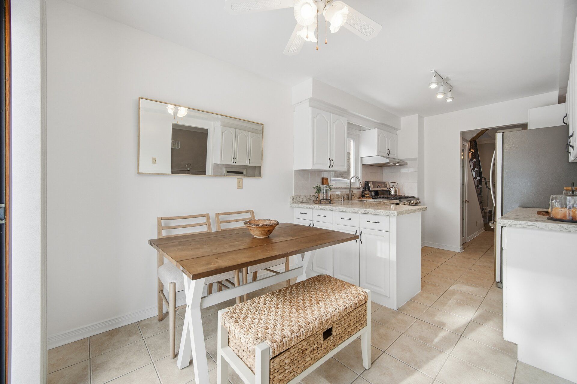 • Upgraded kitchen with quartz countertops and stainless appliances.