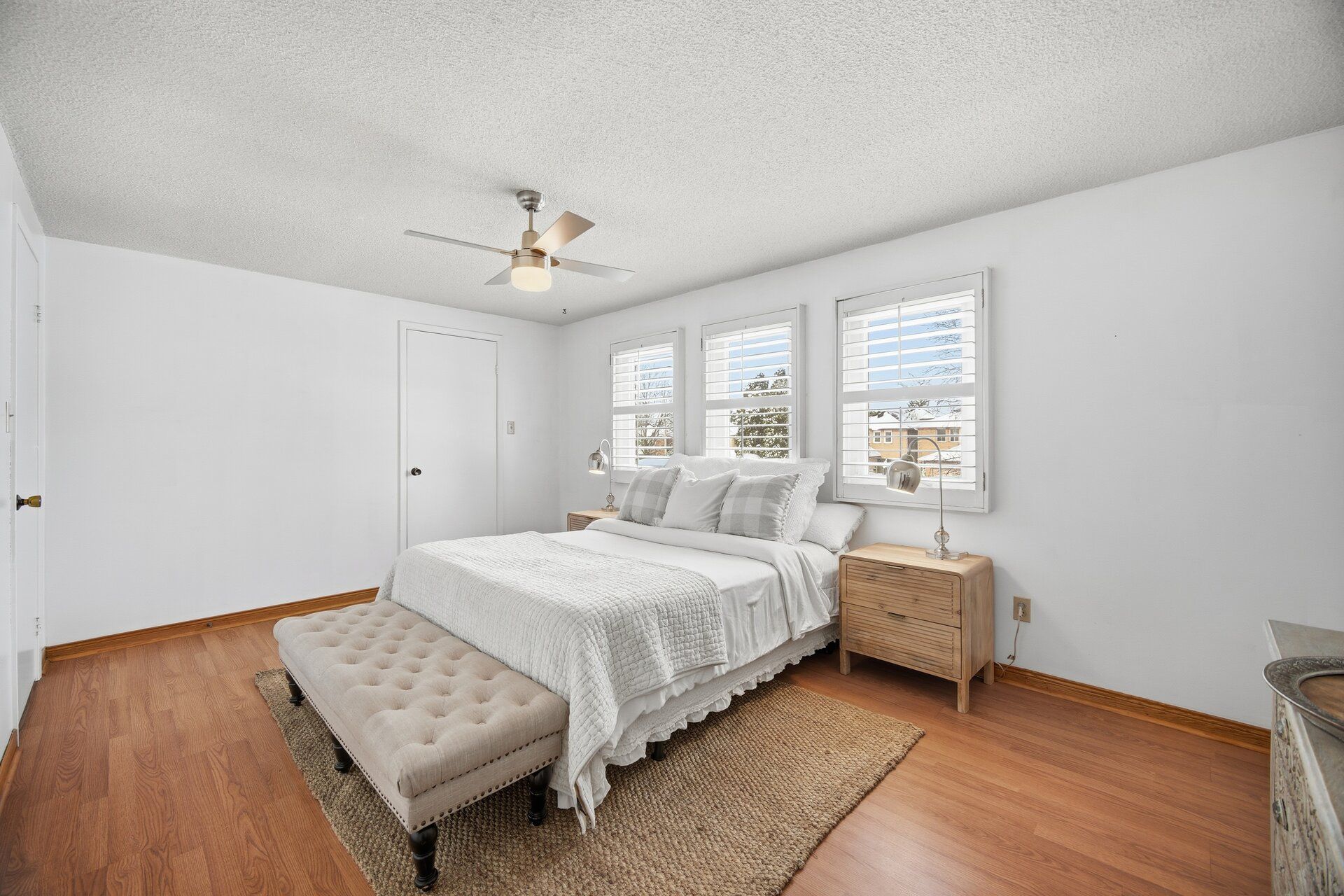 • Spacious primary bedroom featuring large windows and a walk-in closet.
