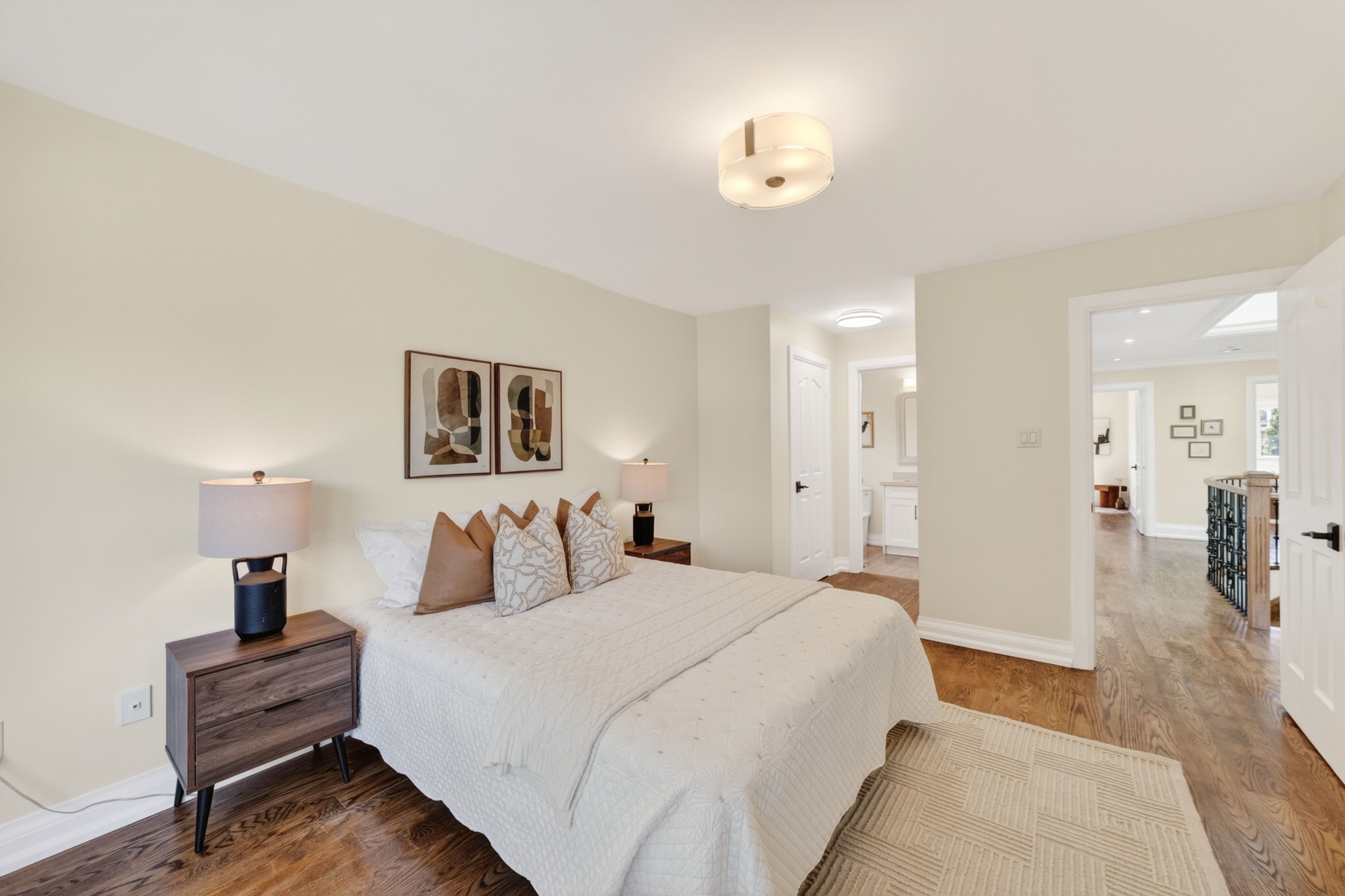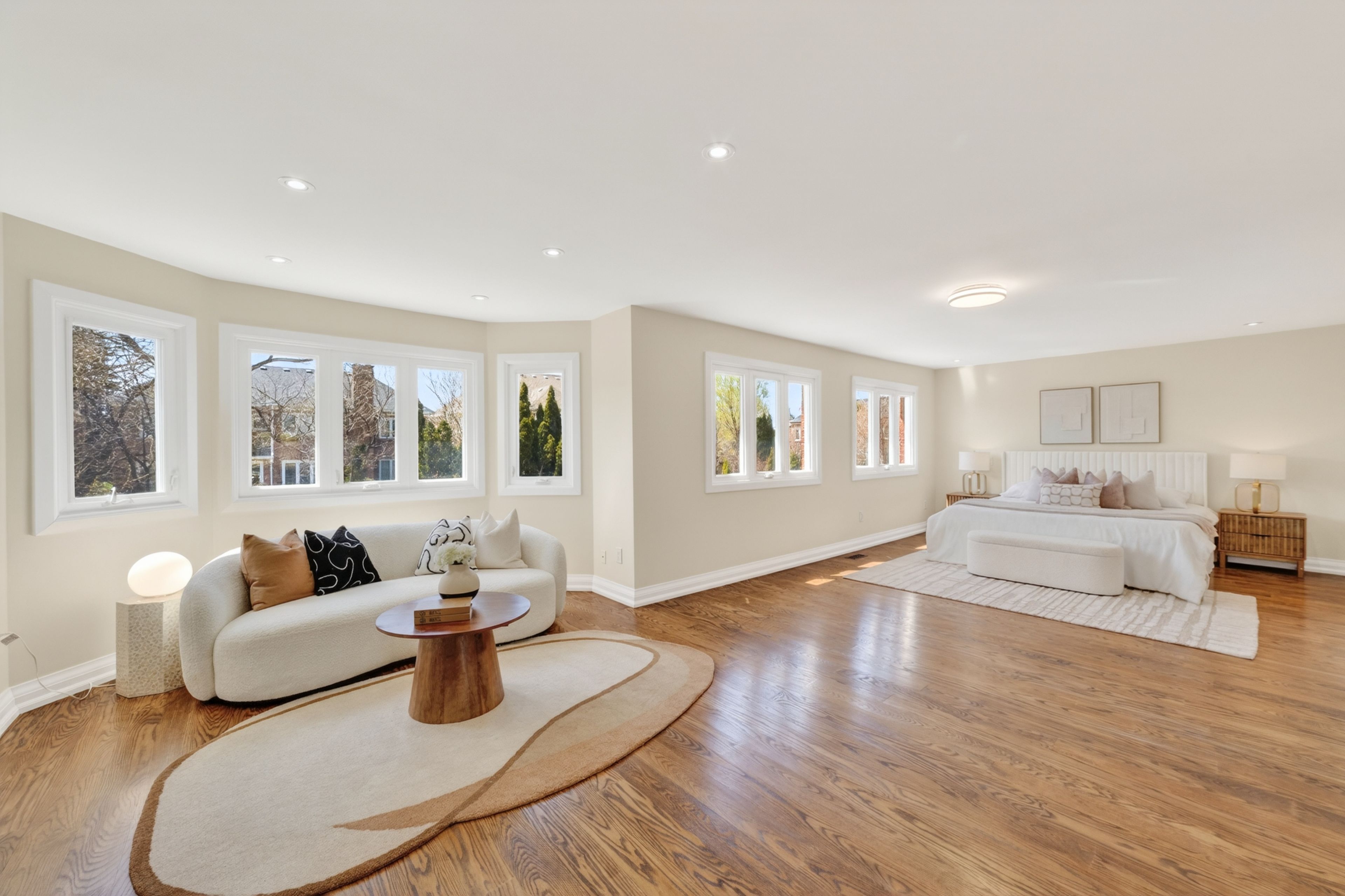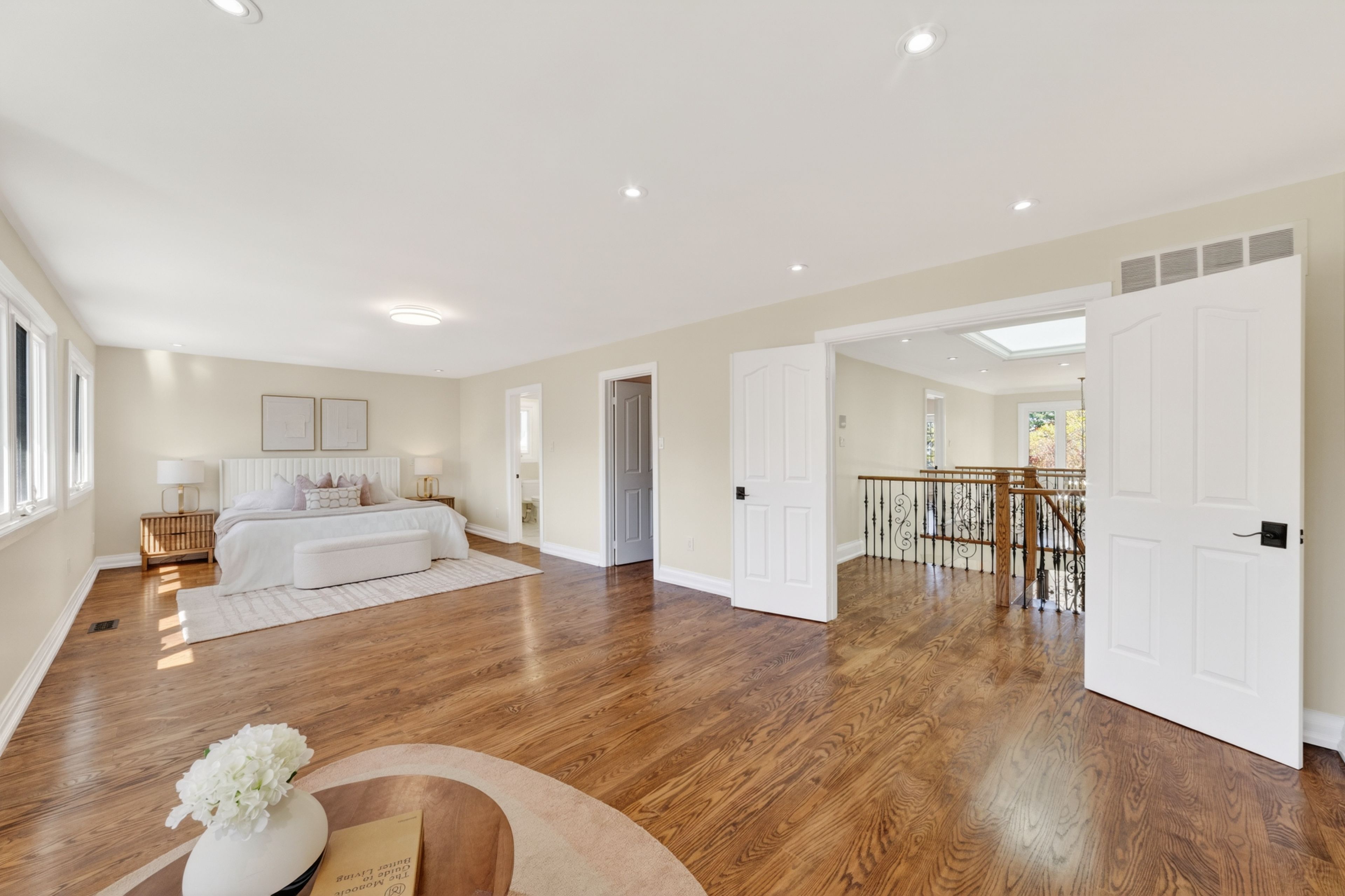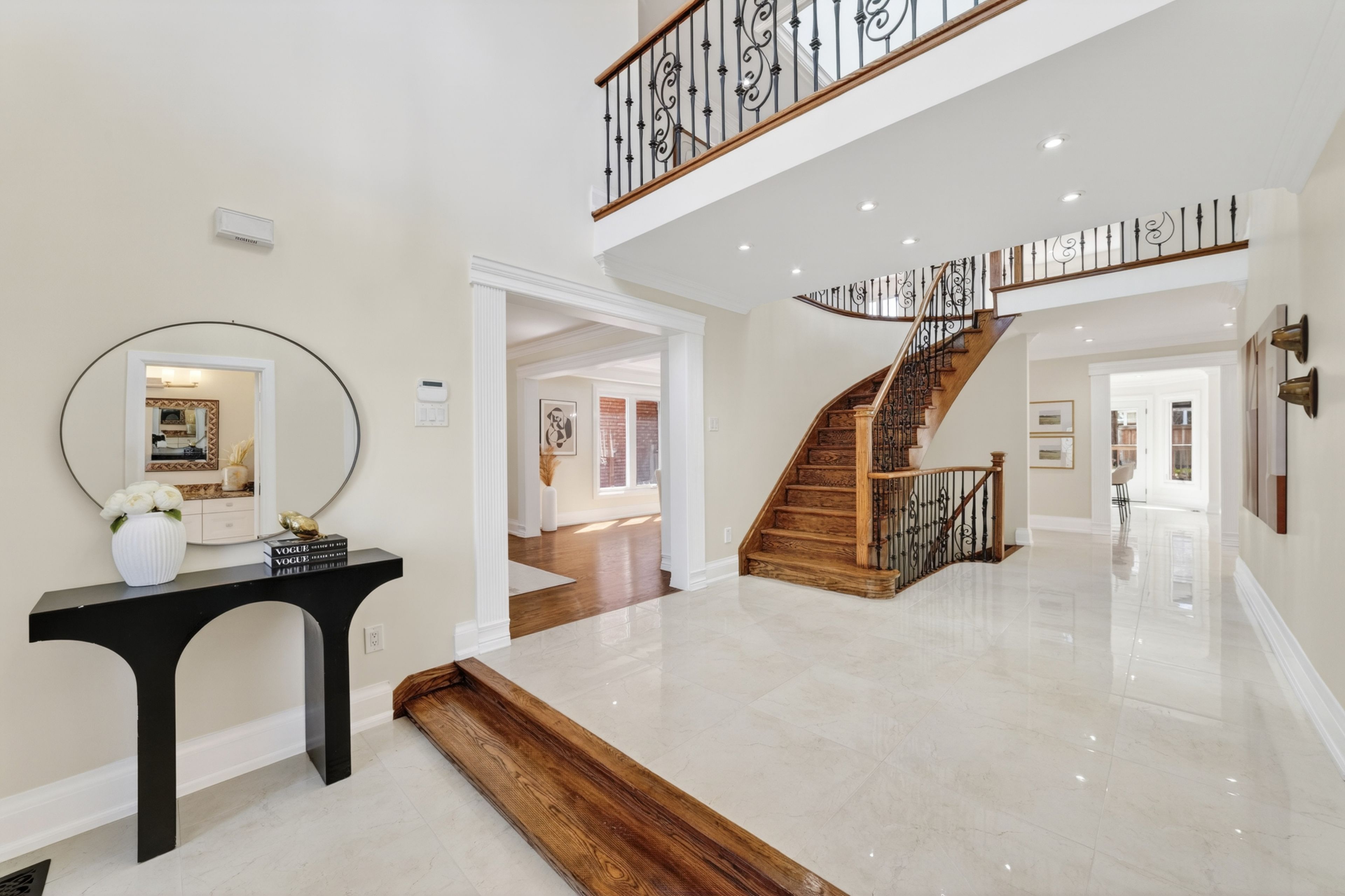 Immaculate & move-in ready executive home in prestigious bayview hill! Situated on a premium nearly 60 ft frontage lot on a quiet street, this beautifully renovated and meticulously maintained classic residence offers elegant living in one of richmond hill's most sought-after communities with approx. 5500 sq. Ft. Of total living space. Featuring 4 spacious bedrooms, 2 ensuites, and 5 bathrooms, this home also offers a ground-floor office and two additional bedrooms in the finished basement, all within a bright and highly functional layout and true turnkey condition. Enjoy high-quality site-finished hardwood flooring throughout, a modern granite kitchen with commercial-grade thermador appliances, updated bathrooms including heated flooring in the primary ensuite, majestic cast-iron double front doors with side panels, wrought-iron staircase, and an impressive 18' grand foyer with soaring skylight. Elegant sunken family room with a stunning stone fireplace creates the perfect gathering space, while the ground-floor office is ideal for working from home. Exceptionally well maintained with a clean, modern, and move-in-ready interior. The finished basement includes a recreation room, two bedrooms, and a full bathroom-ideal for extended family or guests. Sunny private backyard with 2022 interlocking, fully interlocked front yard, and roof updated in 2021. Located in the luxury bayview hill community, walking distance to bayview secondary school, parks, plazas, shopping, walmart, and all amenities. A rare opportunity to own a fully renovated executive family home in an unbeatable location.