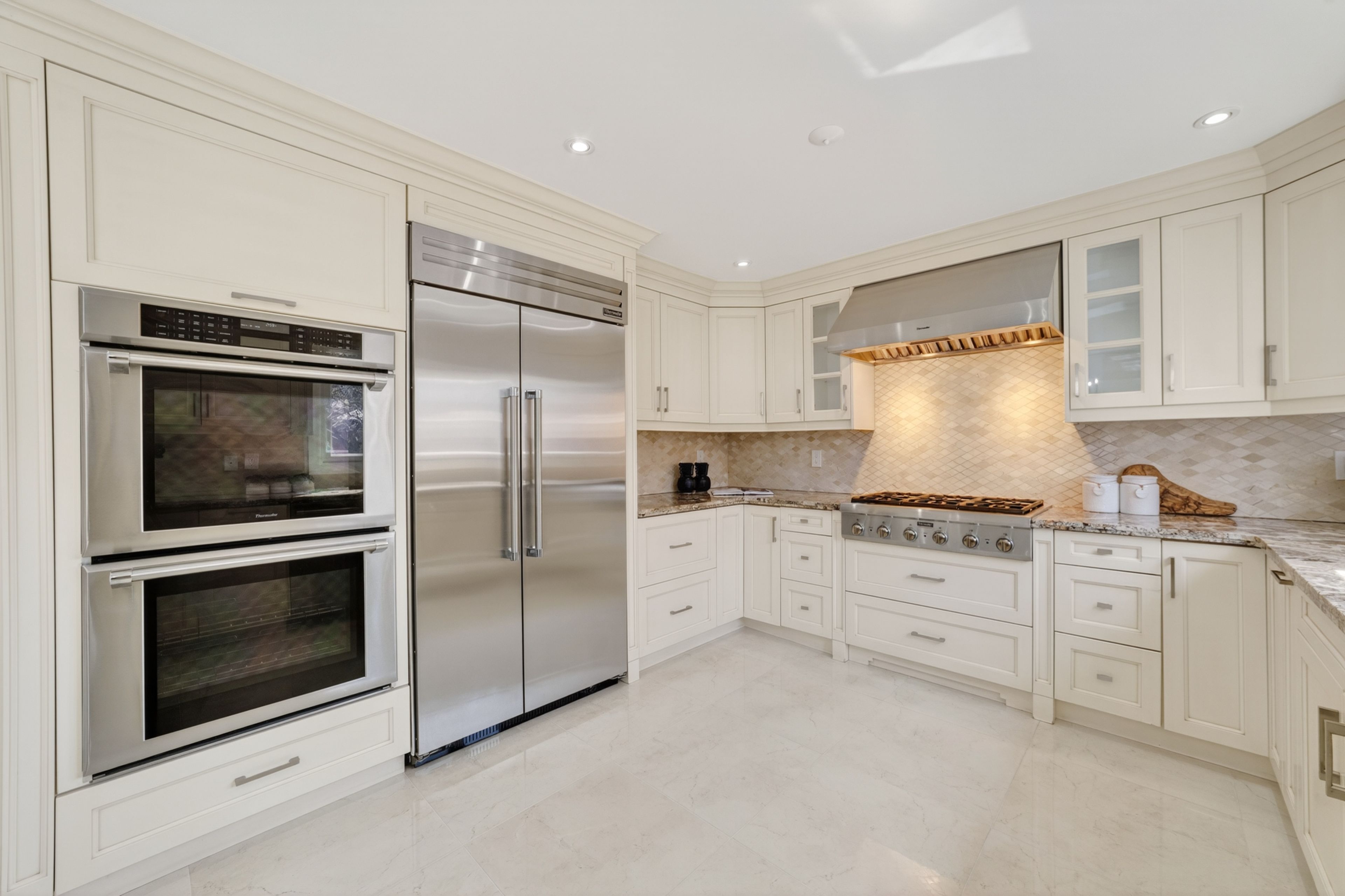 • Modern kitchen features commercial-grade Thermador appliances for cooking enthusiasts.