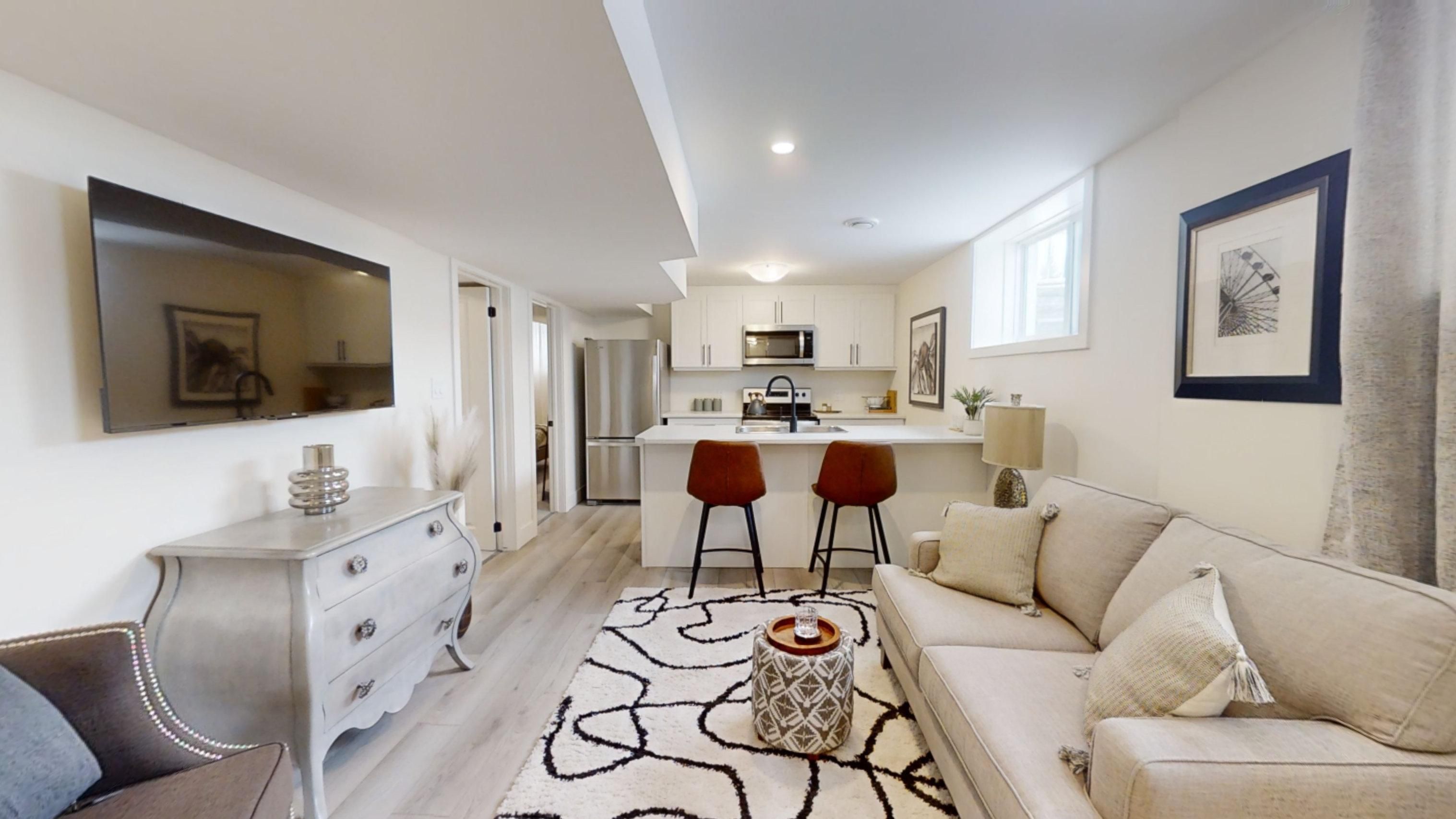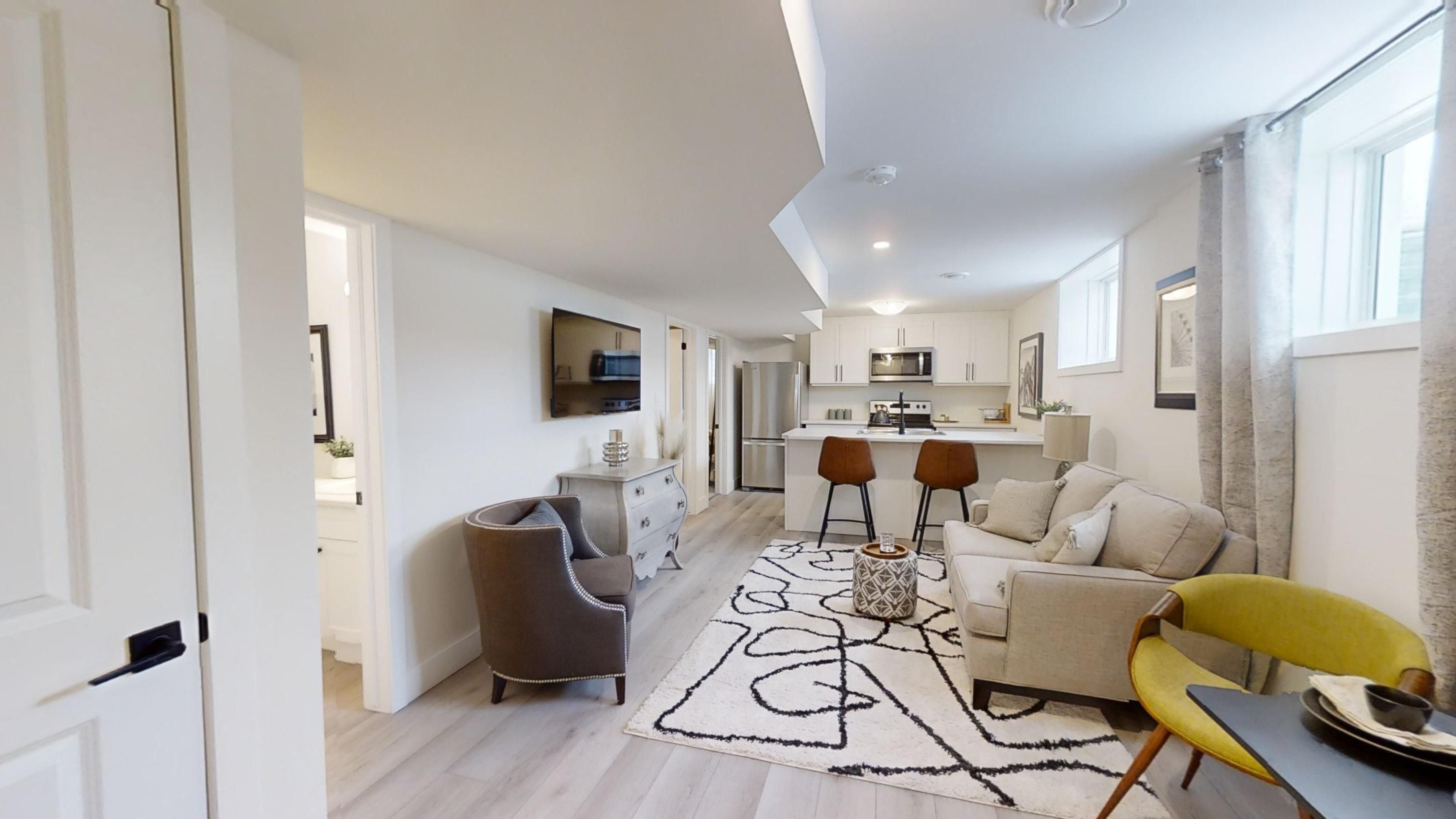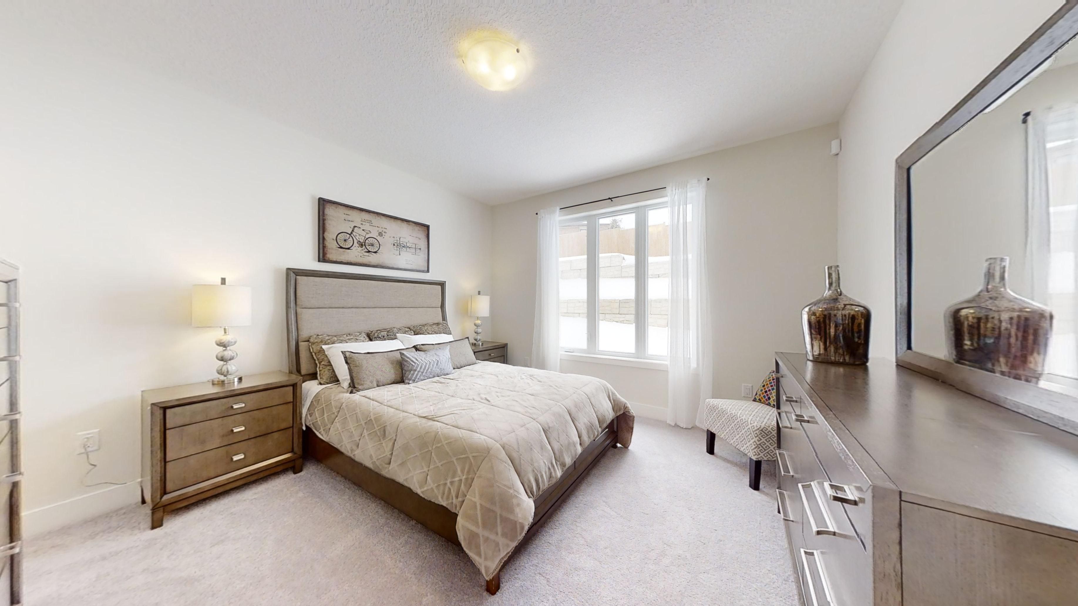 Discover your path to ownership ! Introducing the coach house flex design! This innovative property offers the versatility of two homes in one, making it perfect for a variety of living arrangements including large families, multigenerational households, or as a smart mortgage helper with the option to rent both units separately. Featuring a generous 2764 sq ft of finished living space, this home truly has it all. The main house boasts a convenient layout with the primary bedroom on the main floor, alongside 2 additional bedrooms, a well-appointed kitchen, spacious living/dining/loft areas, and a dedicated laundry room. The lower portion of the house is fully finished and operates as a self-contained rental unit. It features carpet-free flooring throughout, 2 bedrooms, a second kitchen, a modern bathroom, separate laundry facilities, and a comfortable living room. Its private entrance located at the side of the house ensures privacy and convenience for tenants. Ironstone's ironclad pricing guarantee ensures you get: 9 main floor ceilings ceramic tile in foyer, kitchen, finished laundry & baths engineered hardwood floors throughout the great room carpet in main floor bedroom, stairs to upper floors, upper areas, upper hallway(s), & bedrooms hard surface kitchen countertops laminate countertops in powder & bathrooms with tiled shower or 3/4 acrylic shower in each ensuite stone paved driveway don't miss this opportunity to own a property that offers flexibility, functionality, and the potential for additional income. Pictures shown are of the model home. This house is ready to move in ! Garage is 1. 5 , walk out lot , backs onto green space . Sales office / modle home located at 999 deveron cres open sat/sund 12-4 .