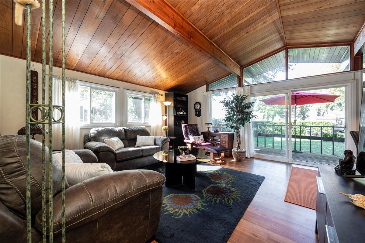 • Cozy interior with vaulted wood ceilings for added charm.