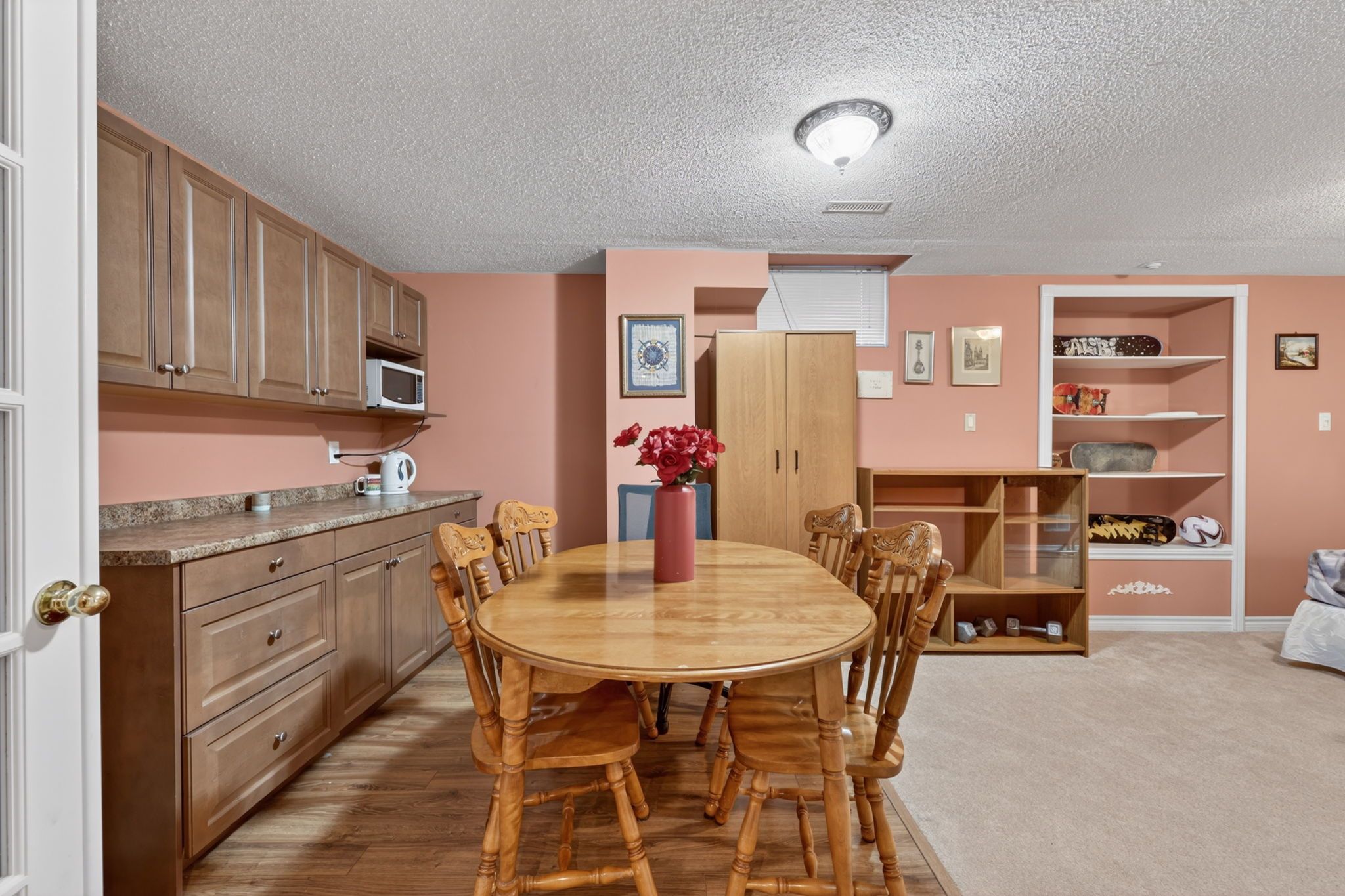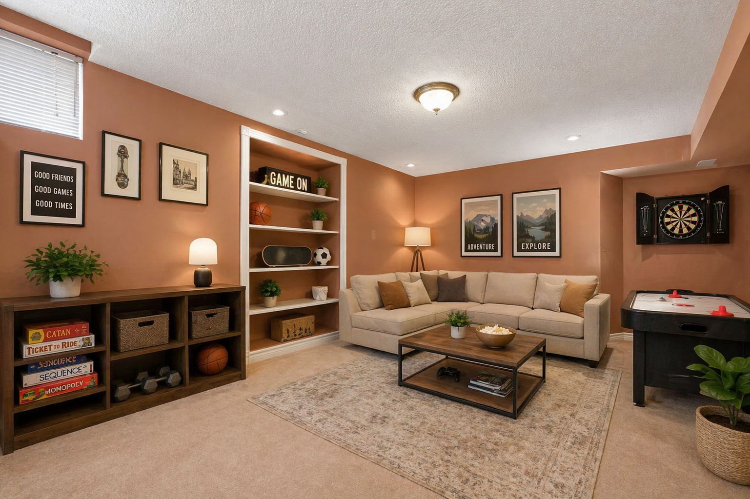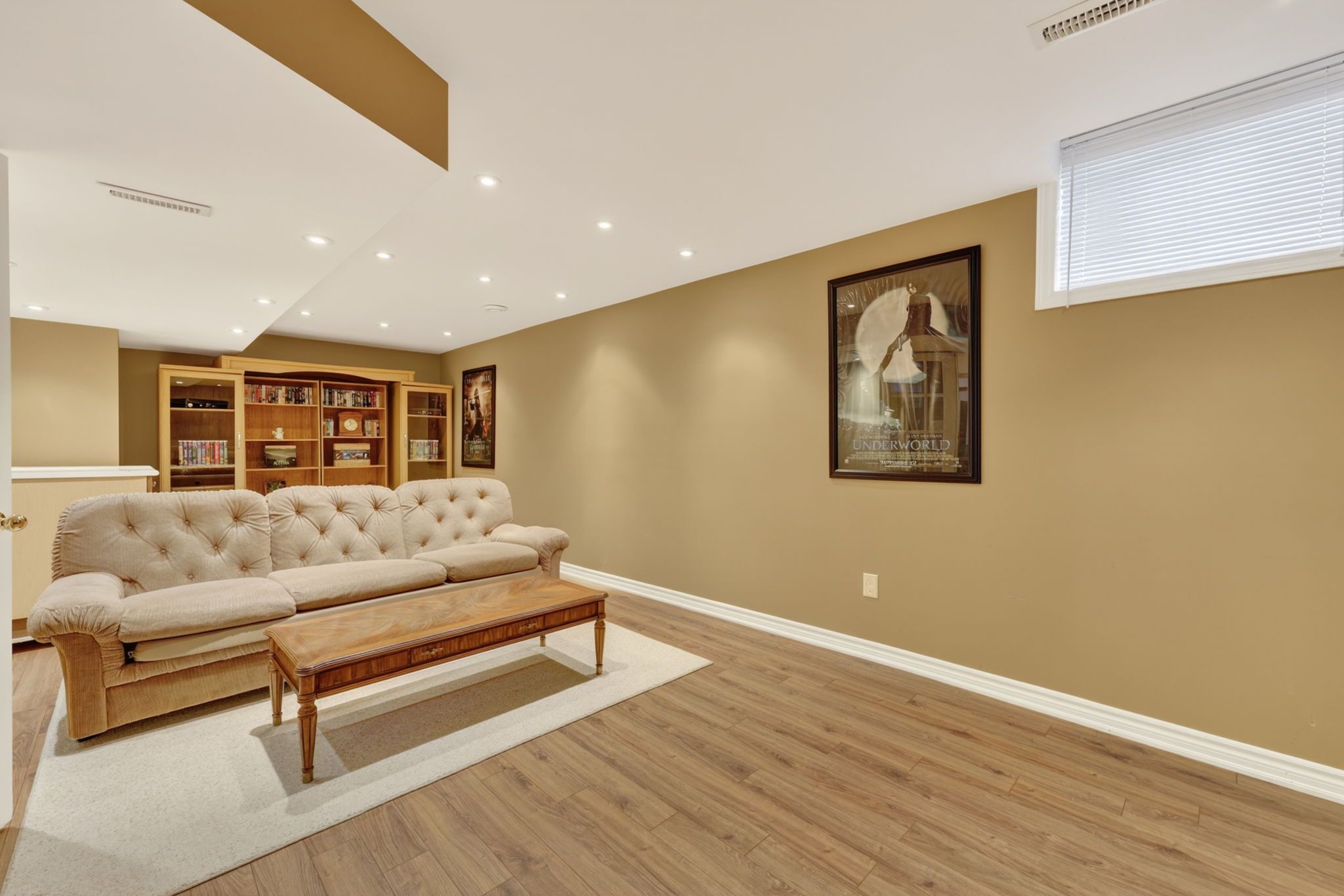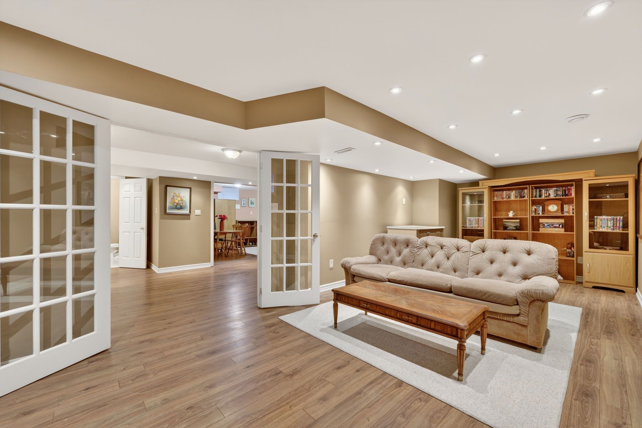 • Fully finished basement with family room, recreation space, and wet bar.