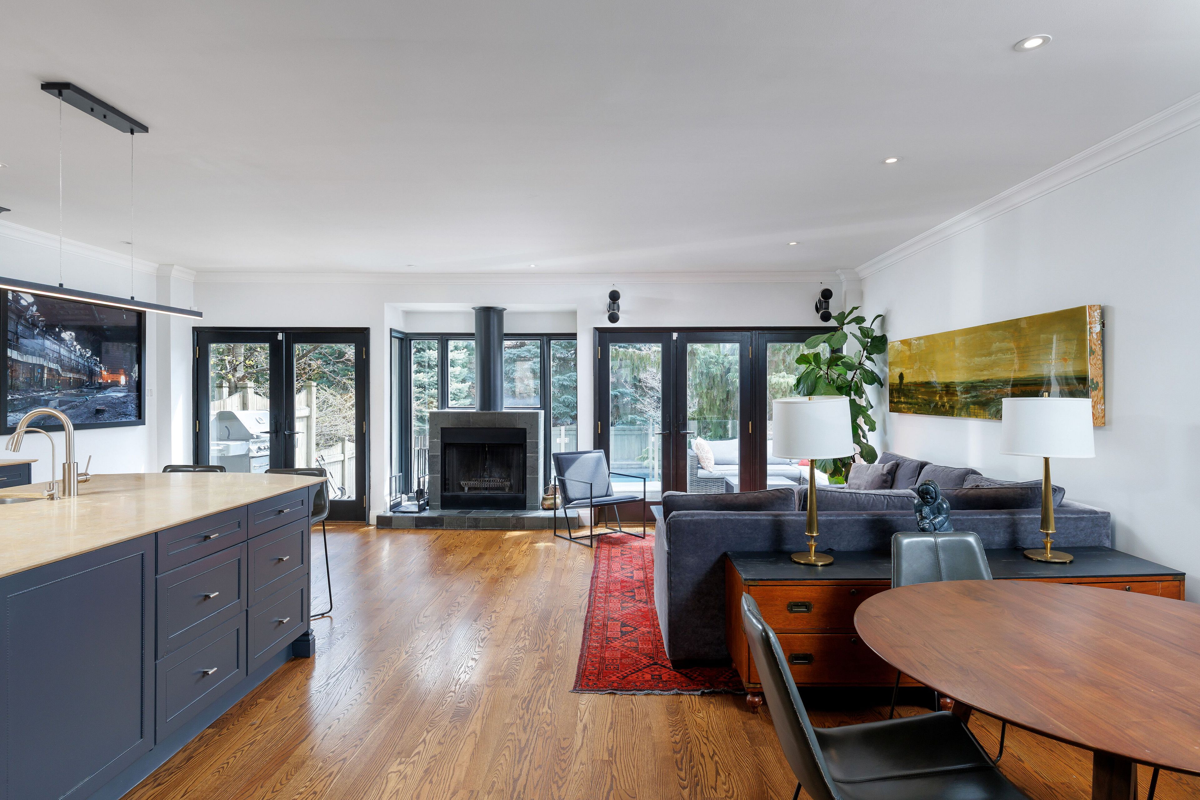 • Warm kitchen and family room with fireplace, perfect for gatherings and relaxation.