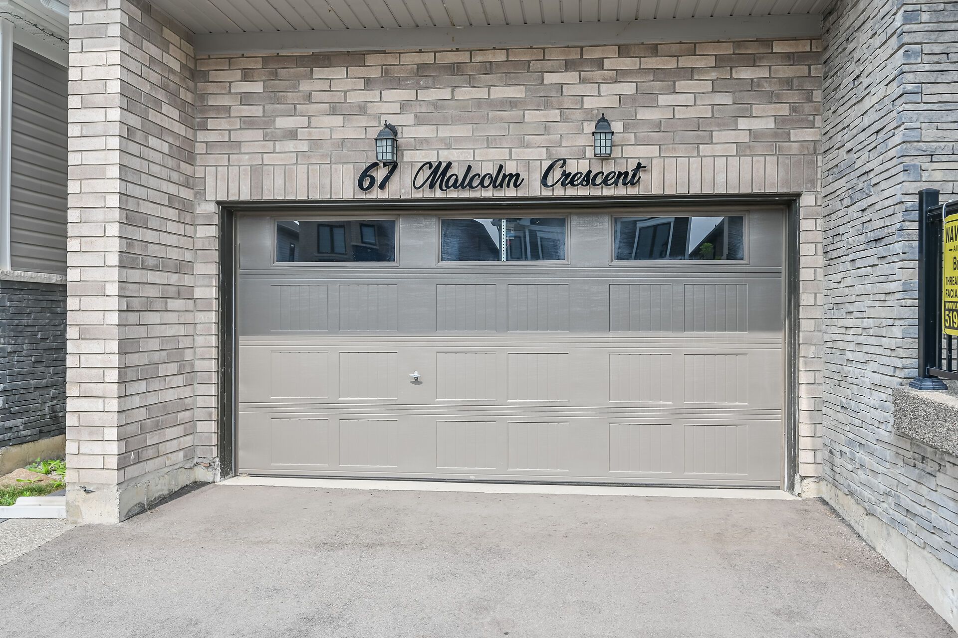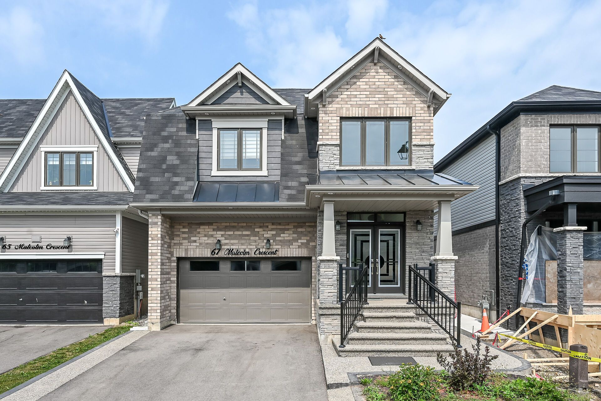 Welcome to 67 malcolm crescent. This tastefully decorated home offers 2,307 sq ft of thoughtfully designed living space and features spacious, open-concept living ideal for families of all sizes. The main floor features pot lights throughout, creating a warm and inviting atmosphere for everyday living and entertaining. The large kitchen is equipped with upgraded cabinetry, granite countertops, a center island, and a breakfast area. A separate dining room and bright great room complete the main floor. Upstairs, youll find four generous bedrooms, including a primary suite with double walk-in closets and a private ensuite featuring a natural wood vanity top. The second level also includes a 4-piece bathroom which is also finished with a natural wood counter and convenient laundry facilities. The unfinished basement provides potential for future living space or storage. Step outside to a beautifully landscaped backyard with a concrete patio. Additional exterior pot lights have been added around the home for a polished look. Located steps from parks, walking trails, the grand river, and a brand new school currently under construction. This is the perfect opportunity to join a growing, family-friendly neighbourhood!