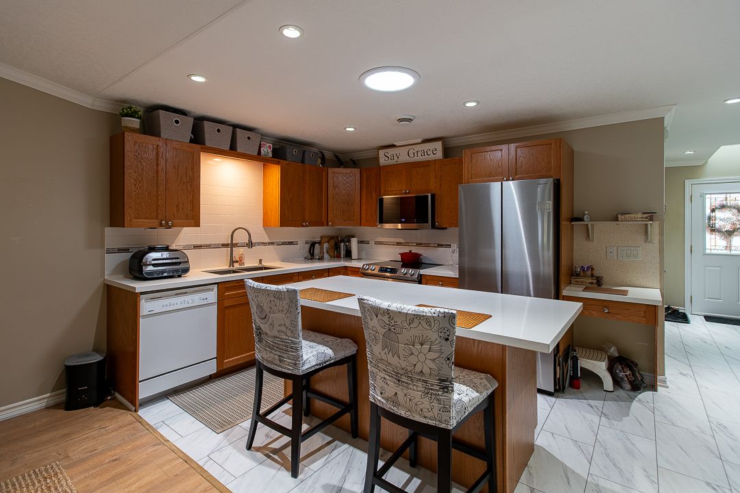Wasaga meadows is one of the most loved adult-lifestyle communities in wasaga beach. This quiet and friendly neighbourhood is known for its well-kept homes, peaceful setting, and great location. Shops, restaurants, and the beach are all just a short walk away. If you are ready to downsize-or "right-size"-this bright and comfortable 2-bedroom, 2-bathroom home is an ideal choice. With 1,200 square feet all on one level, it offers easy living with no stairs to worry about. From the moment you step inside, you'll notice the care and pride of ownership. Many updates have been completed over the past two years, making this home truly move-in ready. A skylight welcomes you with natural light, while the vaulted ceiling creates a spacious and open feel in the living, dining, and kitchen areas. The newer kitchen is both stylish and practical, featuring granite countertops, updated appliances, a backsplash, and a solar tube that brings in even more daylight. Major improvements such as the roof, furnace, flooring, storm door, front awning, motorized shades, and more offer peace of mind for years to come. An attached garage with inside entry adds extra comfort and convenience, especially during winter months. Life at wasaga meadows is about more than just the home-it's about the lifestyle. Residents enjoy friendly neighbours, a strong sense of community, and a calm, relaxed environment. Whether you enjoy quiet days or staying active, this community offers the perfect balance. You're also close to stonebridge town centre, the beach, and nearby recreational facilities including the arena and library. Homeowners have access to a clubhouse with indoor and outdoor pools, available for a small annual fee. Monthly fees for new owners:land lease (rent): $800. Structure tax: $132. 07; lot tax: $50. 99; this is comfortable, carefree living in one of wasaga beach's most desirable adult communities.