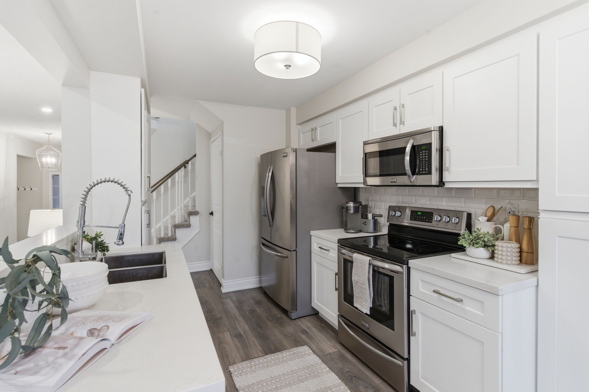 • Updated kitchen with quartz countertops and stainless steel appliances.