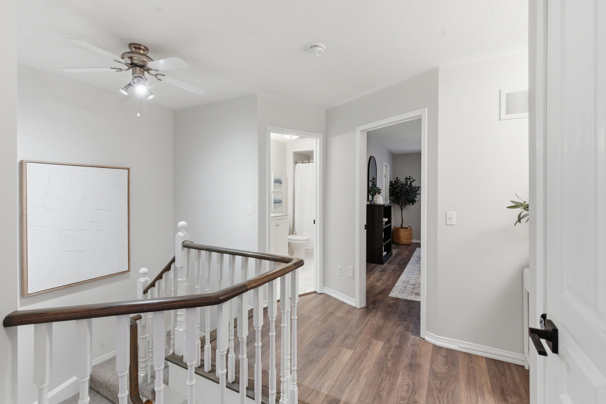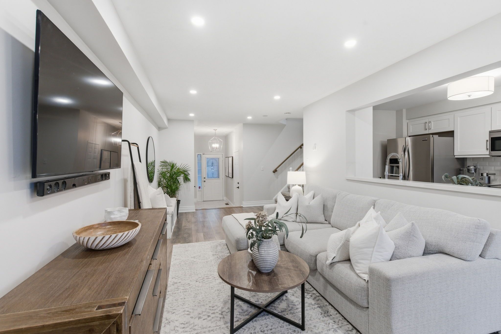 Welcome to 67 merchants ave, freehold living with no maintenance fees! Perfectly situated on a quiet, family-friendly street in one of whitby's most sought-after neighbourhoods. This beautifully maintained 3 bedroom home offers the ideal balance of comfort, style, and convenience. Perfect for first-time buyers or those looking to downsize without sacrificing space. Step inside to a warm and inviting open concept layout designed for both everyday living and easy entertaining. The updated kitchen is a true highlight, featuring quartz countertops, backsplash, ample built-in cabinets and stainless steel appliances that bring a modern touch to the heart of the home. Spacious dining area with a walk-out to your own private backyard retreat perfect for morning coffee or unwinding at the end of the day. Upstairs, you'll find the primary bedroom offers a 5 piece semi-ensuite and a walk-in closet, creating a comfortable and functional retreat. Two additional generous sized bedrooms and a bonus den area perfect for a home office or reading nook! Downstairs you'll find your blank canvas perfect for a media room, playroom, home gym, or whatever suits your lifestyle. Move-in ready and thoughtfully updated, this home is the perfect opportunity to enjoy everything whitby has to offer. Located just steps from parks, schools, shopping, and dining, with quick access to highways 401, 412, and 407, plus the nearby go station making commuting effortless. Shingles, a/c, fence and deck (2019).
