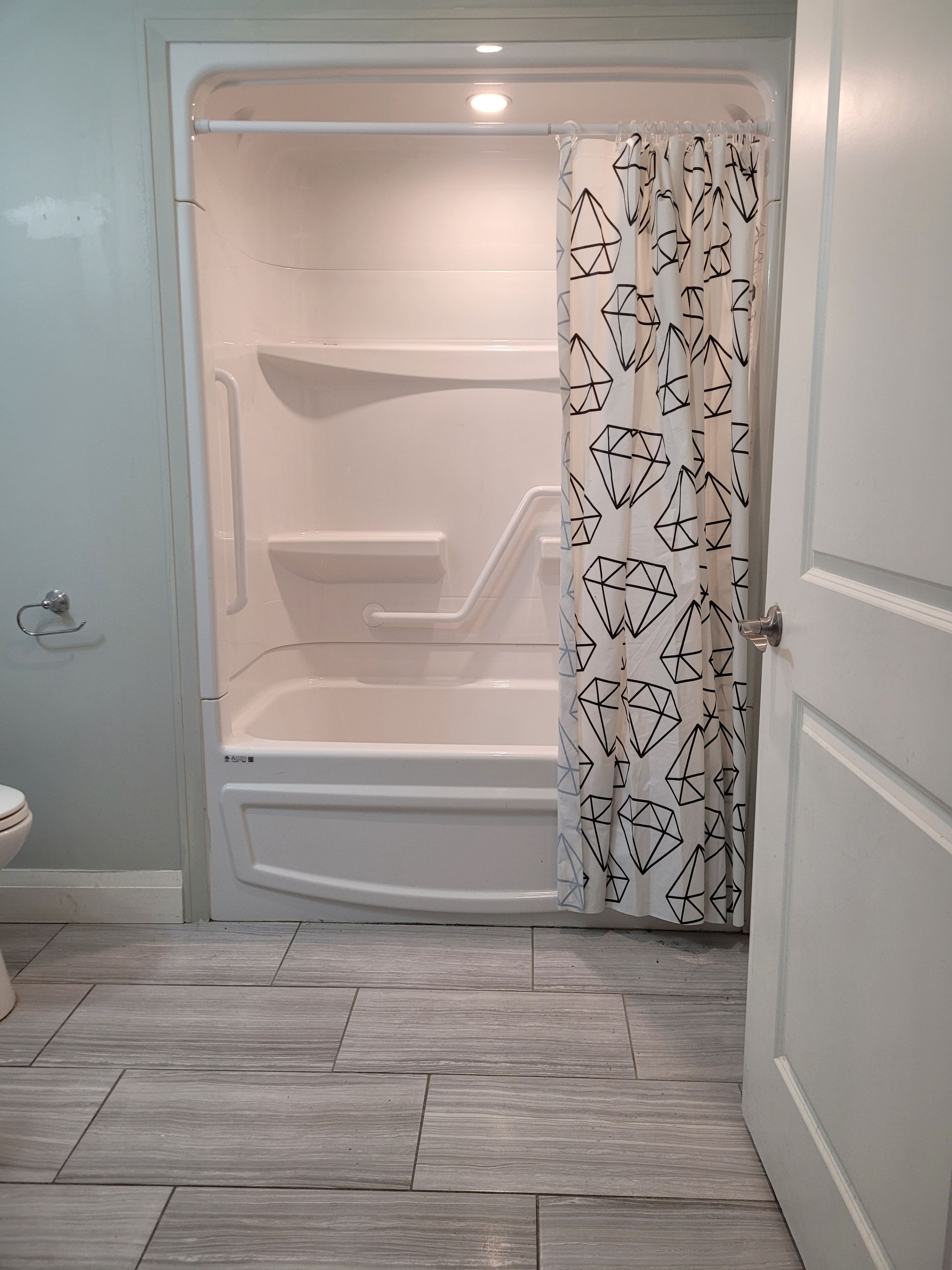 • Spacious three-bedroom condo-style suite with a modern and bright living area.