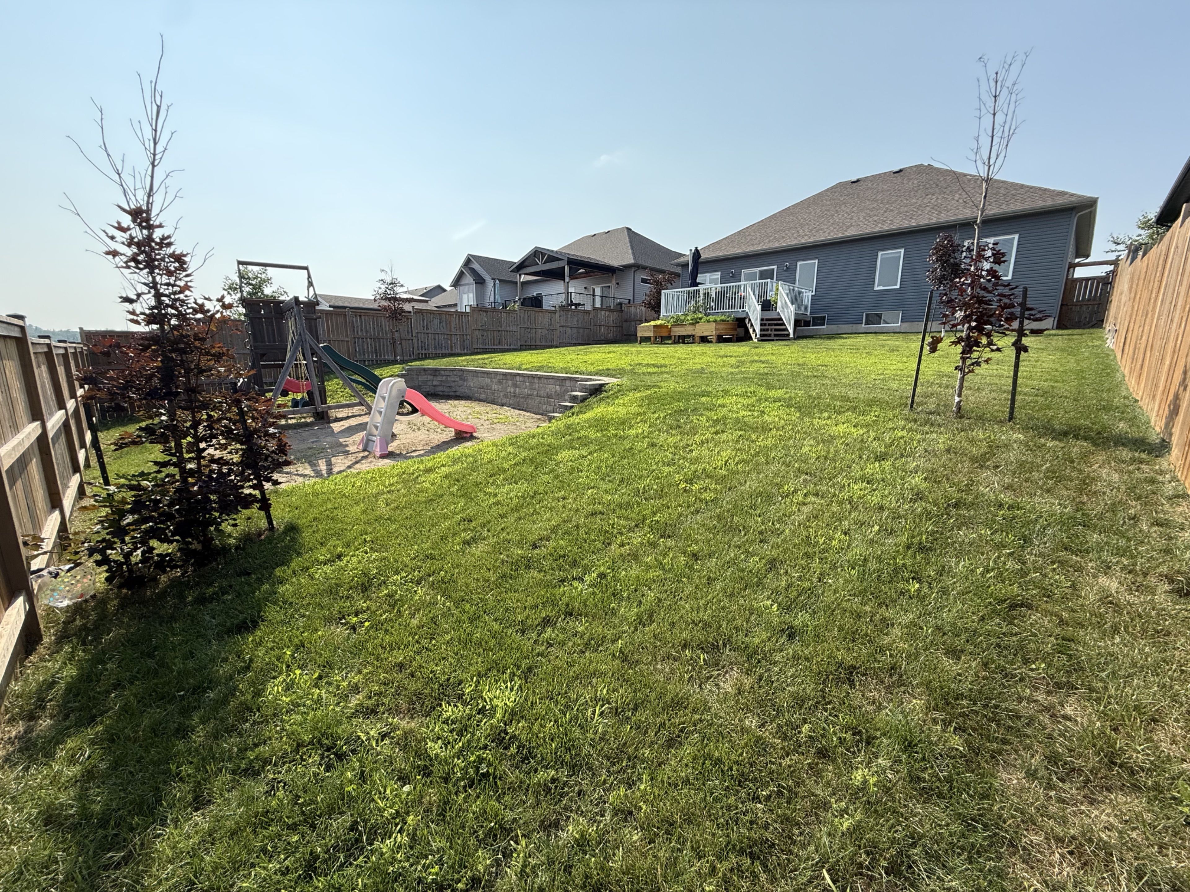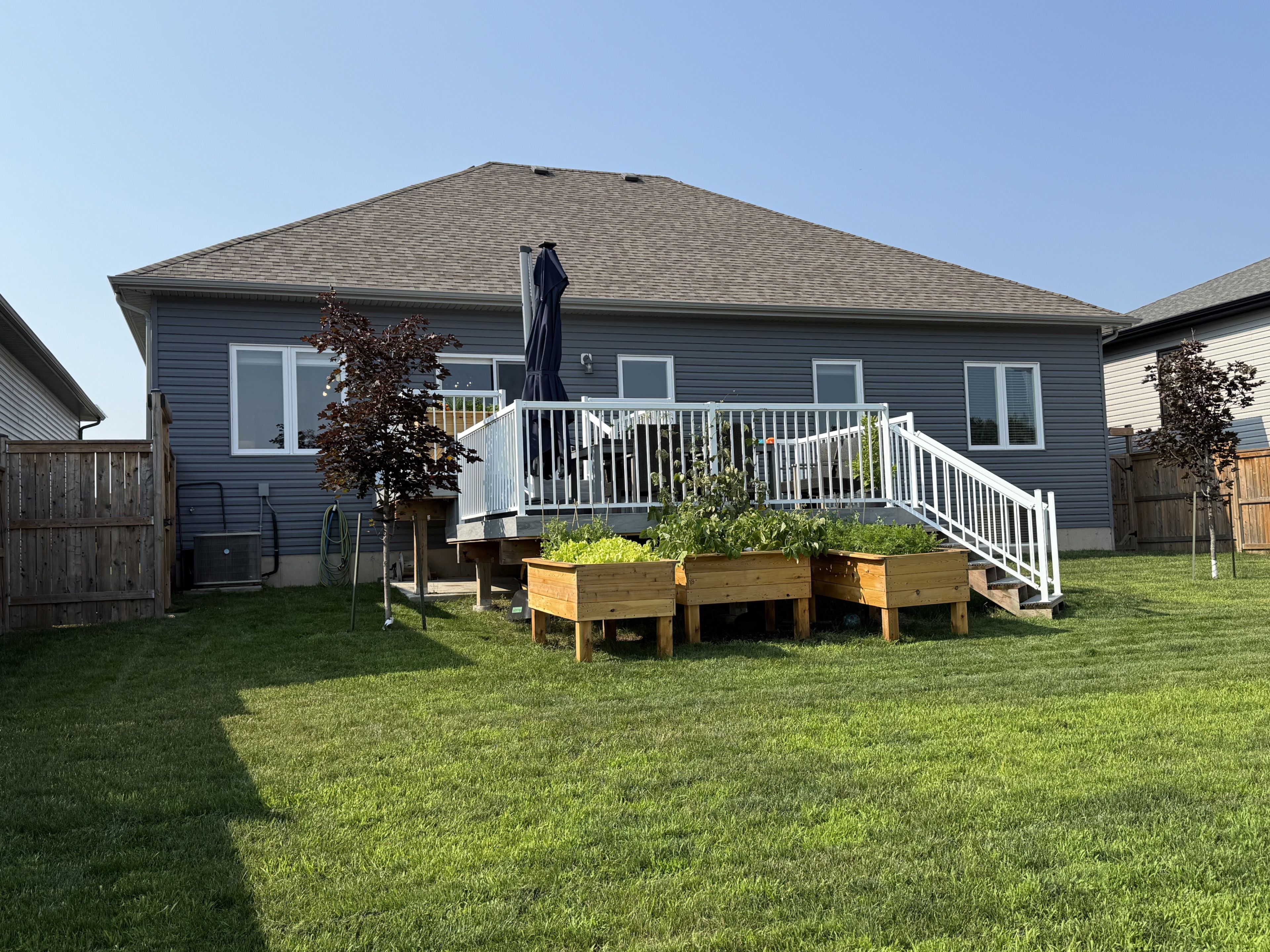 • Large fully fenced backyard with a two-tier composite deck for gatherings.