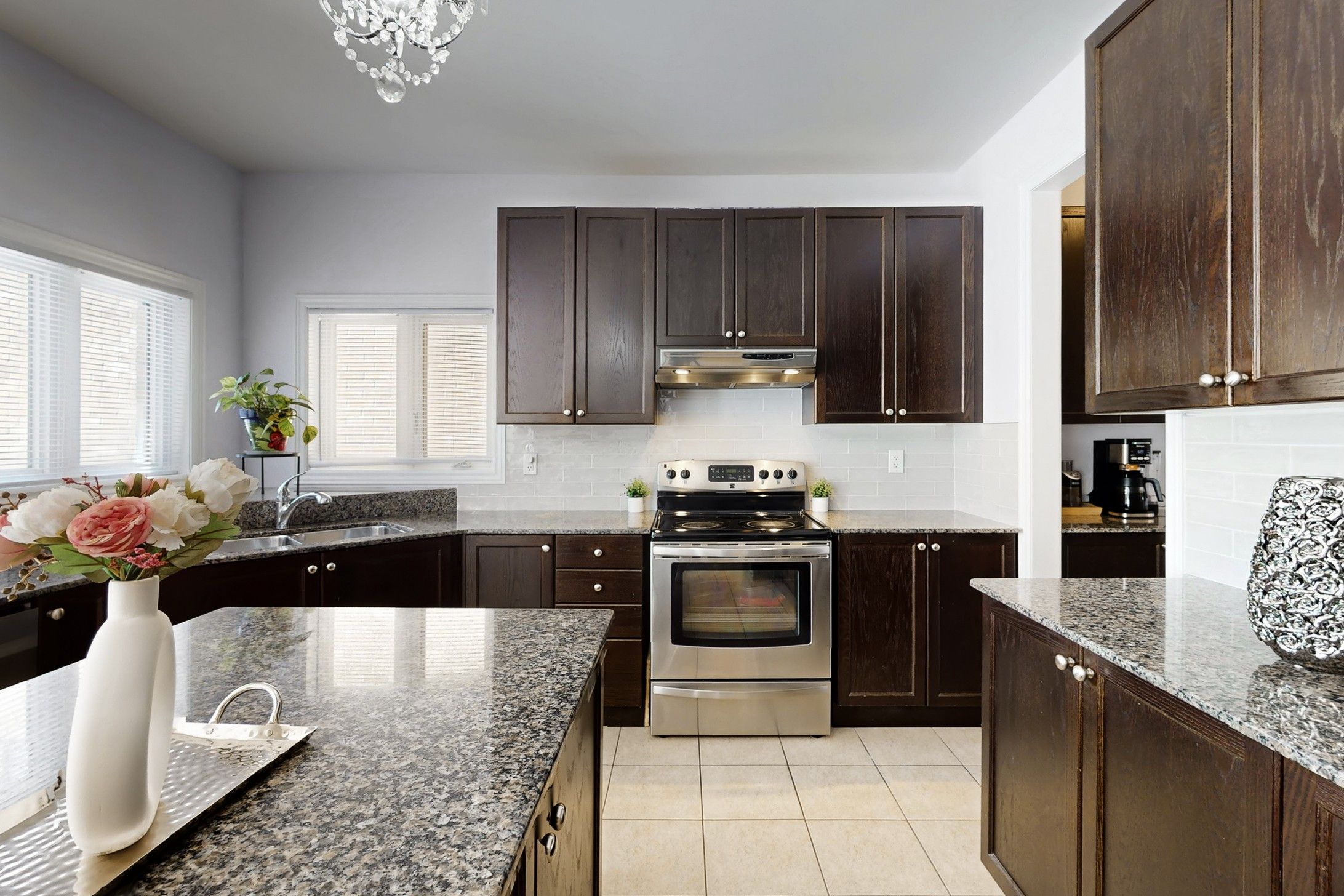 • Upgraded kitchen with quartz countertops and stainless steel appliances.