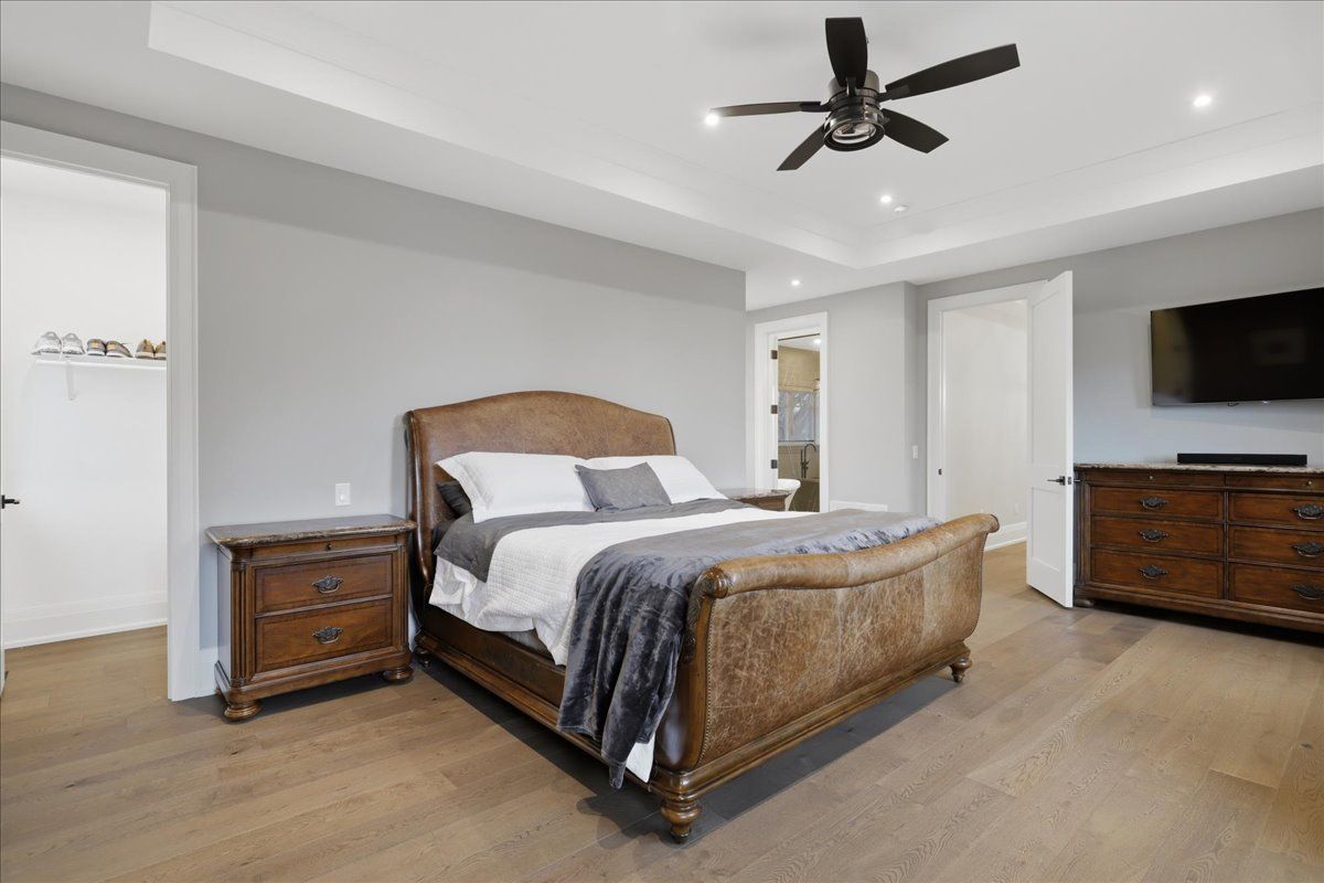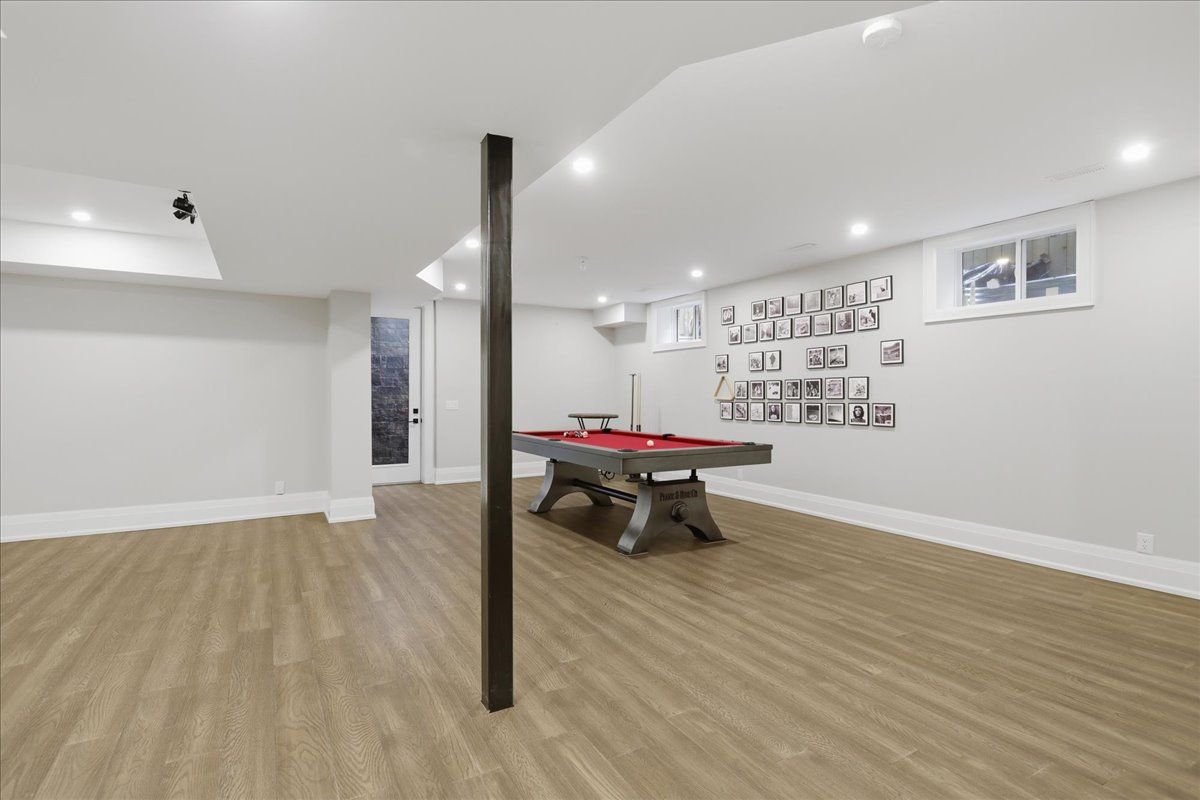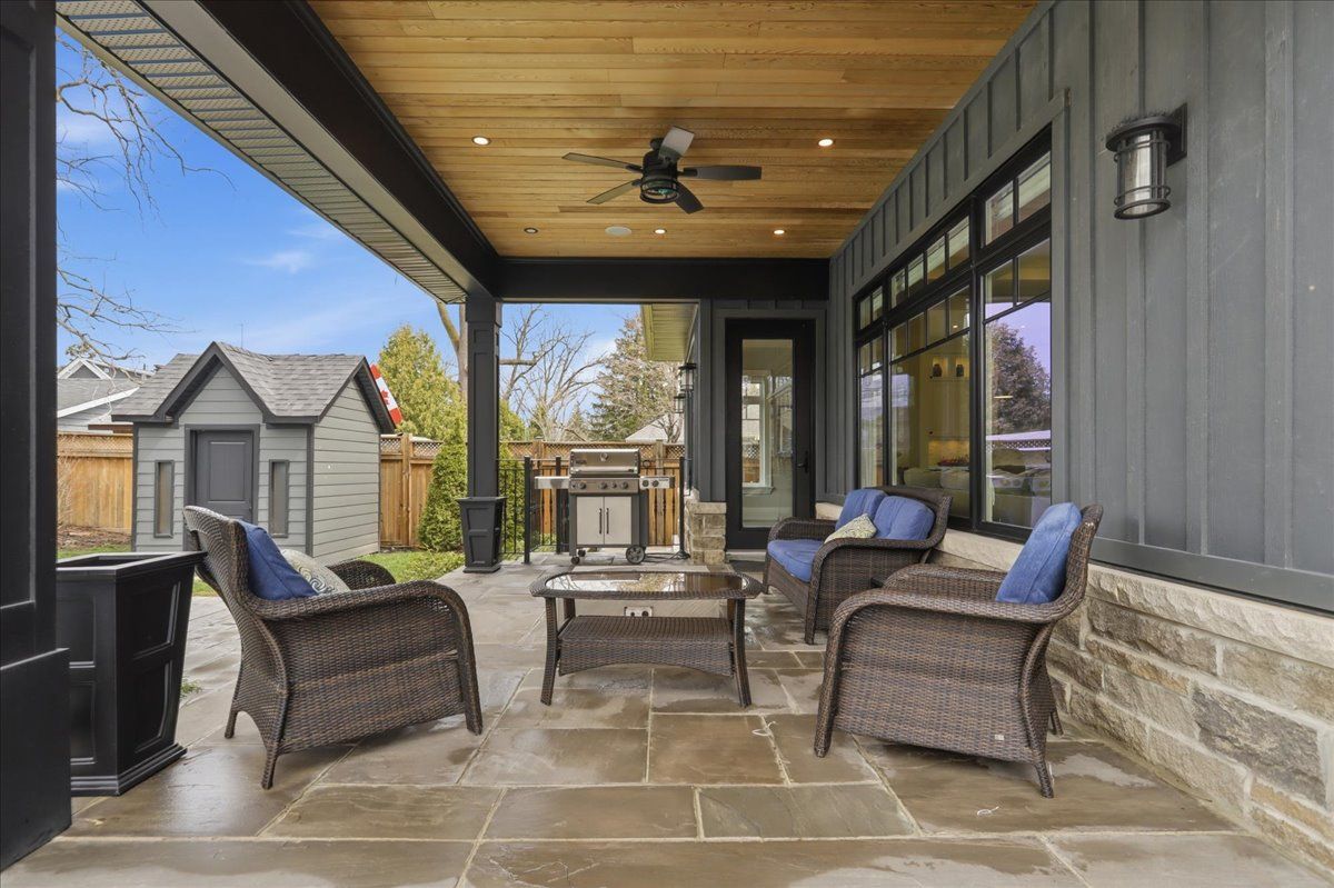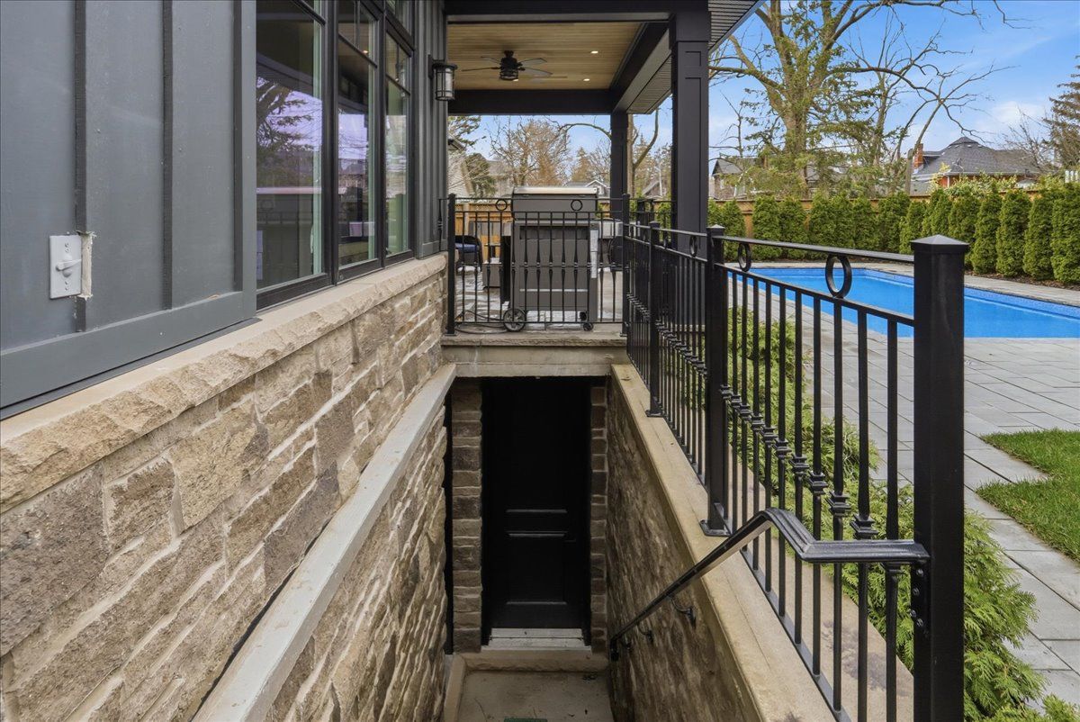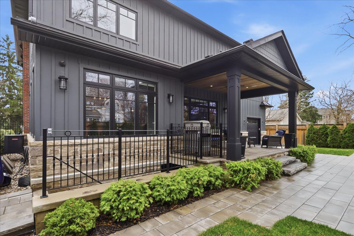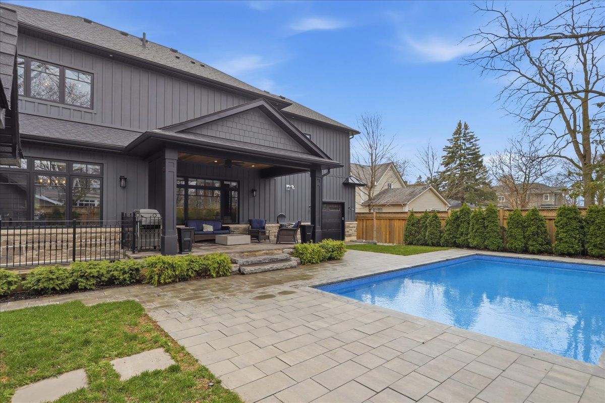Welcome to one of old milton's finest custom homes, totalling over 5000 sq ft, built in 2019 and impeccably maintained, just steps to town hall, the fairgrounds, and downtown. The exterior showcases historic reclaimed brick (replica), a durable metal roof with snow stops, a 22x42 cobblestone driveway for 4 cars, and maintenance-free hardie board & batten siding. The fully landscaped backyard features a 16x32 saltwater pool with aqualink automation (phone controlled), in-ground sprinkler system, 185 sq ft covered porch with fieldstone tile, and aseparate basement entrance ideal for multi-generational living. The double car garage is exceptionally equipped with epoxy floors, oversized 9x8 doors, a raredrive-through third door to the backyard, side-mount openers, and custom cabinetry with led lighting, stainless counters, and a built-in beverage fridge. Inside, the main floor offers10ft ceilings, multiple coffered ceilings, and a bright open-concept layout. The chef's kitchen includes high-end appliances, induction cooktop, wall oven, and a butler's pantry. The living room features a fireplace with custom built-ins, while the staircase is highlighted byhand-carved posts. A heated mudroom floor and new cabinetry add everyday comfort. Upstairs offers 9ft ceilings, 4 bedrooms, 3 bathrooms, a laundry room, and 2 linen closets. The primary suite is large and bright with 2 walk-in closets, a carpenter gothic-style window, and a 5-piece ensuite with curbless shower, soaker tub, and heated floors. The basement features-9ft ceilings, in-floor radiant heat, gym space with rubber flooring, a wet bar with custom cabinetry (sink, mini fridge, dishwasher), and 2 large cold cellars. Elevator-ready framing,solid poplar trim (no mdf), 9" baseboards, 4. 5" casings, 8ft solid doors with 4 ball-bearinghinges, 100+ led pot lights, and full interior/exterior security system complete this exceptional home.