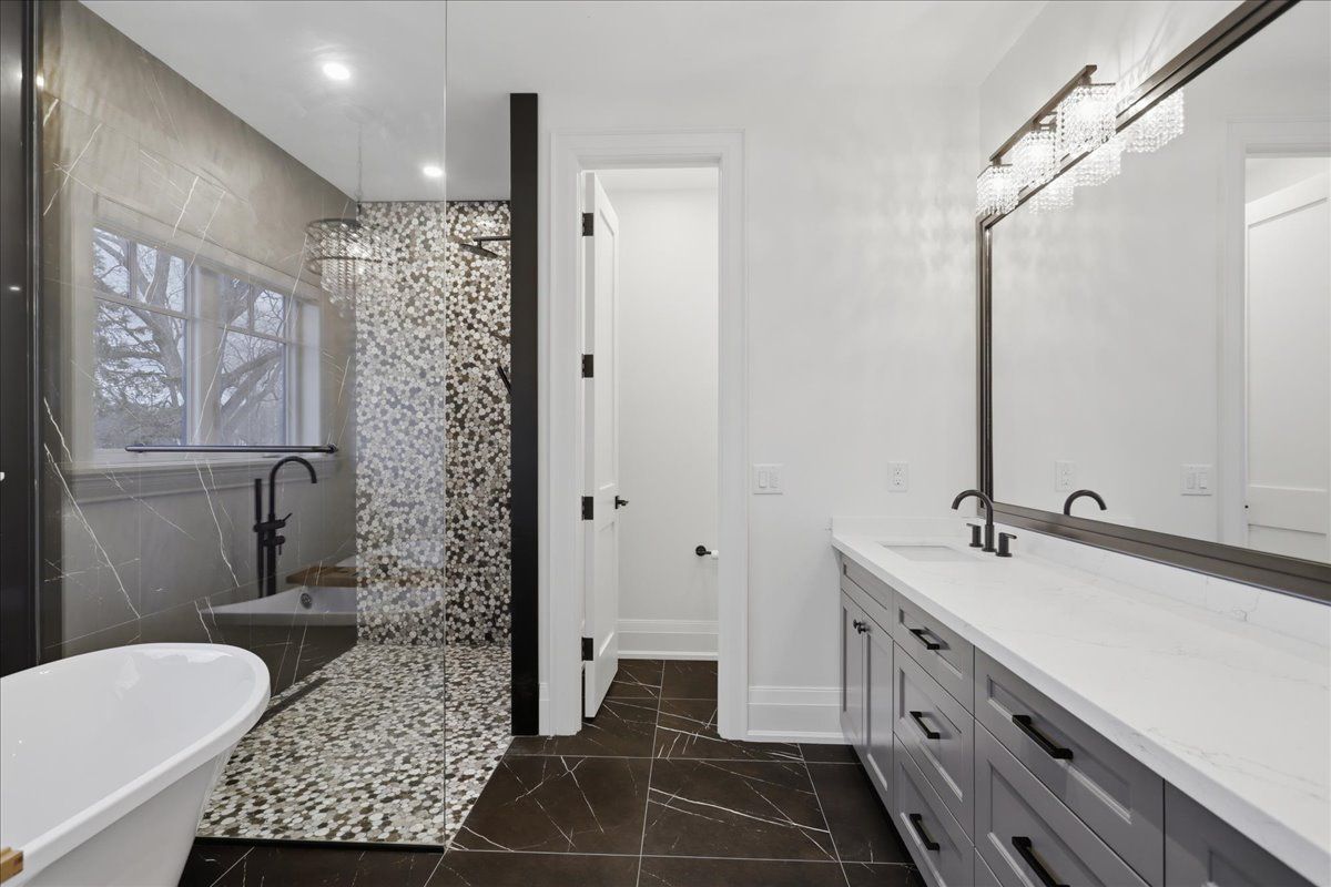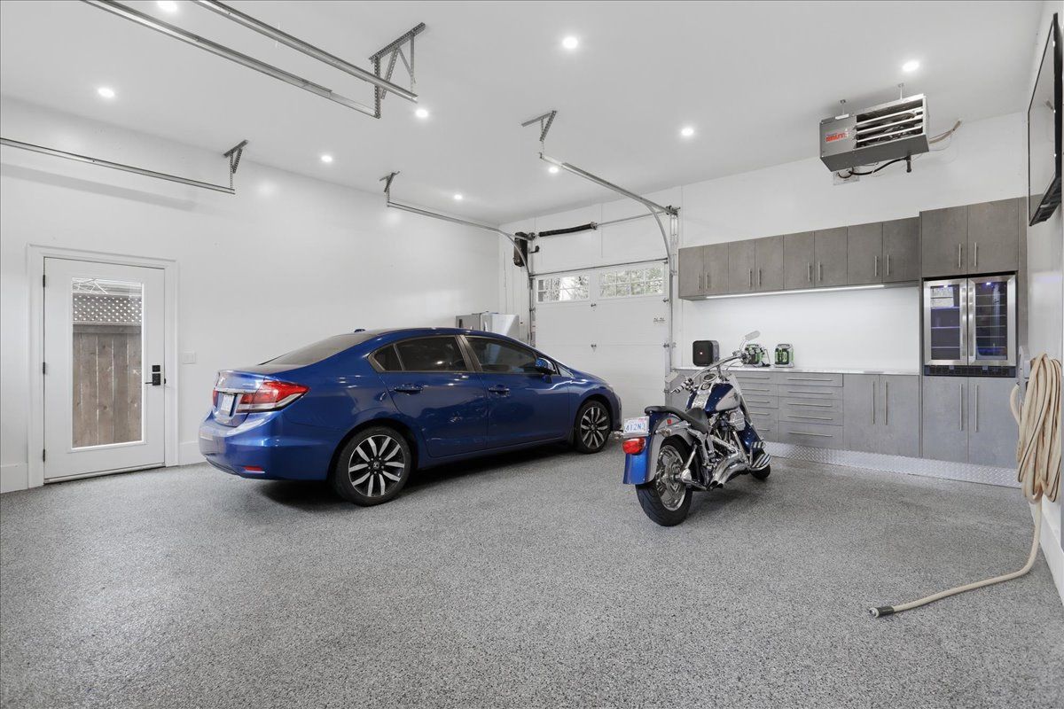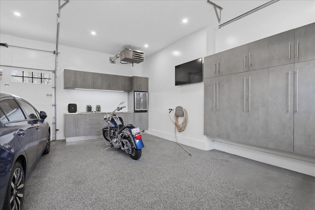 • Double car garage with epoxy floors and drive-through third door.
