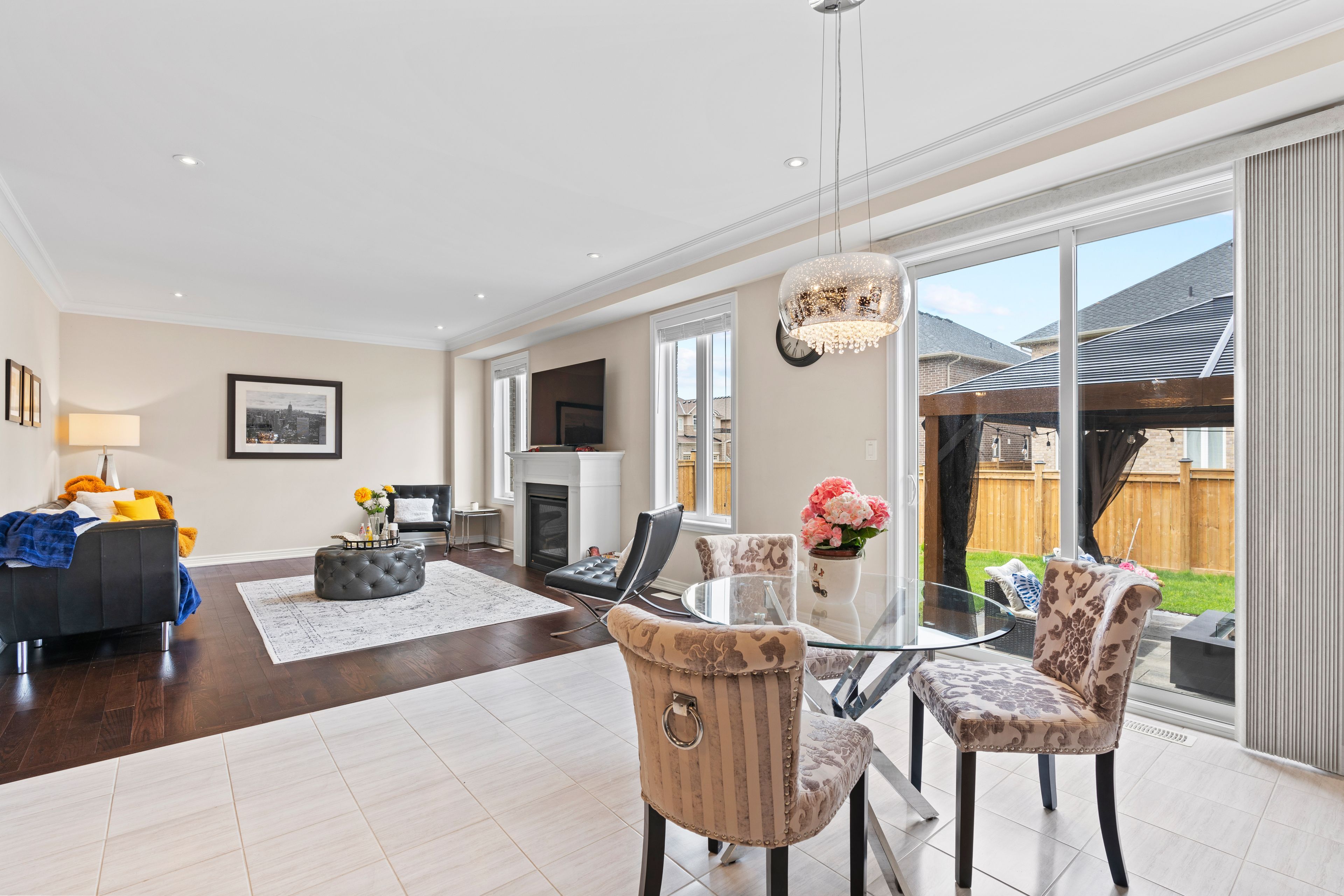 Highly desirable area in ancaster--tiffany hills of meadowlands! Amazing neighborhood area! Almost 2400 of living space. Features a spacious separate formal dining & living areas with functional layout! Freshly painted! Main level with hardwood flooring, crown mouldings, gas fireplace & lots of natural lights. Spacious kitchen with granite counter island, backsplash, built-in appliances and loaded with pantry storage space, modern lighting fixtures & pot lights. Breakfast area with walk-out to gazebo & fenced backyard. Upstairs features 4 good size bedrooms. Master bedroom has large walk-in closet, ensuite bathroom with a separate enclosed standing shower & larger tub. Full unfinished basement with cold room.